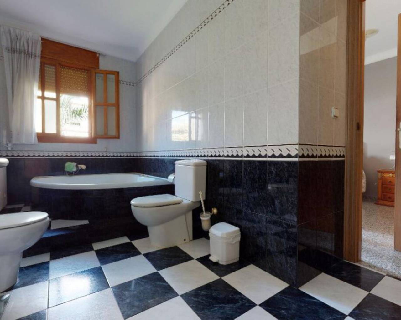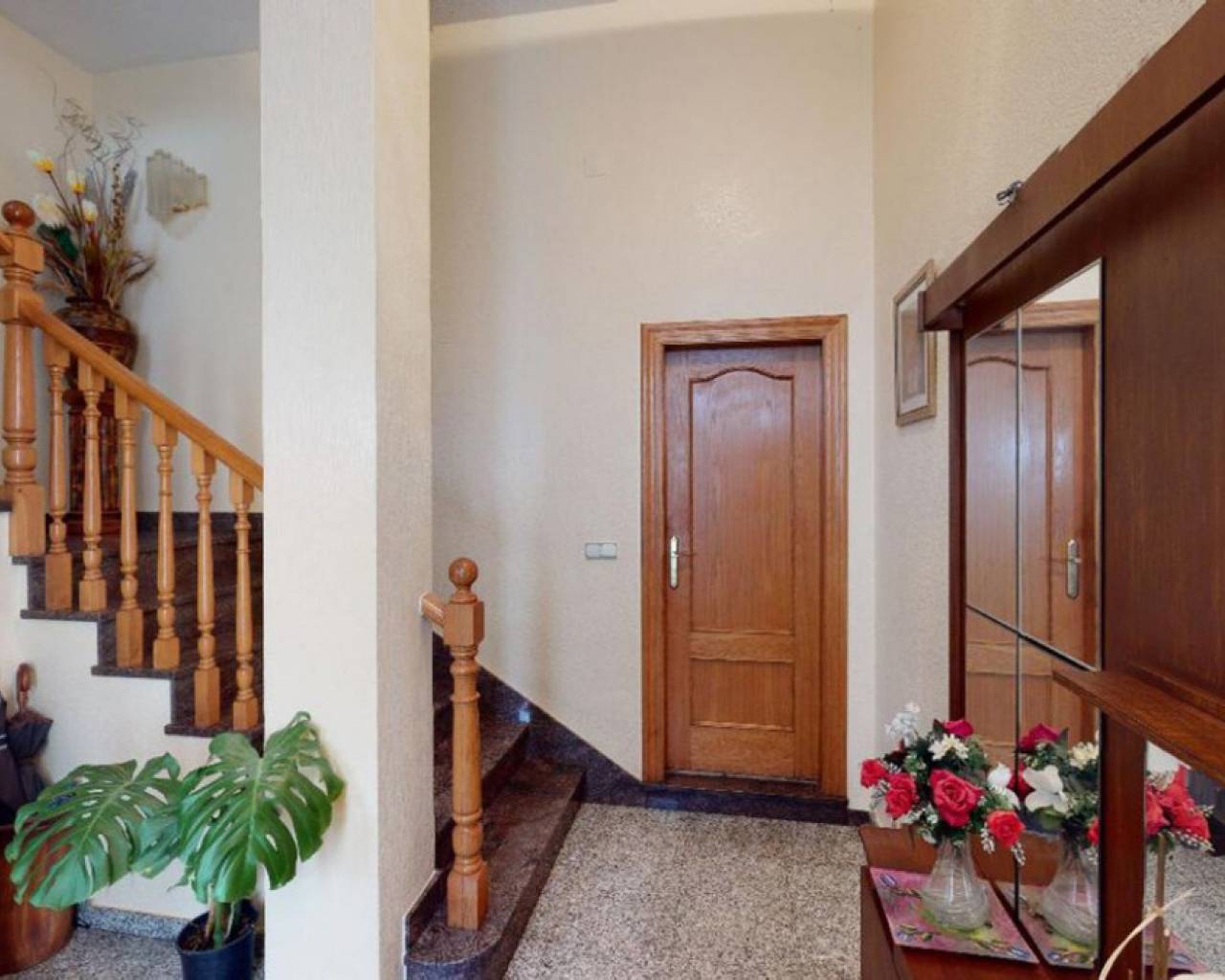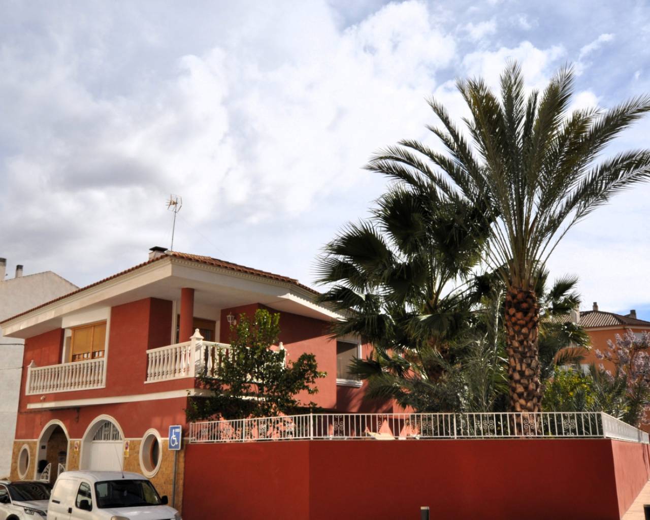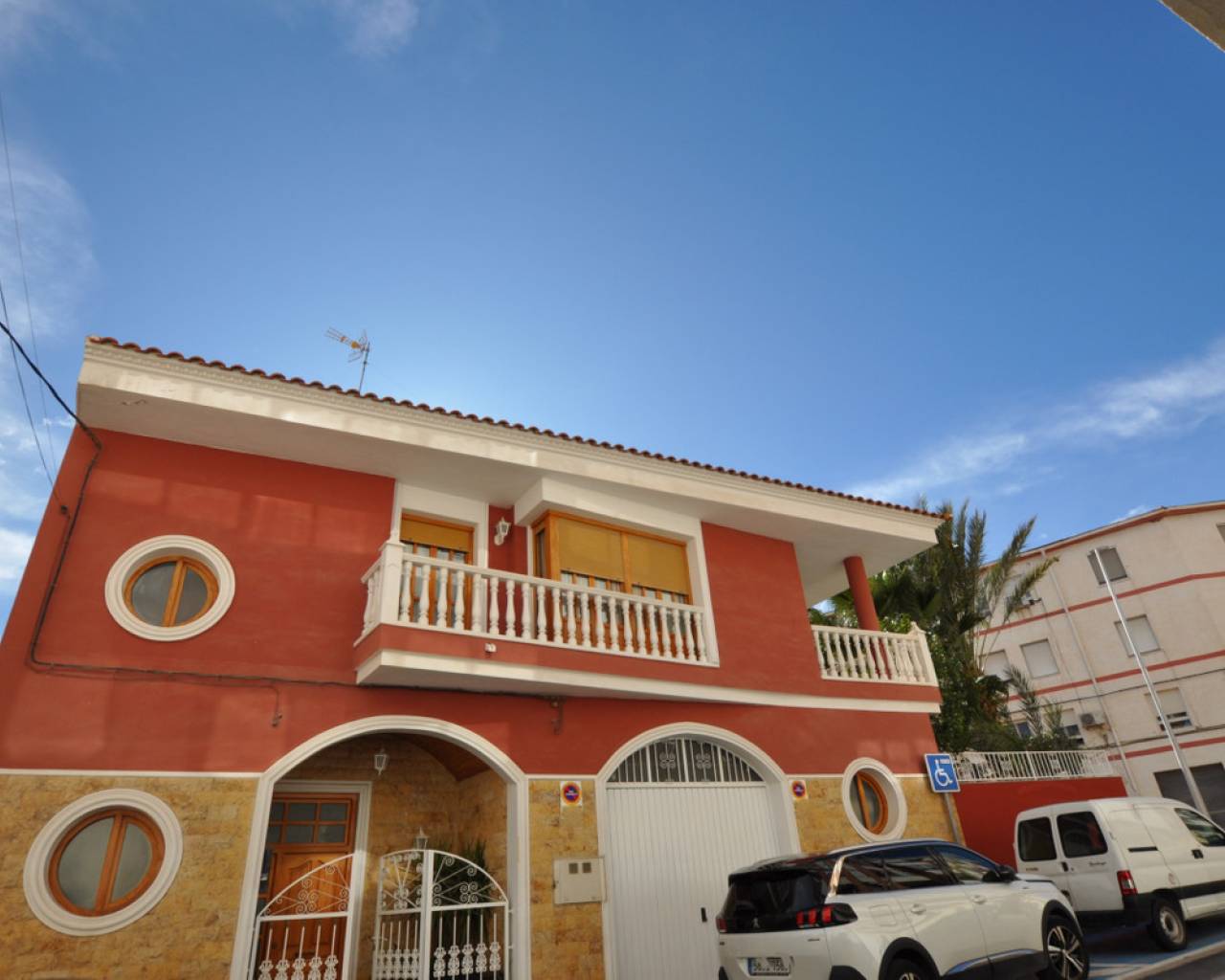 Enclavada en el corazón de un bullicioso escenario urbano, esta amplia casa adosada se erige como un faro de refinada elegancia y serena belleza. Apartada de las bulliciosas calles, una imponente puerta de hierro forjado le da la bienvenida a un mundo de tranquilidad, donde el ajetreo de la ciudad se desvanece en el fondo, sustituido por el suave susurro de las palmeras. La casa, una joya arquitectónica, se alza majestuosa, con una fachada adornada con intrincados trabajos en piedra y elegantes ventanas redondas que dejan entrever la grandeza de su interior. Al cruzar la ornamentada puerta, se sentirá envuelto en una sensación de sofisticación atemporal y lujo discreto. El vestíbulo cuenta con suelos pulidos y una elegante escalera que asciende a la planta superior. A la derecha, una puerta conduce al espacioso garaje; justo delante, el salón atrae con sus techos de vigas, su cómodo mobiliario y su chimenea ornamentada, creando un espacio acogedor para reuniones íntimas o veladas. Una cocina abierta con una barra de desayuno en un extremo y una barra de piedra en la parte del comedor completan la acogedora pero grandiosa zona. Subiendo la escalera a los niveles superiores, se descubre un remanso de confort y tranquilidad. En la planta superior, le esperan el dormitorio principal con baño en suite tipo spa, tres dormitorios adicionales y un cuarto de baño con bañera. La cocina es un paraíso culinario, equipada con modernos electrodomésticos y una amplia encimera para preparar deliciosas comidas. Una puerta conduce a un pequeño patio, con acceso al lavadero y una escalera que asciende a la gran terraza de la azotea. Todos los espacios están inundados de luz natural, lo que aumenta la luminosidad general de la casa. La calefacción central está instalada para mayor comodidad, al igual que una gran unidad de aire acondicionado. En el exterior, el jardín maduro es un paraíso verde, donde altas palmeras se mecen suavemente con la brisa y flores exóticas perfuman el aire. Una gran terraza le invita a sentarse y relajarse en este oasis increíble.