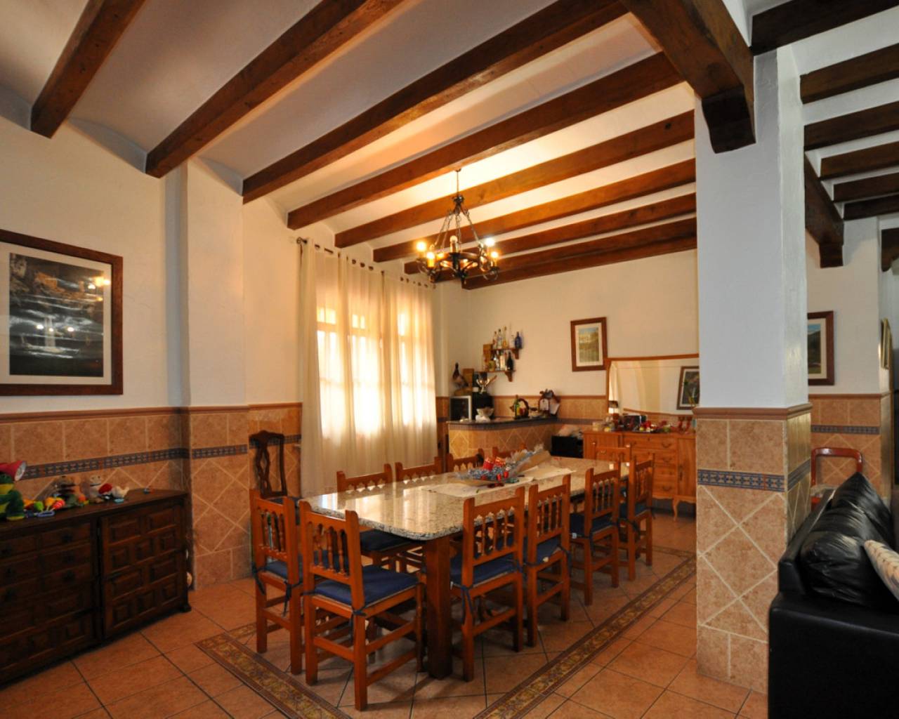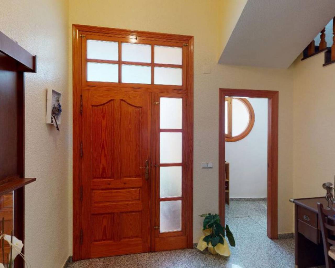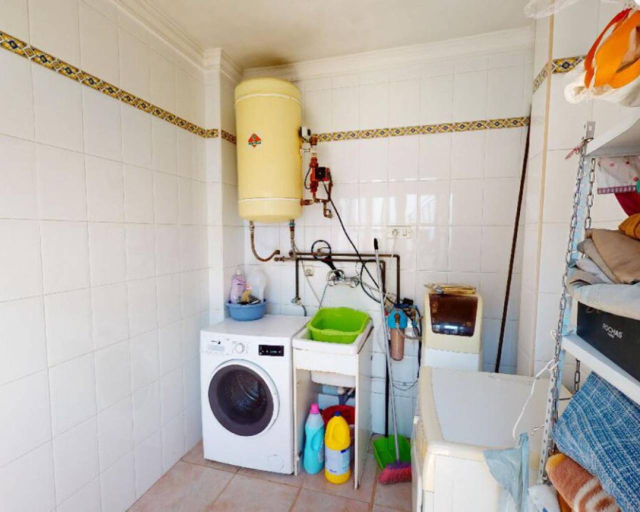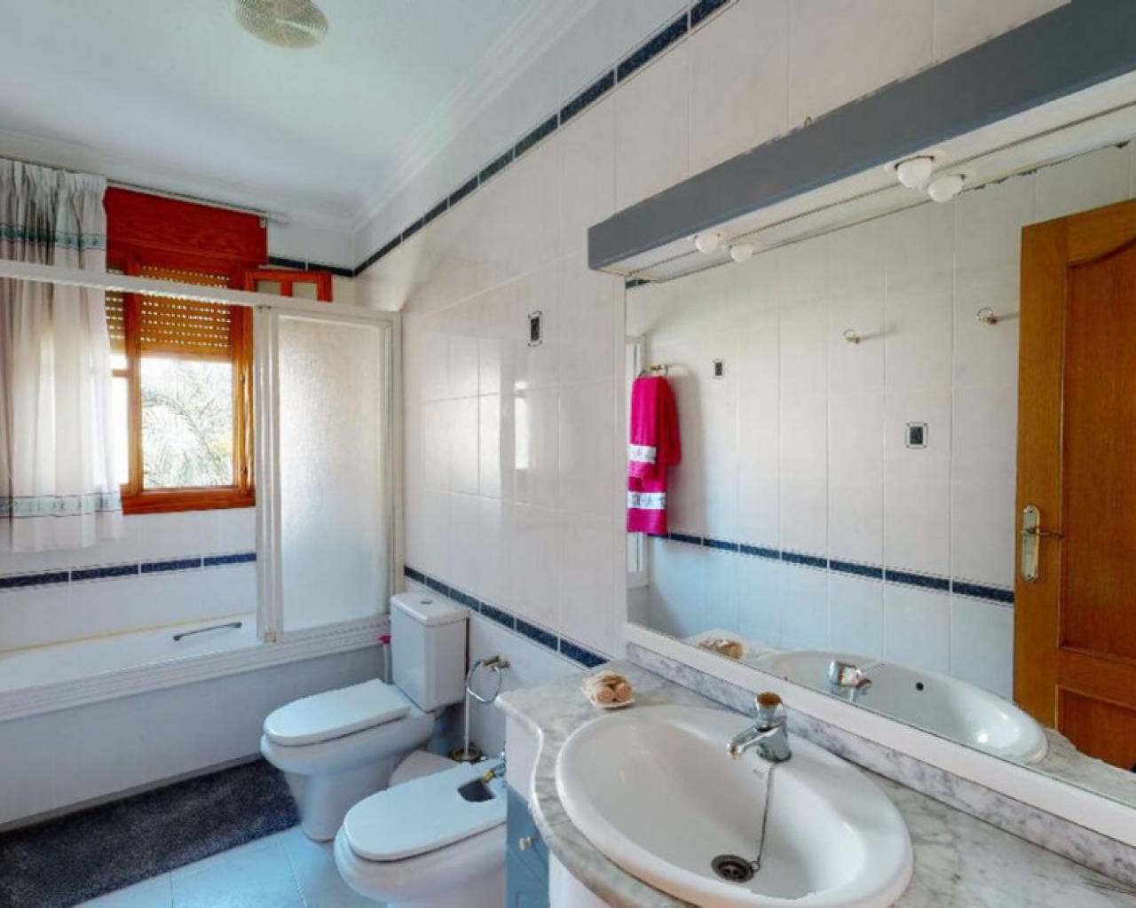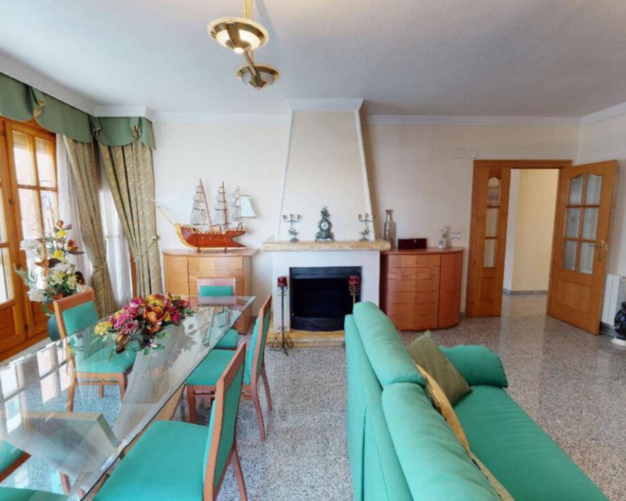 Enclavada en el corazón de un bullicioso escenario urbano, esta amplia casa adosada se erige como un faro de refinada elegancia y serena belleza. Apartada de las bulliciosas calles, una imponente puerta de hierro forjado le da la bienvenida a un mundo de tranquilidad, donde el ajetreo de la ciudad se desvanece en el fondo, sustituido por el suave susurro de las palmeras. La casa, una joya arquitectónica, se alza majestuosa, con una fachada adornada con intrincados trabajos en piedra y elegantes ventanas redondas que dejan entrever la grandeza de su interior. Al cruzar la ornamentada puerta, se sentirá envuelto en una sensación de sofisticación atemporal y lujo discreto. El vestíbulo cuenta con suelos pulidos y una elegante escalera que asciende a la planta superior. A la derecha, una puerta conduce al espacioso garaje; justo delante, el salón atrae con sus techos de vigas, su cómodo mobiliario y su chimenea ornamentada, creando un espacio acogedor para reuniones íntimas o veladas. Una cocina abierta con una barra de desayuno en un extremo y una barra de piedra en la parte del comedor completan la acogedora pero grandiosa zona. Subiendo la escalera a los niveles superiores, se descubre un remanso de confort y tranquilidad. En la planta superior, le esperan el dormitorio principal con baño en suite tipo spa, tres dormitorios adicionales y un cuarto de baño con bañera. La cocina es un paraíso culinario, equipada con modernos electrodomésticos y una amplia encimera para preparar deliciosas comidas. Una puerta conduce a un pequeño patio, con acceso al lavadero y una escalera que asciende a la gran terraza de la azotea. Todos los espacios están inundados de luz natural, lo que aumenta la luminosidad general de la casa. La calefacción central está instalada para mayor comodidad, al igual que una gran unidad de aire acondicionado. En el exterior, el jardín maduro es un paraíso verde, donde altas palmeras se mecen suavemente con la brisa y flores exóticas perfuman el aire. Una gran terraza le invita a sentarse y relajarse en este oasis increíble.