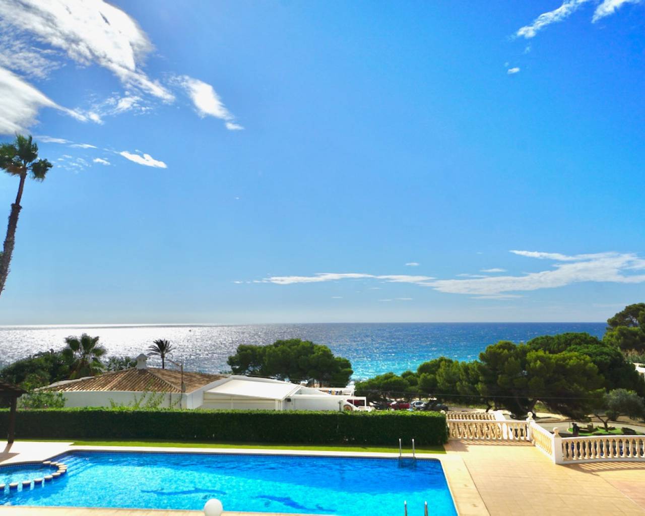 Apartamento dúplex en planta baja con dos dormitorios en primera línea de la 'Platgetes Beach' en Moraira. La planta superior cuenta la entrada con aseo, un salón comedor de planta abierta con vistas al mar y acceso a una terraza de buen tamaño con vistas a la piscina y la playa, una cocina independiente y un lavadero. Unas escaleras interiores conducen a la planta baja que consiste de un dormitorio doble con acceso a una terraza privada y jardines comunitarios, un baño con ducha y un segundo dormitorio doble con armarios empotrados y trastero.Estacionamiento subterráneo seguro con dos plazas de estacionamiento privadas, área de almacenamiento, escaleras y ascensor hasta el apartamento.El apartamento está equipado con aire acondicionado frío y calor, carpintería exterior de PVC con doble cristal y persianas enrollables, vídeo portero e internet de alta velocidad.La Residencial Platgetes es un complejo cerrado y seguro con jardín y piscina (15 x 6,5m) comunitaria y un garaje subterráneo. CARACTERÍSTICAS PRINCIPALES: Apartamento dúplex de PRIMERA LÍNEA Dos dormitorios, cuarto de ducha y aseo de invitadosOrientación surGaraje interior para dos cochesPiscina comunitariaA poca distancia del centro de Moraira ¿Está buscando una propiedad en una UBICACIÓN PRIME? ¡Llámenos ahora para reservar una visita!
