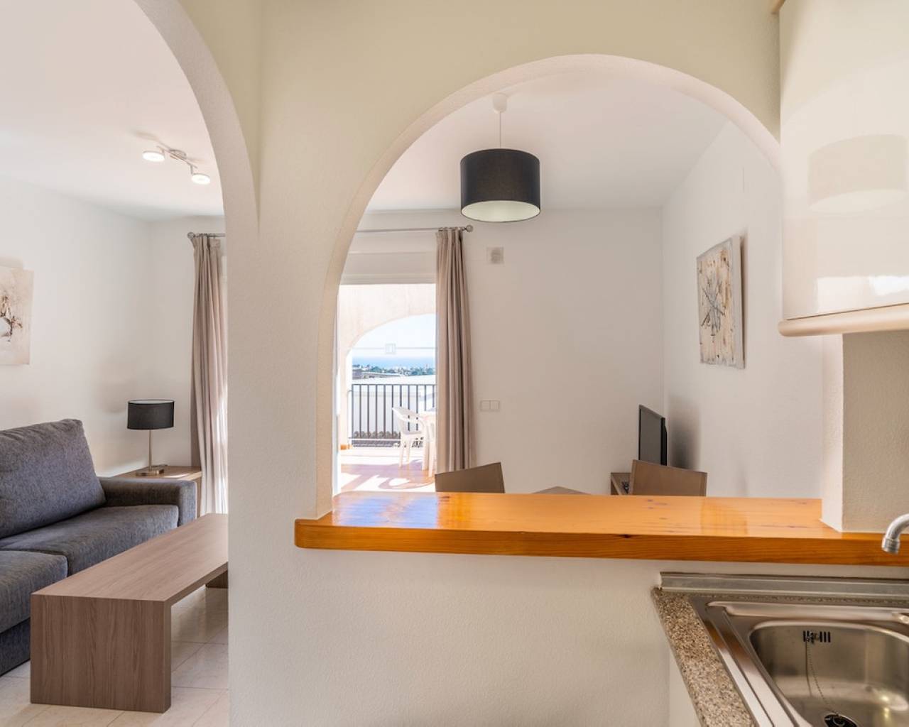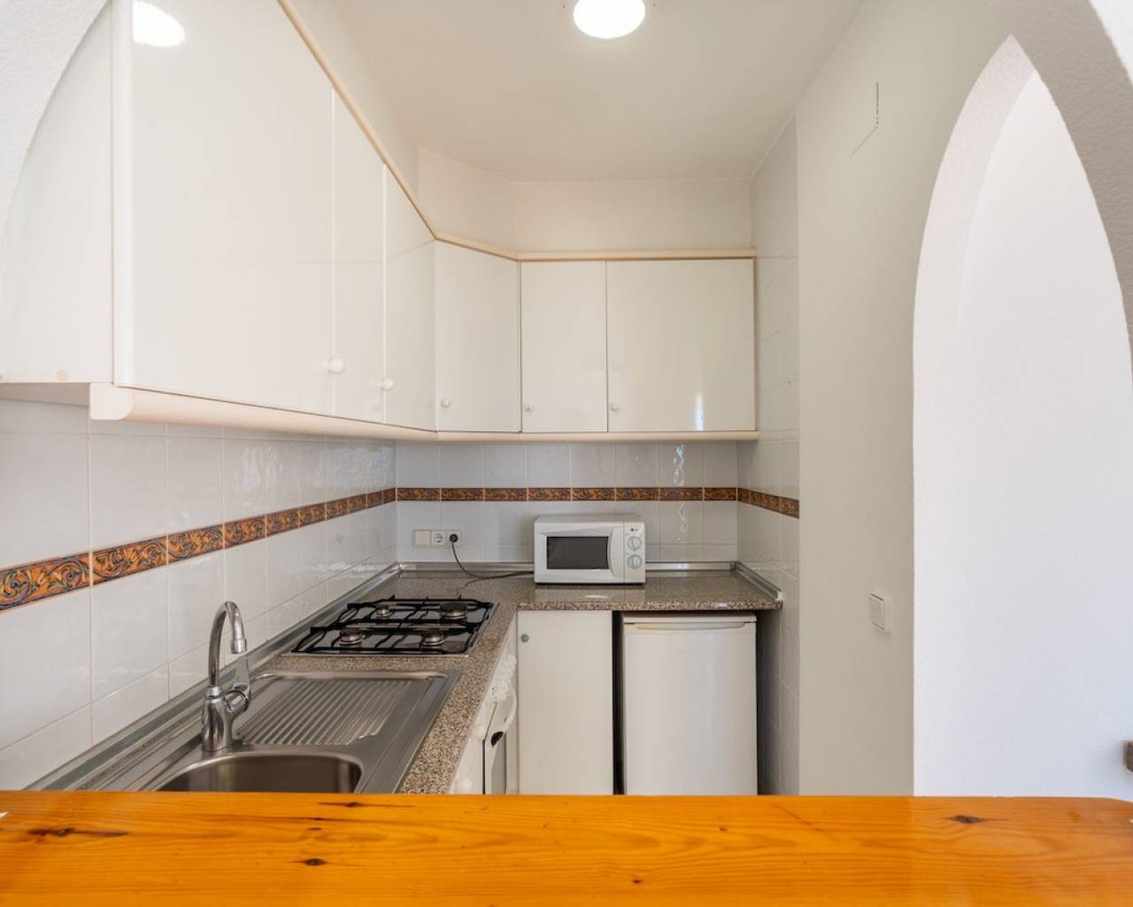Se vende bungalow con vistas panorámicas al mar en Calpe. Este bungalow está situado en un complejo con servicios a solo 4 minutos en coche del centro de Calpe y sus hermosas playas de arena. A través de un corto camino se llega a la entrada del bungalow, una vez abierta la puerta se accede a un vestíbulo. A la derecha encontramos el dormitorio doble con armarios empotrados y el cuarto de baño familiar. Más adelante, seguimos recto y llegamos al salón-comedor diáfano con una cocina totalmente equipada adyacente. Se accede al balcón a través de puertas de cristal y aquí se puede disfrutar del sol durante todo el día y todo el año gracias a su orientación sur. El espacio perfecto para relajarse y disfrutar de las tardes contemplando el Peñón de Ifach y el mar. Y por la escalera de caracol llegamos al solárium, una segunda terraza donde se puede disfrutar con total privacidad del precioso horizonte mediterráneo. El complejo vacacional ofrece fabulosas instalaciones comunes para su disfrute, incluyendo varias piscinas y hermosos jardines. CARACTERÍSTICAS PRINCIPALES: Vistas panorámicas al marOrientación surAire acondicionado (frío y calor) Fantásticas piscinas y jardines comunitariosBalcón con vistas al marVentanas con doble acristalamiento y persianasCCTV y conserjeComplejo cerrado Este bungalow es la propiedad ideal para pasar sus vacaciones en la Costa Blanca y también podría ser una gran inversión para alquilar.