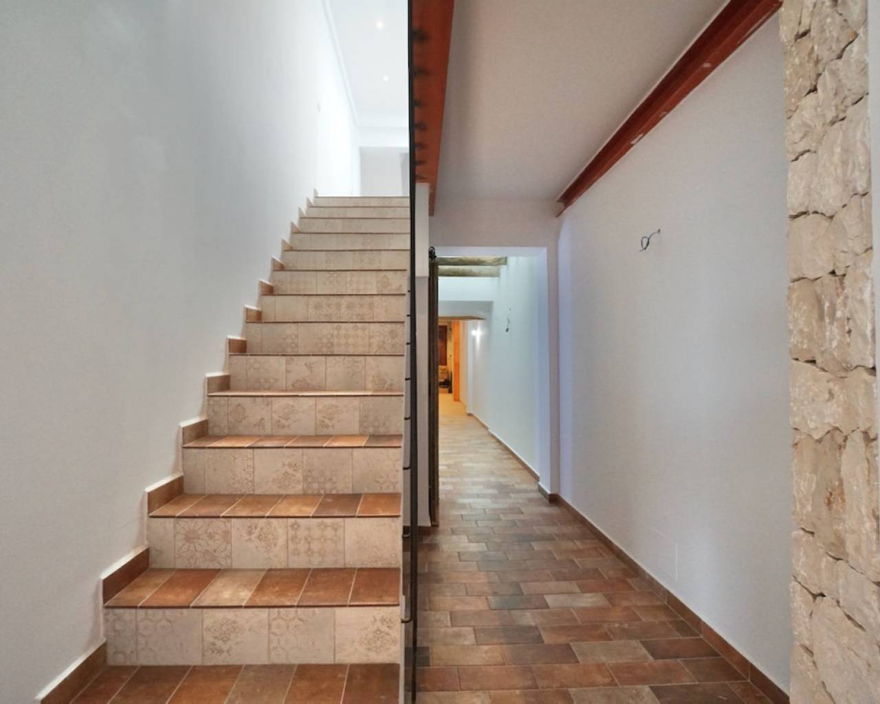 Esta casa de pueblo con carácter, situada en el corazón del encantador casco histórico de Benitachell, en la Costa Blanca, está siendo cuidadosamente restaurada por una reconocida empresa local de construcción con décadas de experiencia en la zona. A poca distancia a pie de tiendas, restaurantes, el colegio local y numerosos servicios, es una ubicación ideal para disfrutar de una vida cómoda y práctica. Al entrar en la propiedad, se accede a un recibidor que cuenta con una preciosa escalera interior, aseo de invitados y espacio para una lavadora. Además, una escalera de caracol conduce a una bodega privada. Continuando bajo un techo de cristal que inunda el espacio de luz natural, se accede a una cocina y salón de planta abierta. Esta estancia dispone de puertas correderas de cristal a todo lo ancho, que se abren directamente a la terraza y la piscina, creando un espacio de vida interior-exterior perfecto y ofreciendo bonitas vistas sobre el pueblo de Benitachell. La elegante escalera abierta conduce a la primera planta, donde se encuentran dos amplios dormitorios dobles y un baño familiar cuidadosamente renovado. En esta misma planta se ubica el dormitorio principal, que dispone de un balcón privado con vistas a la terraza y a la piscina, así como un precioso baño en suite decorado con mucho estilo. En la segunda planta se encuentra un dormitorio adicional y una gran terraza soleada con vistas panorámicas de Benitachell y una vista parcial al mar. Esta amplia terraza cuenta con tomas de agua y electricidad instaladas, lo que permite crear fácilmente una cocina exterior. La vivienda destaca por su carácter y sus acabados de alta calidad, con piedra natural de la zona, suelos de baldosas de calidad, un impresionante suelo de cristal que permite que la luz natural fluya por toda la casa, y materiales de primeras marcas para todos los sanitarios. Las puertas son de madera a medida y se ha cuidado cada detalle en la cerrajería y los revestimientos. Además, la preinstalación de aire acondicionado y tomas de internet está ya realizada. El promotor contribuirá al coste de una cocina a elección del comprador, la cual podrán instalar. También existe la opción de actualizarla a un diseño personalizado si se desea. CARACTERÍSTICAS PRINCIPALES: A poca distancia a pie de todos los servicios4 dormitorios3 bañosAseo de invitadosPiscina privadaVista parcial al marEspacio de salón y cocina de concepto abiertoBodega privada No pierda la oportunidad de visitar esta magnífica casa de pueblo en una ubicación fantástica. Contáctenos hoy mismo para concertar una visita!
