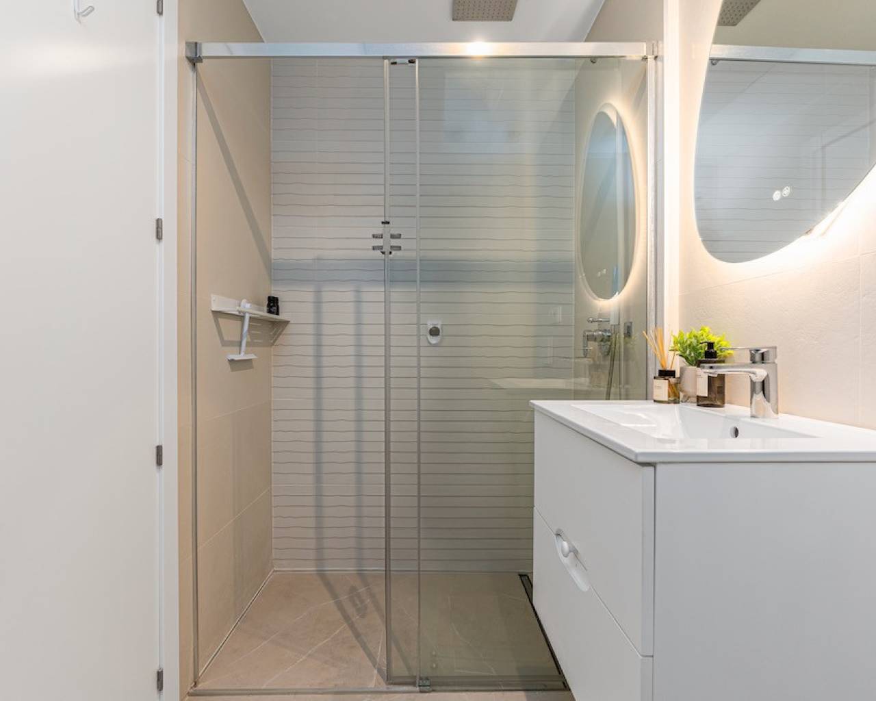 Apartamento de lujo con vistas panorámicas a pocos pasos de la playa de Calpe Descubra este excepcional apartamento construido en 2024, situado a pocos pasos de las arenas de la playa del Arenal de Calpe. Ubicado en un exclusivo edificio residencial de baja altura con solo 25 unidades, este hogar en la planta 14 ofrece una privacidad inigualable, ya que es el único apartamento en su nivel. Diseñado para ofrecer comodidad y espacio, el interior cuenta con una luminosa sala de estar y cocina de planta abierta, reconfigurada a partir de la distribución original para maximizar el espacio y la luz. Las grandes puertas correderas se abren a tres amplias terrazas, cada una de más de 30 m², que ofrecen vistas panorámicas y exposición al sol desde la mañana hasta la noche gracias a su orientación este, sur y oeste. La propiedad ofrece dos amplios dormitorios, ambos con baño en suite y acceso directo a las terrazas. Una de las terrazas está equipada con una ducha exterior con agua caliente y fría y cuenta con una instalación de jacuzzi, lo que la convierte en un refugio privado ideal para relajarse. Los acabados de primera calidad incluyen una cocina contemporánea equipada con electrodomésticos Bosch, calefacción por suelo radiante en los baños y persianas eléctricas en toda la vivienda. El apartamento se vende completamente amueblado y listo para entrar a vivir, con una licencia de alquiler turístico, lo que lo convierte en una excelente oportunidad tanto para uso privado como para inversión. El precio incluye una plaza de aparcamiento subterráneo vigilado y un trastero. Hay una segunda plaza de aparcamiento disponible como opción. Los residentes disfrutan de acceso a una amplia gama de servicios, incluyendo una piscina de 22 metros, una piscina infantil independiente, un parque infantil, una pista de pádel y un moderno gimnasio, lo que ofrece un estilo de vida tipo resort a solo unos minutos del centro de la ciudad y de la costa. Una oportunidad única de adquirir un apartamento de lujo excepcional en una de las ubicaciones más codiciadas de Calpe.