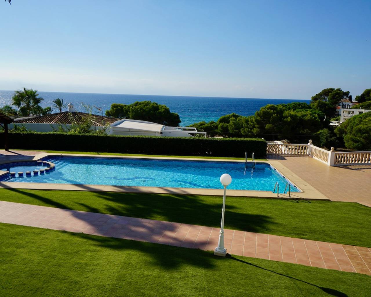 Dúplex en Primera Línea con 3 Dormitorios y Vistas al Mar en Moraira Precioso dúplex en primera línea situado frente a la Playa de Platgetes en Moraira, con impresionantes vistas al mar y acceso directo al paseo marítimo. Esta vivienda luminosa y espaciosa forma parte del exclusivo complejo Residencial Platgetes, con jardines comunitarios, gran piscina y aparcamiento subterráneo. La planta superior ofrece un acogedor hall de entrada con aseo de invitados, un amplio salón-comedor con vistas al mar y acceso a una gran terraza soleada con vistas a la piscina y a la playa. La cocina es independiente, completamente equipada, y cuenta con lavadero. En la planta baja encontramos tres cómodos dormitorios, incluido el principal con acceso directo a una terraza privada y a los jardines comunitarios, además de dos baños modernos con ducha y amplios armarios empotrados. El apartamento incluye dos plazas de garaje privadas subterráneas, trastero y acceso por ascensor. Equipado con aire acondicionado frío/calor, ventanas de PVC con doble acristalamiento y persianas, videoportero e internet de alta velocidad. Residencial Platgetes ofrece un entorno tranquilo y seguro, a poca distancia a pie del centro de Moraira, sus tiendas y restaurantes. Características Principales: Dúplex en primera línea con vistas al mar3 dormitorios, 2 baños Cocina independiente y lavaderoAmplio salón con terraza soleadaPiscina y jardines comunitariosTerraza privada con acceso al jardín2 plazas de garaje y trasteroAire acondicionado y doble acristalamientoA poca distancia del centro de Moraira Si busca una vivienda luminosa y cómoda en una ubicación exclusiva frente al mar, ¡contáctenos hoy mismo para concertar una visita!