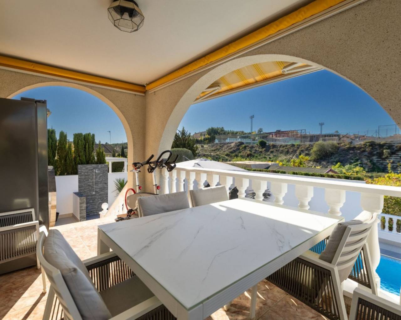 Con 5 amplios dormitorios y 3 elegantes cuartos de baño, esta villa ofrece espacio de sobra para familiares y amigos. La vivienda consta de dos plantas, estando la planta baja acondicionada como un apartamento independiente con entrada propia, salón y cuarto de baño de lujo, un lugar ideal para invitados o visitas familiares. En la planta superior se puede disfrutar de un luminoso salón, una cocina abierta y acceso directo a la terraza con vistas al jardín con piscina privada y a las montañas.
