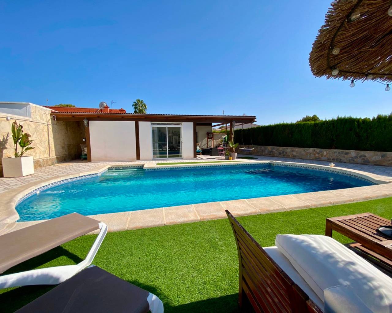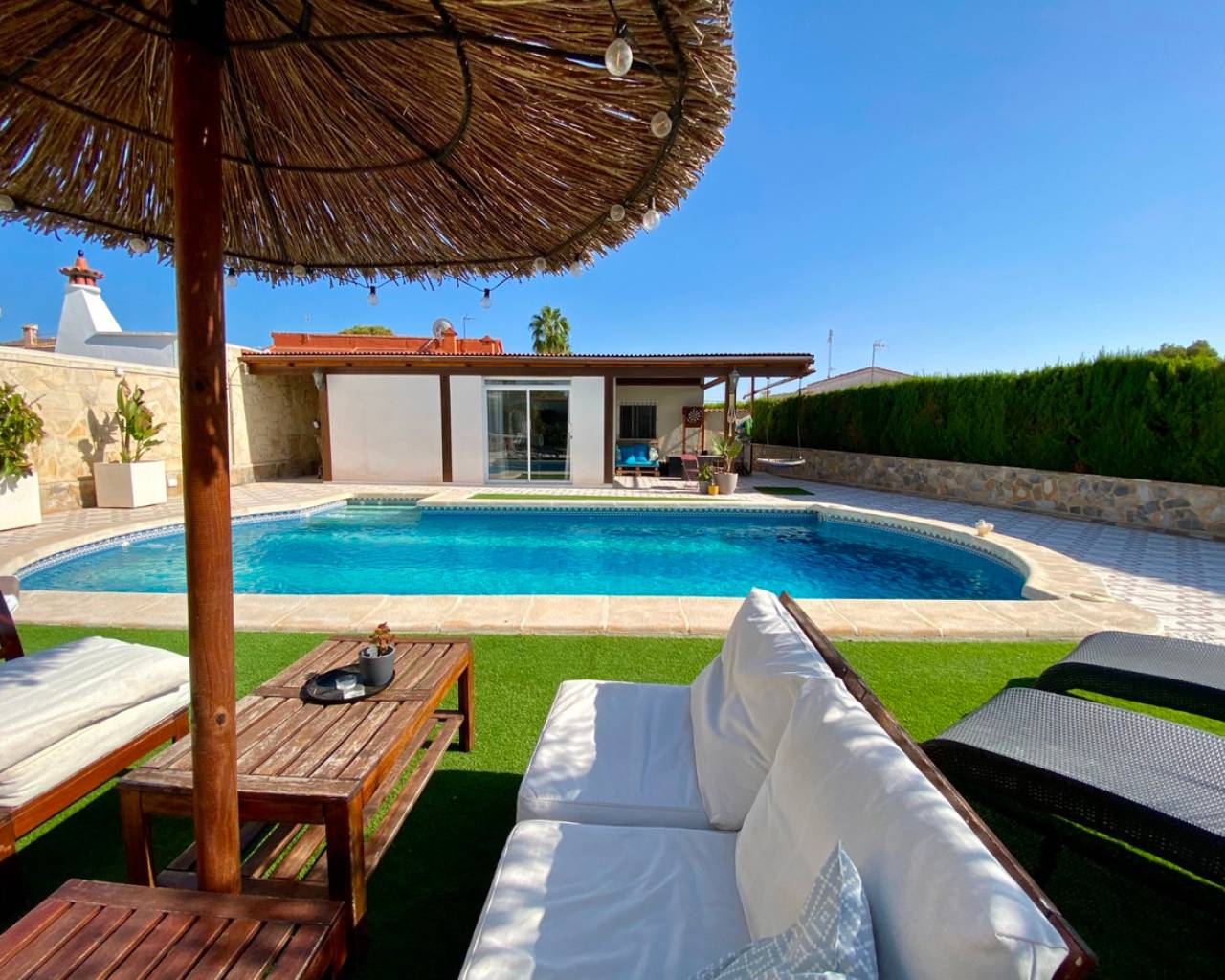 Chalet independiente con chalet de invitados, piscina y garajes a 2 minutos del centro de Quesada Ubicada a pocos pasos del centro de Ciudad Quesada, esta espaciosa villa independiente se encuentra en una parcela privada de 834 m² y ofrece opciones de vida flexibles, incluido un chalet de invitados totalmente independiente. La casa principal cuenta con 3 dormitorios dobles y 2 baños , además de un amplio salón-comedor y una cocina totalmente equipada. El chalet independiente (casita) incluye 1 dormitorio, 1 baño, cocina propia y trastero, ideal para familias numerosas, invitados o para alquilar. En el exterior, encontrará una piscina de agua salada y una zona de estar cubierta con pérgola , ideal para relajarse y entretenerse. La propiedad también incluye dos garajes privados. Construida en 1987 , la casa ha sido bien cuidada, con mejoras recientes que incluyen el interior de la casita, el patio y el techo del garaje (todo renovado en los últimos dos años). Detalles clave: Parcela: 834 m² Superficie construida: Aprox. 250 m² 3 dormitorios / 2 baños en la casa principal 1 dormitorio / 1 baño + cocina en el chalet de invitados Piscina de agua salada 2 garajes + estacionamiento adicional Orientada al sur A 2 minutos a pie del centro de Quesada 10 minutos de la playa 30 minutos al aeropuerto de Alicante A poca distancia de todos los servicios. Solárium Esta villa, sólida y bien ubicada, ofrece un excelente potencial tanto para vivir como para alquilar. Se pueden realizar visitas con cita previa.