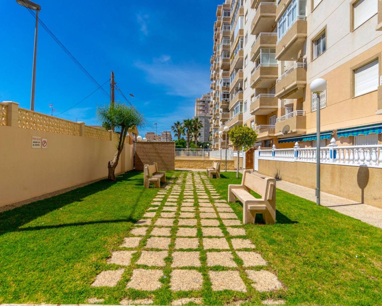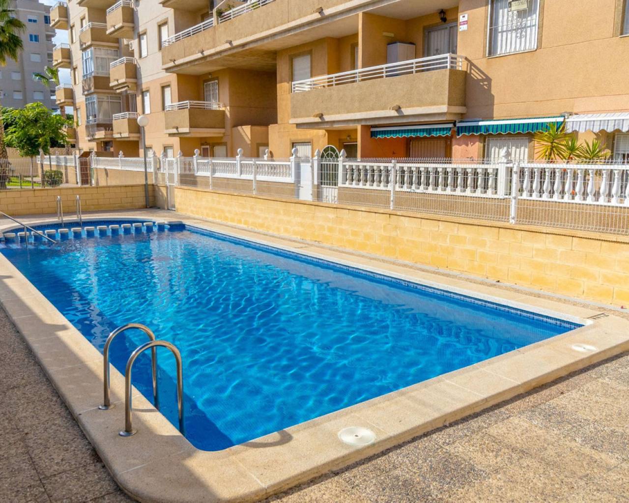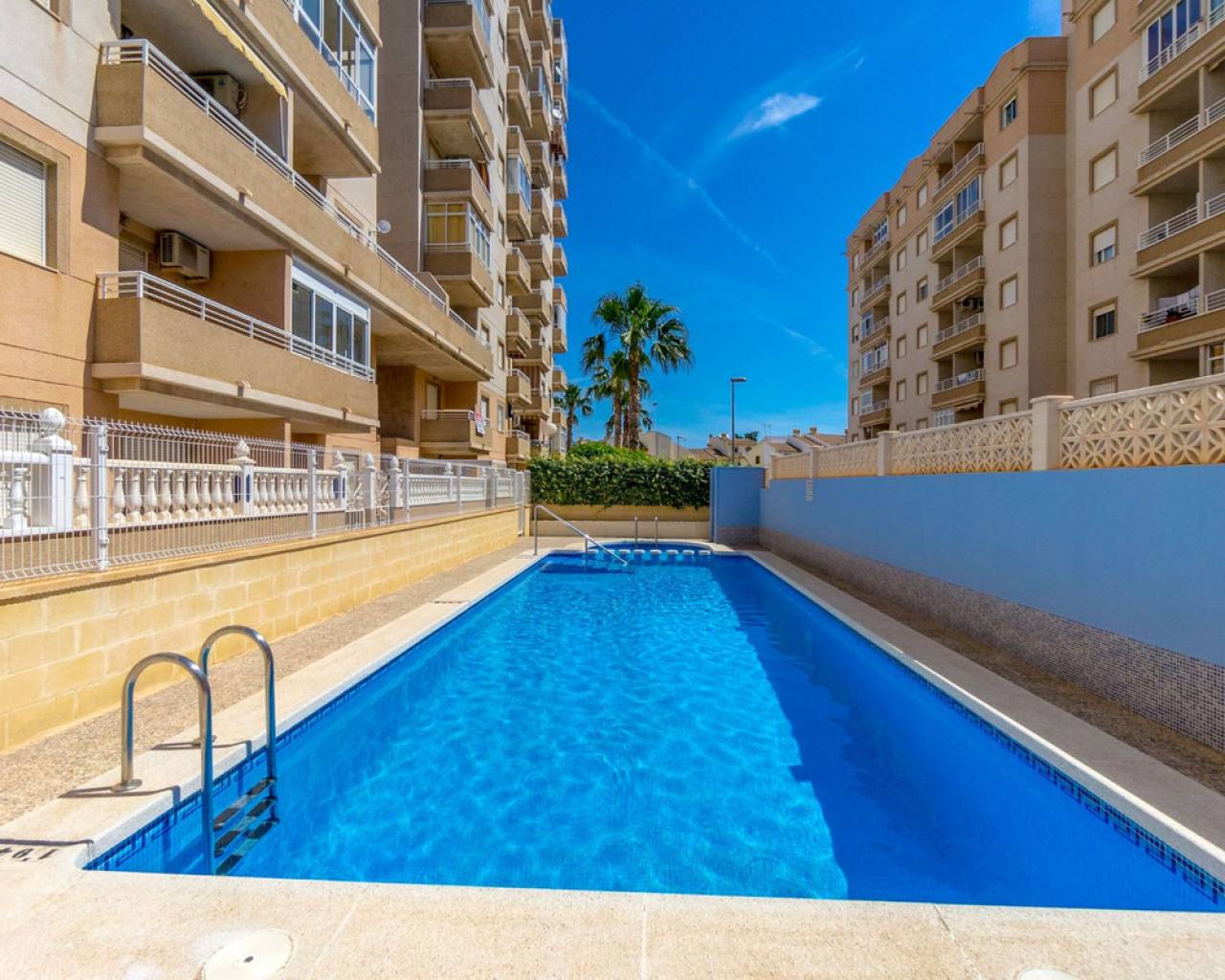 Apartamento reformado de 2 dormitorios en planta baja en Torrevieja Ubicado en la tranquila y establecida zona de Nueva Torrevieja , este apartamento de 2 dormitorios y 1 baño en planta baja es ideal para vivir todo el año, una casa de vacaciones o una sólida inversión de alquiler. El apartamento se encuentra en un complejo residencial bien cuidado con piscina comunitaria y está situado en la planta baja para facilitar el acceso. Cuenta con un moderno baño con ducha a ras de suelo , una cocina renovada y suelos de baldosas nuevos , lo que ofrece un espacio limpio y funcional. Uno de los aspectos más destacados de esta propiedad son sus dos terrazas privadas , una delantera y otra trasera, que permiten disfrutar del sol tanto por la mañana como por la tarde, relajarse al aire libre o usar el espacio para almacenaje adicional o para comer. La superficie total construida es de 62 m² , lo que proporciona una distribución cómoda y práctica. El apartamento está bien comunicado por carretera y transporte público. Supermercados, cafeterías y otros servicios esenciales están a un corto paseo. Características de la propiedad: 62 m² construidos 2 dormitorios aire acondicionado 1 baño con ducha a ras de suelo Cocina renovada Azulejos de suelo nuevos Planta baja – acceso sin escalones Dos terrazas privadas (delantera y trasera) Piscina comunitaria Zona residencial tranquila en Torrevieja Fácil acceso a comercios, servicios y transporte público. Una gran oportunidad de poseer una propiedad lista para entrar a vivir en una zona tranquila de Torrevieja , que ofrece comodidad interior y espacio exterior.
