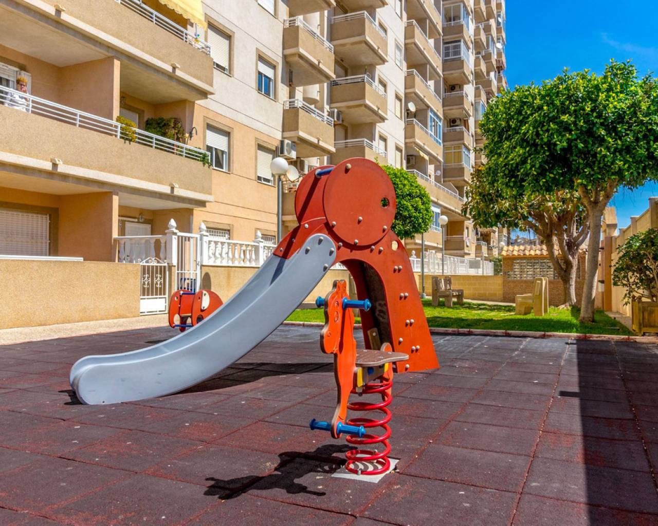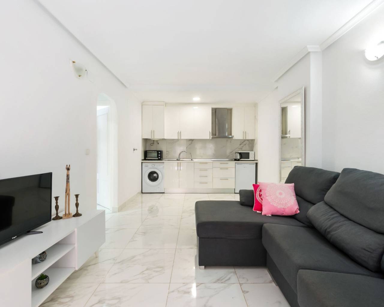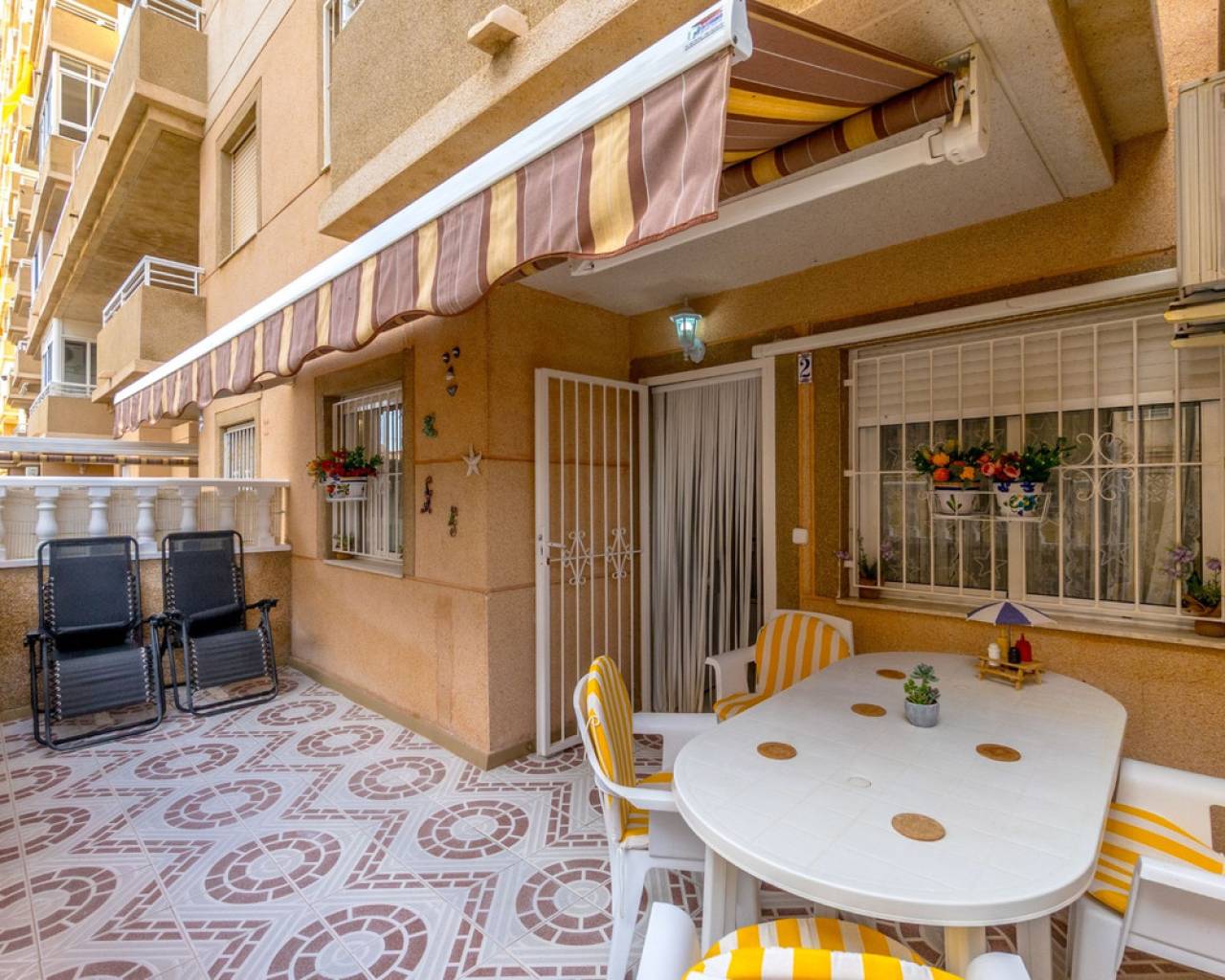 Apartamento reformado de 2 dormitorios en planta baja en Torrevieja Ubicado en la tranquila y establecida zona de Nueva Torrevieja , este apartamento de 2 dormitorios y 1 baño en planta baja es ideal para vivir todo el año, una casa de vacaciones o una sólida inversión de alquiler. El apartamento se encuentra en un complejo residencial bien cuidado con piscina comunitaria y está situado en la planta baja para facilitar el acceso. Cuenta con un moderno baño con ducha a ras de suelo , una cocina renovada y suelos de baldosas nuevos , lo que ofrece un espacio limpio y funcional. Uno de los aspectos más destacados de esta propiedad son sus dos terrazas privadas , una delantera y otra trasera, que permiten disfrutar del sol tanto por la mañana como por la tarde, relajarse al aire libre o usar el espacio para almacenaje adicional o para comer. La superficie total construida es de 62 m² , lo que proporciona una distribución cómoda y práctica. El apartamento está bien comunicado por carretera y transporte público. Supermercados, cafeterías y otros servicios esenciales están a un corto paseo. Características de la propiedad: 62 m² construidos 2 dormitorios aire acondicionado 1 baño con ducha a ras de suelo Cocina renovada Azulejos de suelo nuevos Planta baja – acceso sin escalones Dos terrazas privadas (delantera y trasera) Piscina comunitaria Zona residencial tranquila en Torrevieja Fácil acceso a comercios, servicios y transporte público. Una gran oportunidad de poseer una propiedad lista para entrar a vivir en una zona tranquila de Torrevieja , que ofrece comodidad interior y espacio exterior.