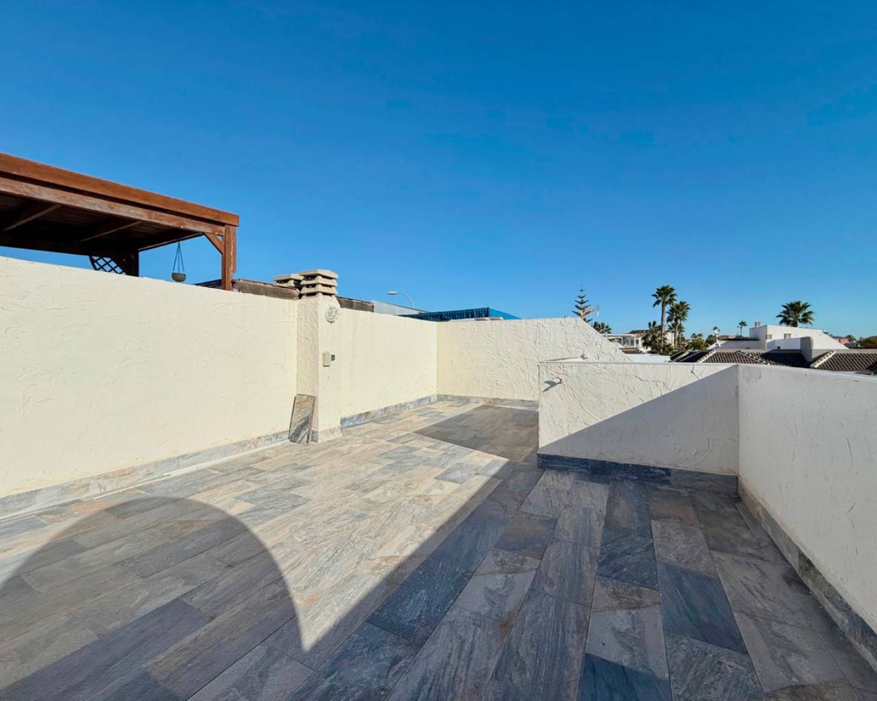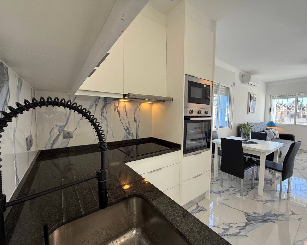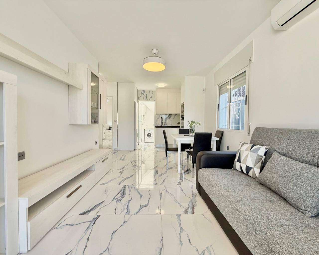 Descubra esta casa adosada de 2 dormitorios y 1 baño, completamente renovada y amueblada, ubicada a la entrada de El Chaparral . Ofrece excelente accesibilidad y un estilo de vida fantástico. Con una ubicación ideal cerca de servicios, paradas de autobús y el emblemático Lago Rosa , esta casa combina comodidad, practicidad y encanto mediterráneo. Recientemente renovada, la propiedad cuenta con interiores modernos y luminosos y se entrega completamente amueblada, lista para entrar a vivir. Disfrute del sol en su solárium privado con preciosas vistas al Lago Rosa , ideal para relajarse o entretenerse. La orientación sureste garantiza abundante luz natural durante todo el día. Los beneficios adicionales incluyen estacionamiento privado , brindando seguridad y conveniencia. Ya sea que esté buscando una residencia permanente, un refugio de vacaciones o una inversión sólida, esta propiedad llave en mano ofrece un valor excepcional en una de las zonas más solicitadas de Torrevieja. ¡Contáctenos hoy para reservar su cita y ver esta hermosa casa!