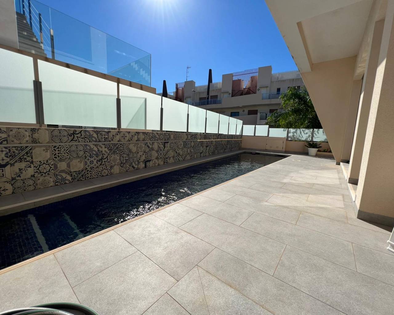 Estamos muy contentos de presentar esta villa de lujo junto al mar de reciente construcción ubicada a solo un par de minutos a pie de las fantásticas playas de arena de Mil Palmeras, construida con un alto estándar moderno construido en 2 niveles más un gran solárium y varios espacios de terraza con vistas al mar. Al entrar en la propiedad, es recibido por la hermosa escalera flotante de madera y vidrio y la fantástica cocina familiar moderna. El comedor de la sala de estar de planta abierta es realmente acogedor con grandes ventanas y puertas de piso a techo que se abren a una hermosa terraza orientada al sur de bajo mantenimiento para el entretenimiento y el área de la piscina. En este nivel también encontrará un dormitorio doble con acceso directo a espacio de terraza y armario, baño completo y un gran lavadero equipado con trastero. En el siguiente nivel encontramos 2 dormitorios principales en suite con armarios, una gran terraza orientada al sur con escaleras hasta el solárium con vistas abiertas al mar y sus alrededores. Esta propiedad especial junto al mar está situada en la esquina con muro de privacidad, estacionamiento en la calle y en una excelente ubicación.