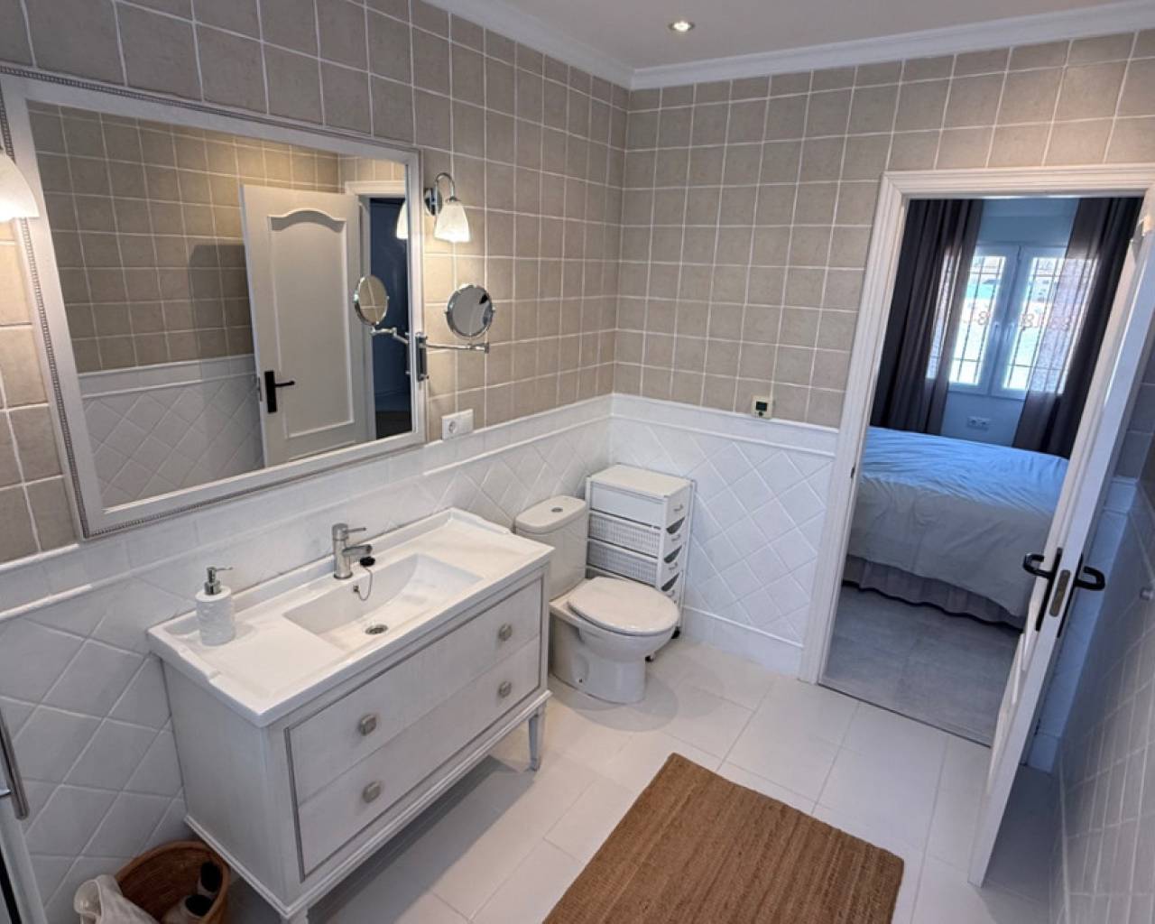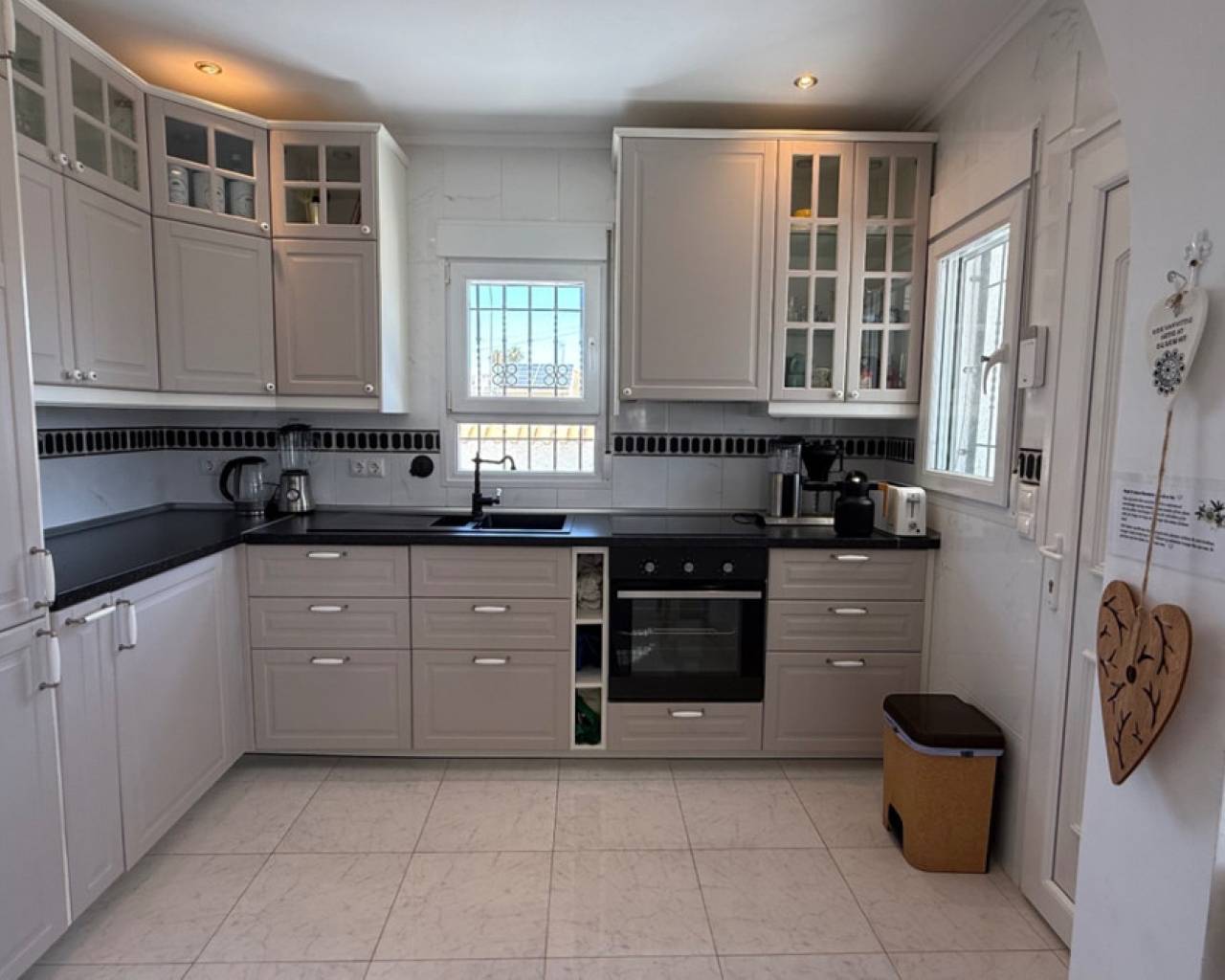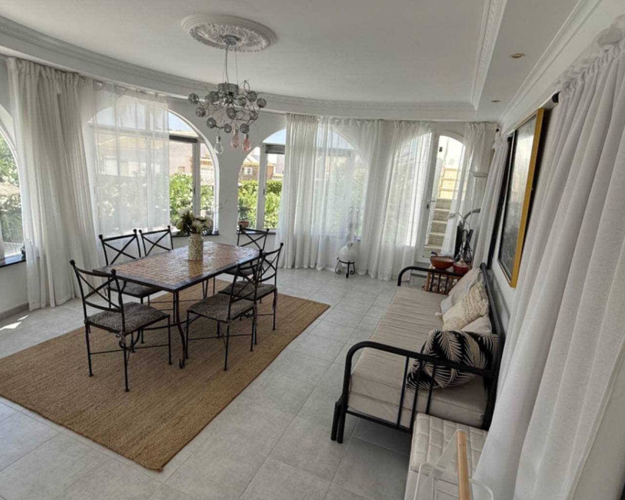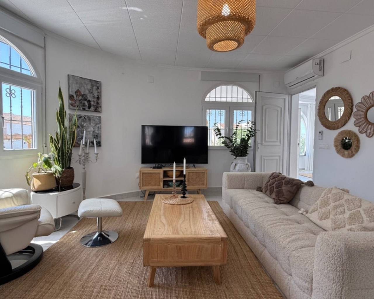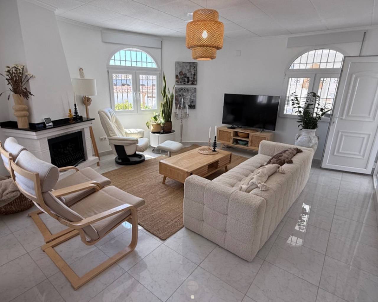 Presentamos esta villa independiente de tres habitaciones y dos baños, elegantemente presentada, idealmente ubicada en el codiciado vecindario de El Chaparral / San Luis - Costa Blanca Sur. Situada en una generosa parcela de aproximadamente 800 m², esta propiedad ofrece una rara combinación de privacidad, espacio y estilo refinado. Rodeada de muros de privacidad y con acceso a través de una entrada segura, la villa ofrece una atmósfera tranquila y acogedora desde el momento de su llegada. El hogar ha sido cuidadosamente actualizado a un estándar alto, combinando un diseño nórdico limpio con la calidez de los elementos tradicionales españoles. El resultado es un interior armonioso y acogedor que se siente tanto contemporáneo como atemporal. La espaciosa veranda acristalada da a la impresionante área de la piscina con piscina de agua salada y jardines cuidadosamente mantenidos y de bajo mantenimiento, creando una experiencia de vida interior-exterior sin interrupciones que se puede disfrutar durante todo el año. Los jardines de la propiedad tienen una codiciada orientación suroeste, bañados por la luz natural durante todo el día, perfectos para quienes buscan sol y entretenimiento al aire libre. Varias zonas de descanso, piscina de agua salada, áreas de comedor, solárium con vistas al lago salado y cocina exterior completan realmente este oasis al aire libre. Los jardines están llenos de árboles frutales, incluyendo: naranja, naranja sanguina, mandarina, limón, mango y olivo. Las características adicionales incluyen aparcamiento fuera de la carretera, una zona de almacenamiento dedicada, un baño completo exterior para la comodidad junto a la piscina y exteriors bellamente alicatados diseñados para un fácil mantenimiento. Cada rincón de esta casa ha sido cuidadosamente considerado para maximizar el confort, el estilo y la funcionalidad. Idealmente situada a pocos momentos de las comodidades locales, con fácil acceso a Torrevieja, el centro comercial Habaneras y las playas de la Costa Blanca, esta villa ofrece tanto conveniencia como un entorno de vida sereno. Ya sea que esté buscando una residencia permanente, un refugio de vacaciones o una inversión inteligente, esta es una propiedad que no querrá perderse.
