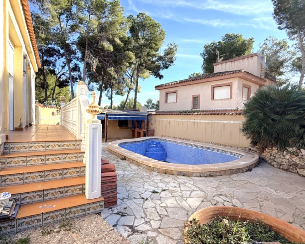 Bienvenido a Tu Casa de Sueño en Costa Blanca Sur Descubre el encanto de esta exquisita casa independiente situada en la hermosa ciudad de Pilar de la Horadada, una joya en la impresionante región de Costa Blanca Sur en Alicante. Esta propiedad encarna la combinación perfecta de estilo tradicional y comodidades modernas, prometiendo un estilo de vida lujoso envuelto en un entorno sereno. Amplias Áreas de Estar Con una generosa superficie construida de 257 metros cuadrados, esta residencia ofrece un amplio espacio tanto para la relajación como para el entretenimiento. El diseño cuidadosamente planeado presenta cuatro dormitorios bien proporcionados y tres baños, asegurando comodidad y conveniencia tanto para la familia como para los huéspedes. Cada área de estar abraza la belleza de la luz natural, gracias a la orientación sureste que baña los interiores con un cálido sol. Oasis Exterior Ubicada en una impresionante parcela de 1030 metros cuadrados, los espacios exteriores de esta propiedad son realmente espectaculares. La piscina privada te invita a relajarte bajo el sol o disfrutar de refrescantes zambullidas en las cálidas tardes, mientras que el jardín bellamente ajardinado crea un refugio tranquilo. Las terrazas abiertas y cubiertas son perfectas para cenar al aire libre o simplemente para absorber el vibrante entorno. Imagina organizar barbacoas con familia y amigos en tu propia cocina de verano o disfrutar de noches pacíficas bajo las estrellas. Comodidad y Conveniencia Este hogar está equipado con comodidades modernas para una vida confortable. El sistema de aire acondicionado garantiza un ambiente fresco durante los cálidos meses de verano, mientras que la calefacción central de aceite ofrece calidez en las estaciones más frescas. Experimenta acogedoras tardes junto a la chimenea, creando recuerdos duraderos con tus seres queridos en un ambiente encantador. Diseñado para la Funcionalidad La cocina independiente es un paraíso culinario, perfecta para preparar desde comidas informales hasta cenas gourmet. La propiedad también incluye características prácticas como un garaje, trastero y lavadero, que añaden facilidad a la vida cotidiana. Las ventanas de doble acristalamiento mejoran la eficiencia energética, proporcionándote tranquilidad mientras reduces tu huella ambiental. Seguridad y Privacidad Con un terreno cerrado, tienes total privacidad para disfrutar de tu paraíso al aire libre. La ducha exterior es un beneficio adicional para limpiarte después de un día junto a la piscina. La combinación de estos elementos fomenta una atmósfera de relajación y seguridad que apreciarás. Esta casa independiente en Pilar de la Horadada no es solo una propiedad; es un estilo de vida que espera a que lo abraces. Con la vibrante cultura de la región de Costa Blanca Sur a tus puertas, este hogar ofrece una oportunidad única de poseer un pedazo de paraíso en una de las áreas más deseables de España.