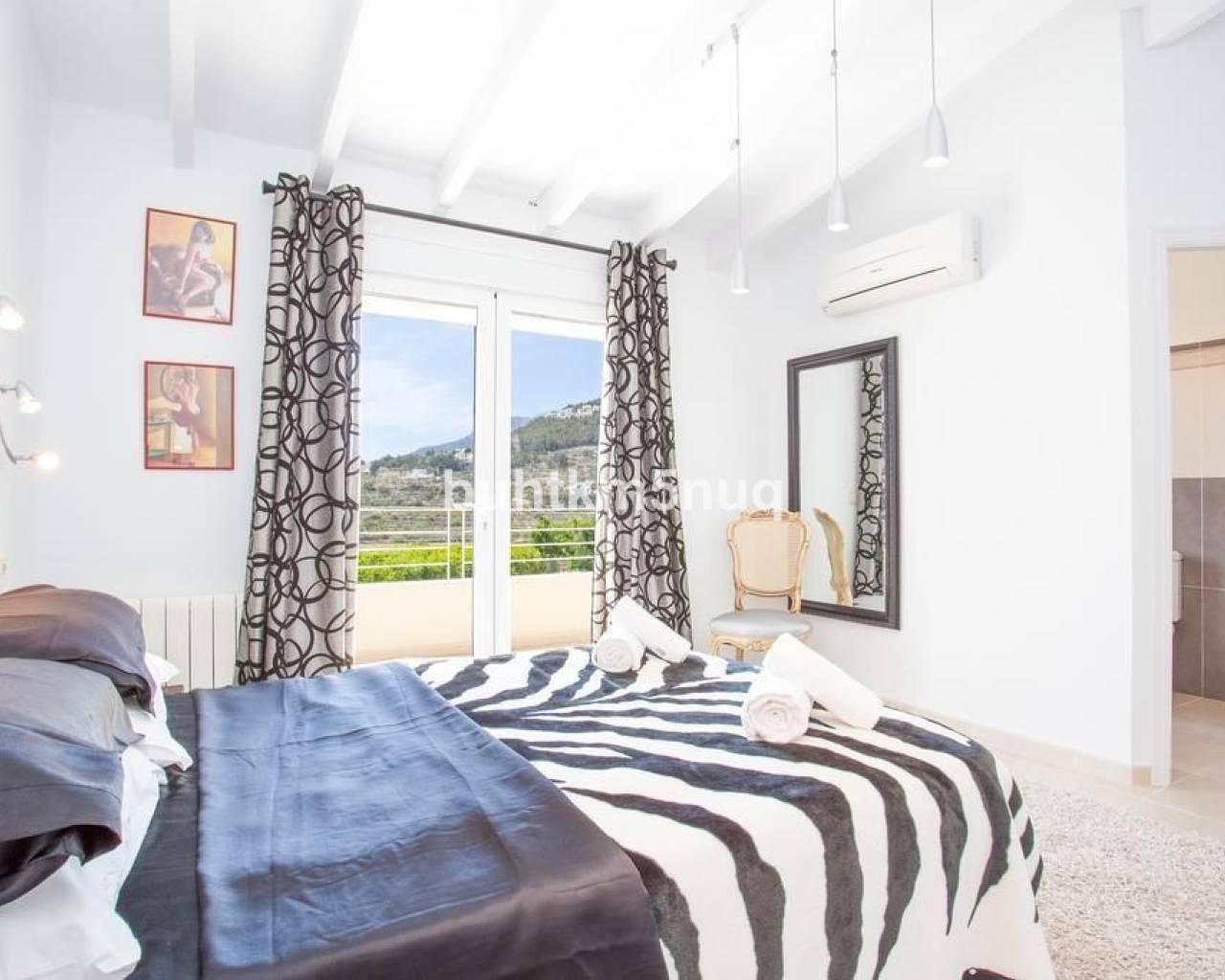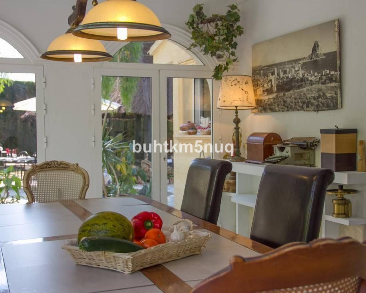 Descubre esta impresionante villa mediterránea, ideal para familias que buscan una propiedad de lujo en un entorno tranquilo pero cercano a todos los servicios. Con su amplia parcela totalmente vallada y ajardinada al estilo mediterráneo, encontrarás diferentes áreas para relajarte como la cabaña africana o la zona de piscina rodeada por una gran terraza.~~La vivienda dividida en dos plantas cuenta con interiores luminosos gracias a sus grandes ventanales. Encontrarás espacios abiertos sin pasillos innecesarios donde disfrutar del comedor con chimenea o incluso jugar billar mientras te calientas junto a otra chimenea más.~~En el piso superior se encuentran las cuatro habitaciones cada una equipadas bien surtidas baños completos incluyendo ducha; tres dormitorios tienen acceso directo hacia la espectacular vista panorámica sobre Calpe desde sus respectivas terrazas privadas orientados al Sur garantizando unas vacaciones inolvidables.