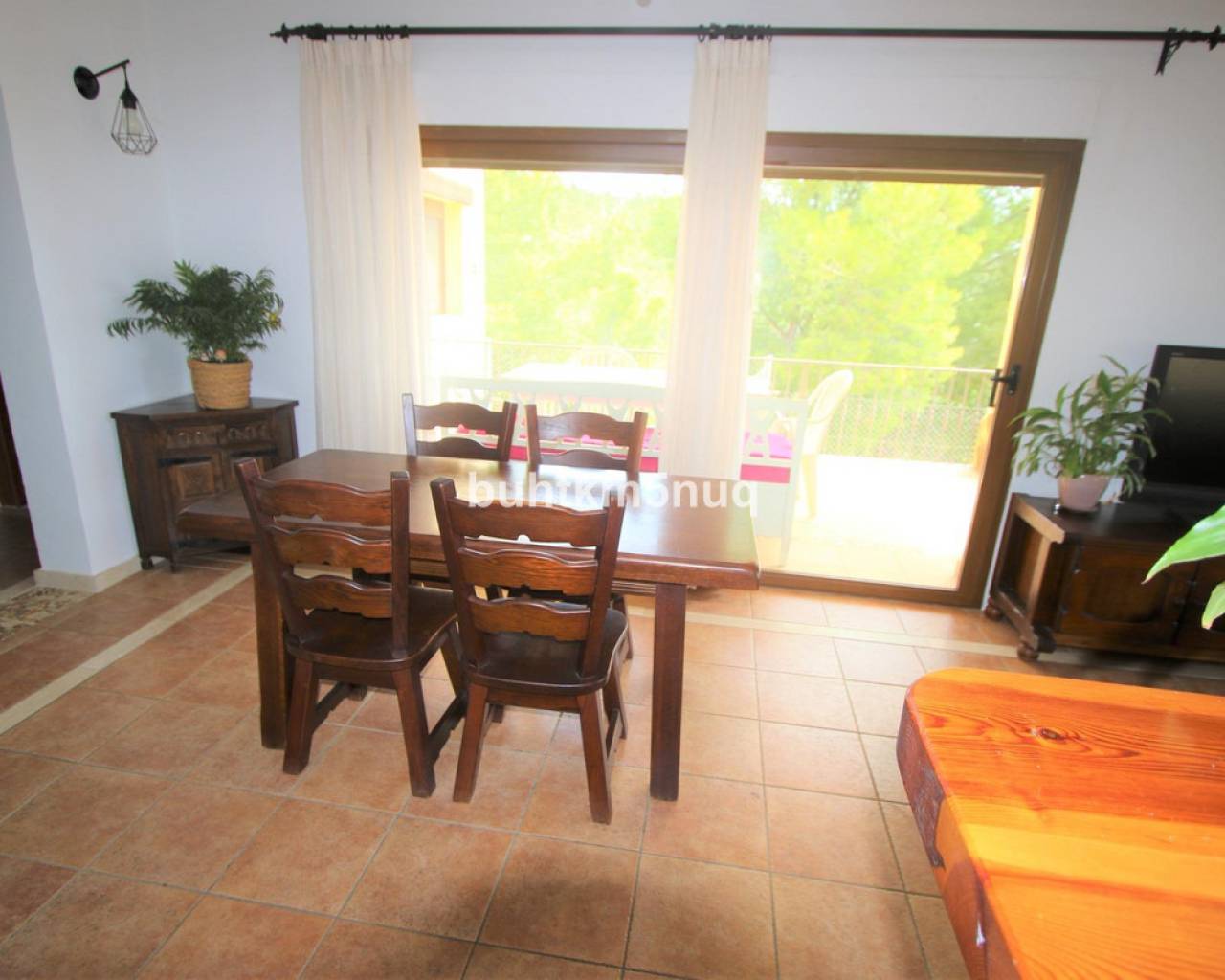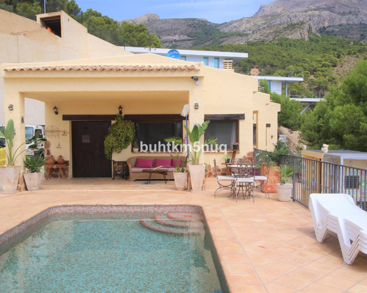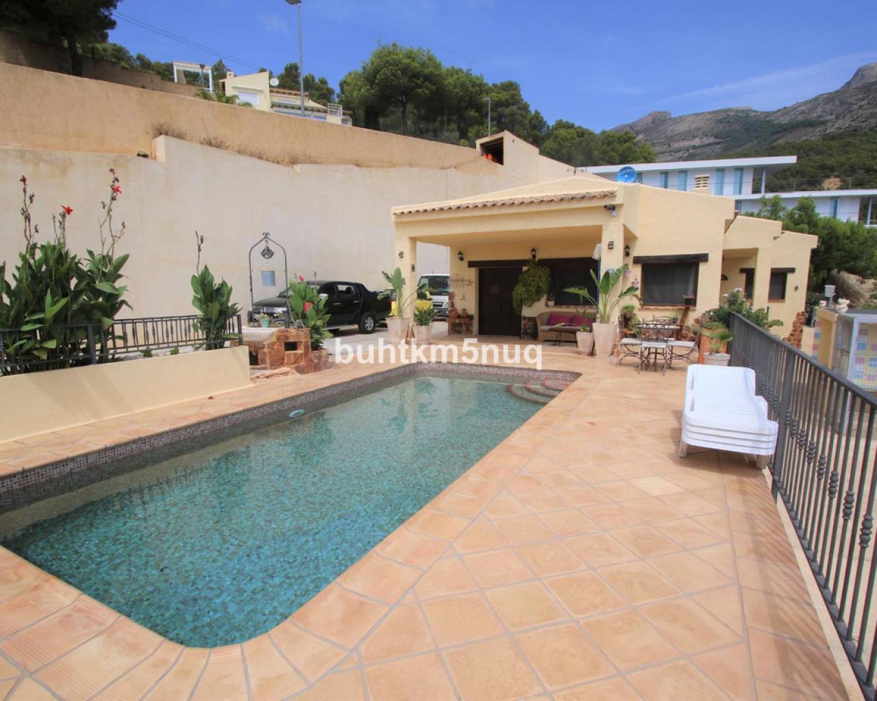 Villa con casa de invitados, piscina privada, cocina exterior cubierta, varias terrazas, amplio garaje y mucho espacio para aparcar. La casa principal tiene un amplio salón / comedor con cocina abierta, lavadero / trastero, 2 dormitorios y 1 baño. Hay calefacción con radiadores de gas, chimenea, doble cristal de seguridad, persianas y mosquiteras. La casa de invitados tiene 2 dormitorios y 1 baño. La gran cocina al aire libre cubierta y equipada tiene una barbacoa, una estufa de gas y un horno de pizza. Desde todas las terrazas hay vistas de Altea, el mar Mediterráneo y las montañas.