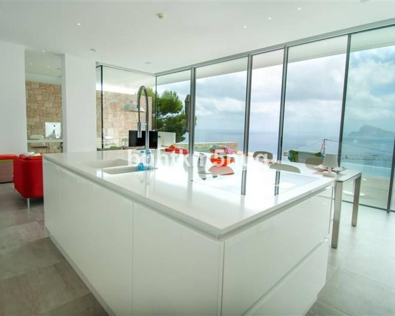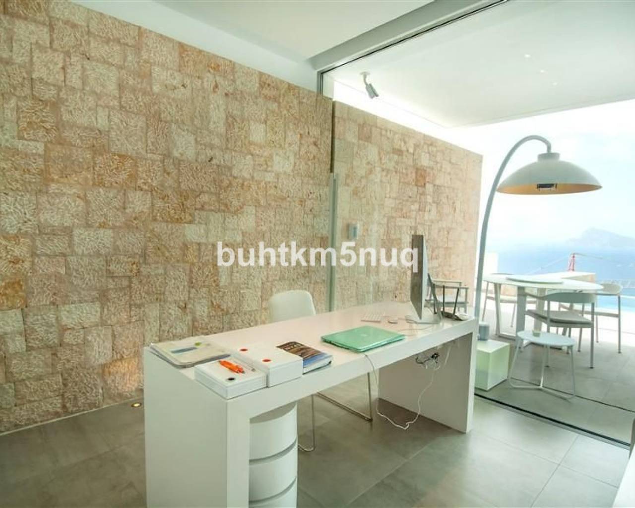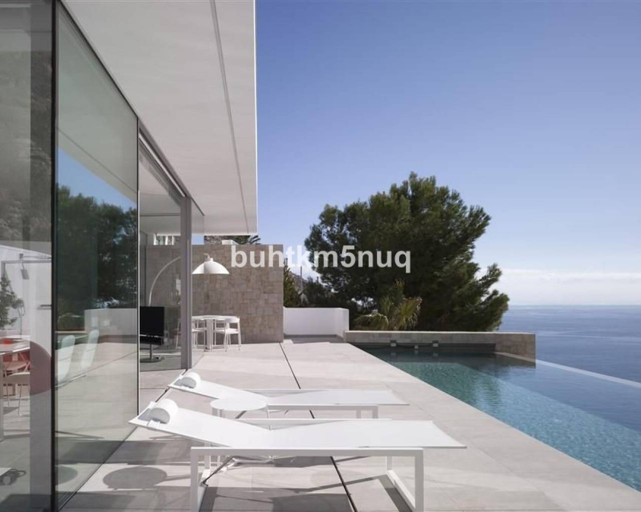 La propiedad se distribuye en tres elegantes niveles, conectados por una escalera con ascensor privado.~~En la planta superior se encuentra un amplio hall de entrada con acceso directo al espacioso garaje.~Un nivel más abajo hay dos amplios dormitorios con baños en suite y una sala de televisión independiente que puede adaptarse perfectamente como tercer dormitorio.~~En la planta principal, la villa le da la bienvenida con un salón-comedor abierto y luminoso, junto a una cocina de diseño totalmente equipada con isla central. Además, dispone de un práctico lavadero/trastero, un aseo de cortesía y una elegante zona de despacho — ideal para trabajar desde casa con vistas al mar.~~El salón da acceso a una gran terraza soleada con una piscina infinita climatizada de agua salada (12 x 3,5 m), que se funde literalmente con el horizonte del Mediterráneo.~Debajo de la piscina se encuentra un amplio sótano multifuncional — perfecto como gimnasio, zona wellness o bodega.~~Equipamiento de alto nivel:~Suelo radiante regulable por estancia~~Aire acondicionado integrado~~Sistema completo de domótica~~Alarma con videovigilancia~~Sistema centralizado de aspiración~~Materiales y acabados de alta calidad según los estándares más exigentes~~Esta moderna villa totalmente equipada no solo ofrece confort y estilo, sino también una ubicación excepcional y unas vistas panorámicas que le enamorarán cada día. Tiene la posibilidad de ampliar la construcción en 200 m2, dada la superficie del terreno.