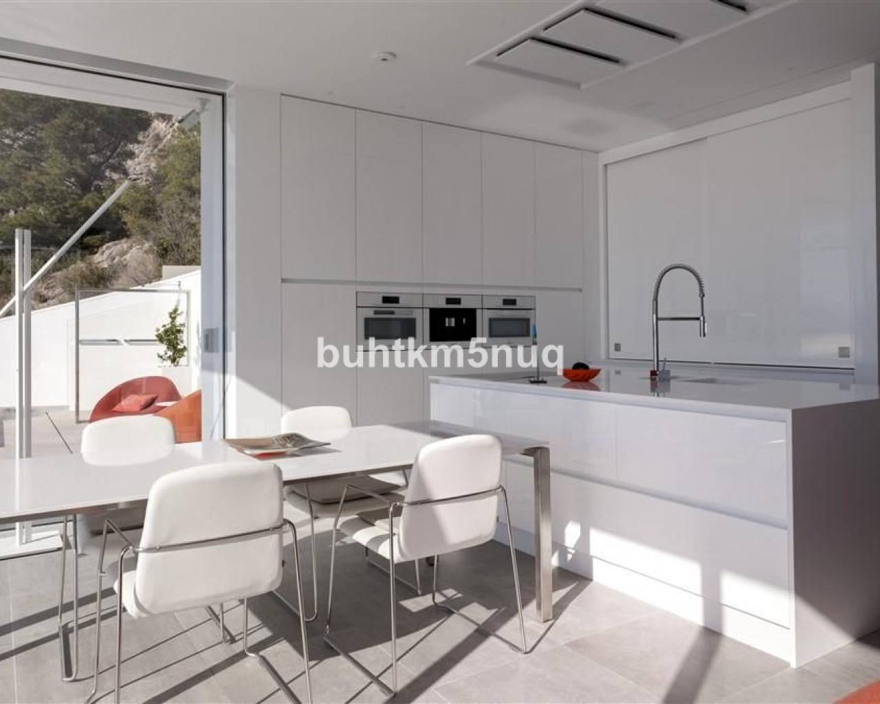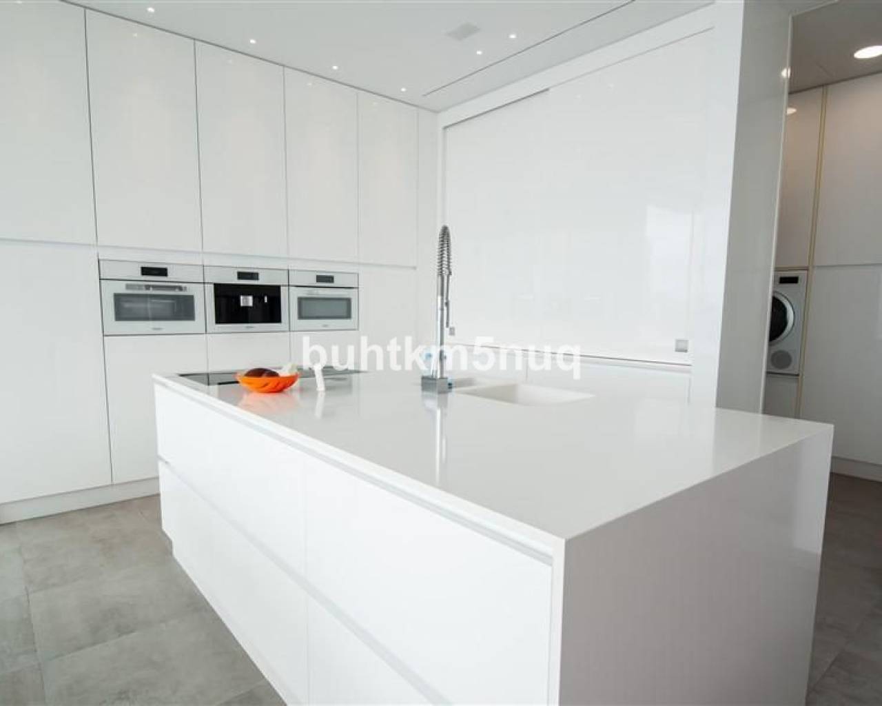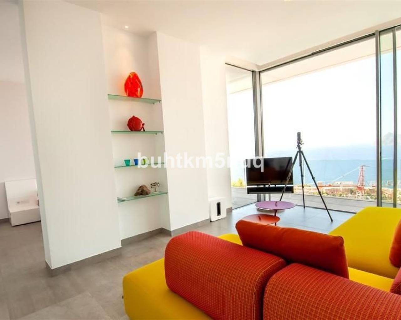 La propiedad se distribuye en tres elegantes niveles, conectados por una escalera con ascensor privado.~~En la planta superior se encuentra un amplio hall de entrada con acceso directo al espacioso garaje.~Un nivel más abajo hay dos amplios dormitorios con baños en suite y una sala de televisión independiente que puede adaptarse perfectamente como tercer dormitorio.~~En la planta principal, la villa le da la bienvenida con un salón-comedor abierto y luminoso, junto a una cocina de diseño totalmente equipada con isla central. Además, dispone de un práctico lavadero/trastero, un aseo de cortesía y una elegante zona de despacho — ideal para trabajar desde casa con vistas al mar.~~El salón da acceso a una gran terraza soleada con una piscina infinita climatizada de agua salada (12 x 3,5 m), que se funde literalmente con el horizonte del Mediterráneo.~Debajo de la piscina se encuentra un amplio sótano multifuncional — perfecto como gimnasio, zona wellness o bodega.~~Equipamiento de alto nivel:~Suelo radiante regulable por estancia~~Aire acondicionado integrado~~Sistema completo de domótica~~Alarma con videovigilancia~~Sistema centralizado de aspiración~~Materiales y acabados de alta calidad según los estándares más exigentes~~Esta moderna villa totalmente equipada no solo ofrece confort y estilo, sino también una ubicación excepcional y unas vistas panorámicas que le enamorarán cada día. Tiene la posibilidad de ampliar la construcción en 200 m2, dada la superficie del terreno.