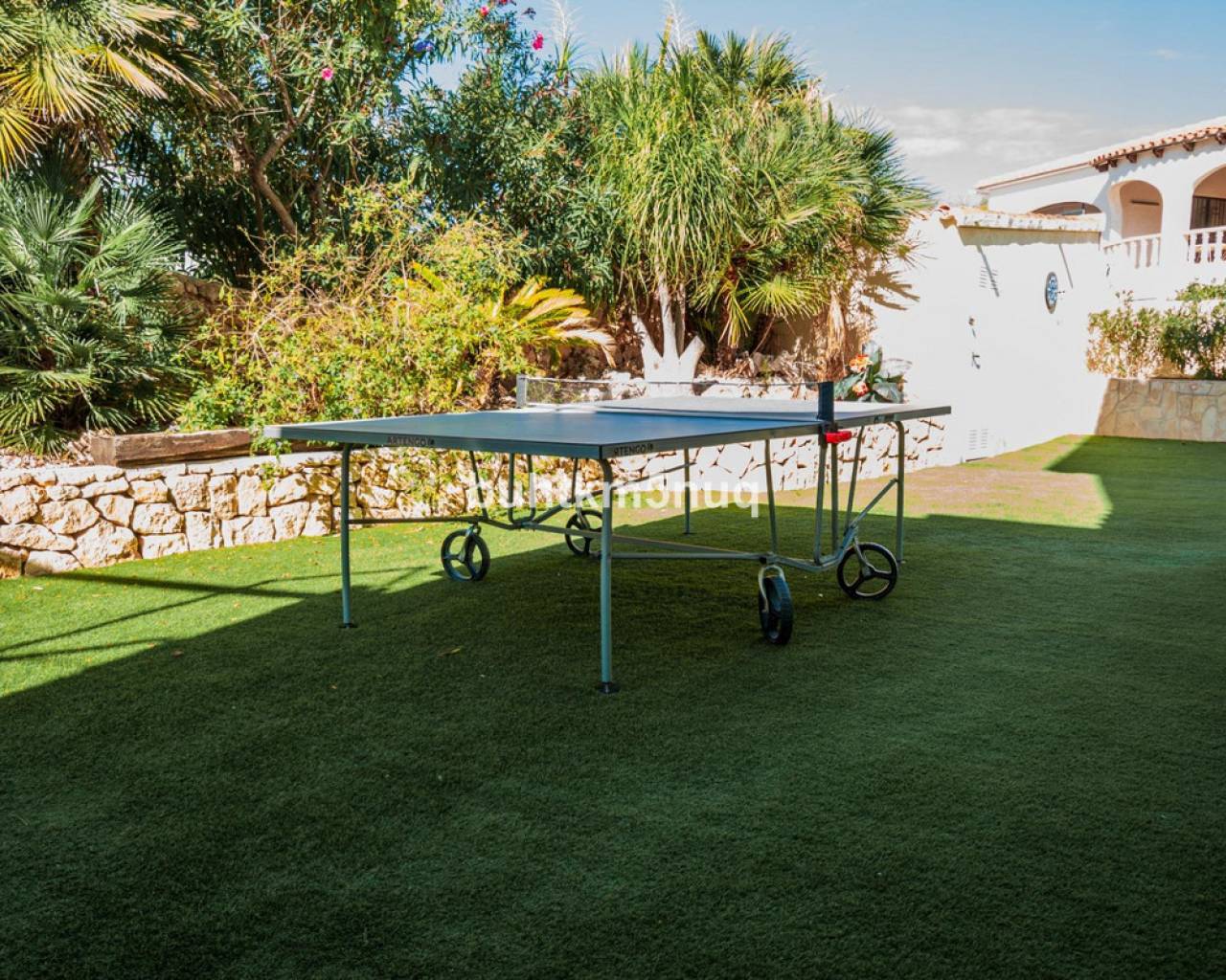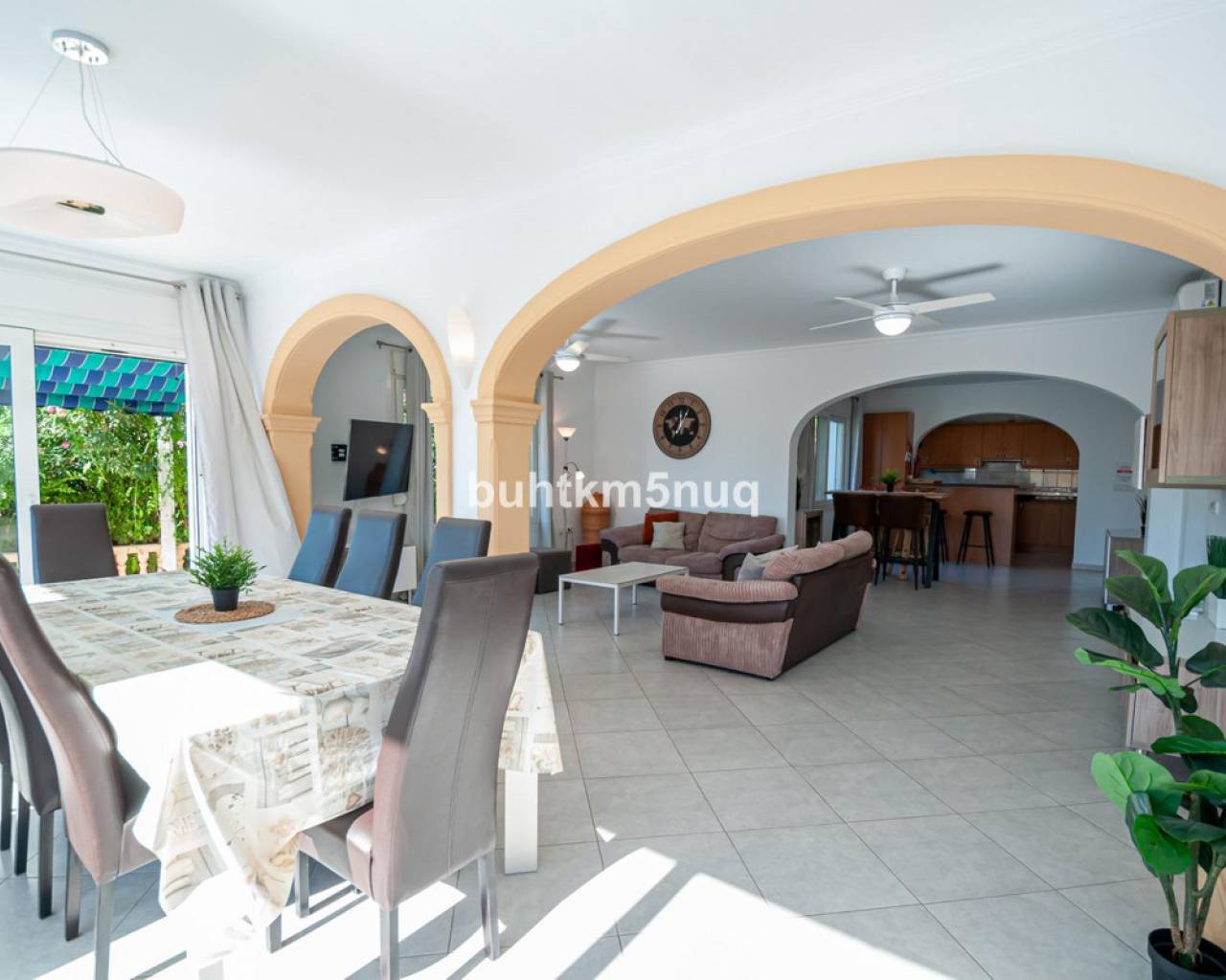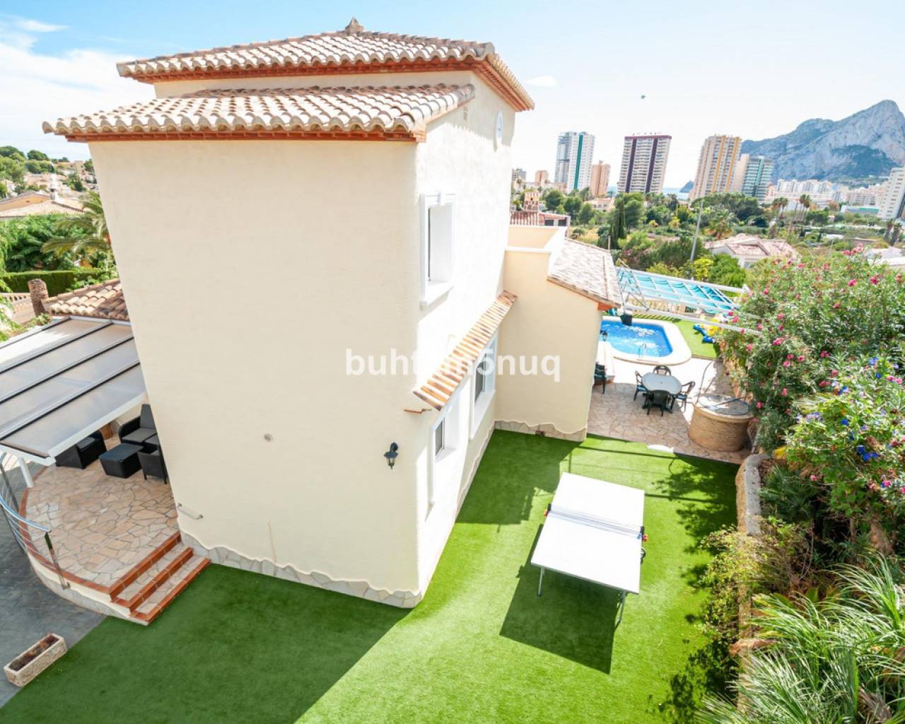 Descubre esta magnífica propiedad ubicada en una parcela de 785 m2, ideal para quienes buscan confort y vistas espectaculares. La vivienda cuenta con un amplio espacio interior de 115 m2 que se distribuye inteligentemente entre dos plantas. En la planta baja encontrarás un acogedor vestíbulo que da paso a un luminoso salón-comedor, así como una moderna cocina abierta diseñada para maximizar el espacio. Además, dispone de dos cómodas habitaciones y un elegante baño familiar, complementado por dos terrazas donde podrás disfrutar del aire libre.~~En la planta superior destaca el dormitorio principal equipado con su propio cuarto de baño ensuite e impresionante terraza privada; perfecto para relajarte mientras contemplas las impresionantes vistas hacia el mar Mediterráneo, el icónico Peñón de Ifach y las salinas cercanas.~~La propiedad también incluye comodidades excepcionales como climatización frío/calor centralizada, piscina privada (8x4 metros), amplias áreas ajardinadas ideales para actividades al aire libre o simplemente disfrutar del entorno natural. Con capacidad suficiente para varios vehículos gracias a sus garajes dobles más espacios adicionales en exteriores,~y además posee pozo privado lo cual garantiza suministro constante e independiente durante todo el año.