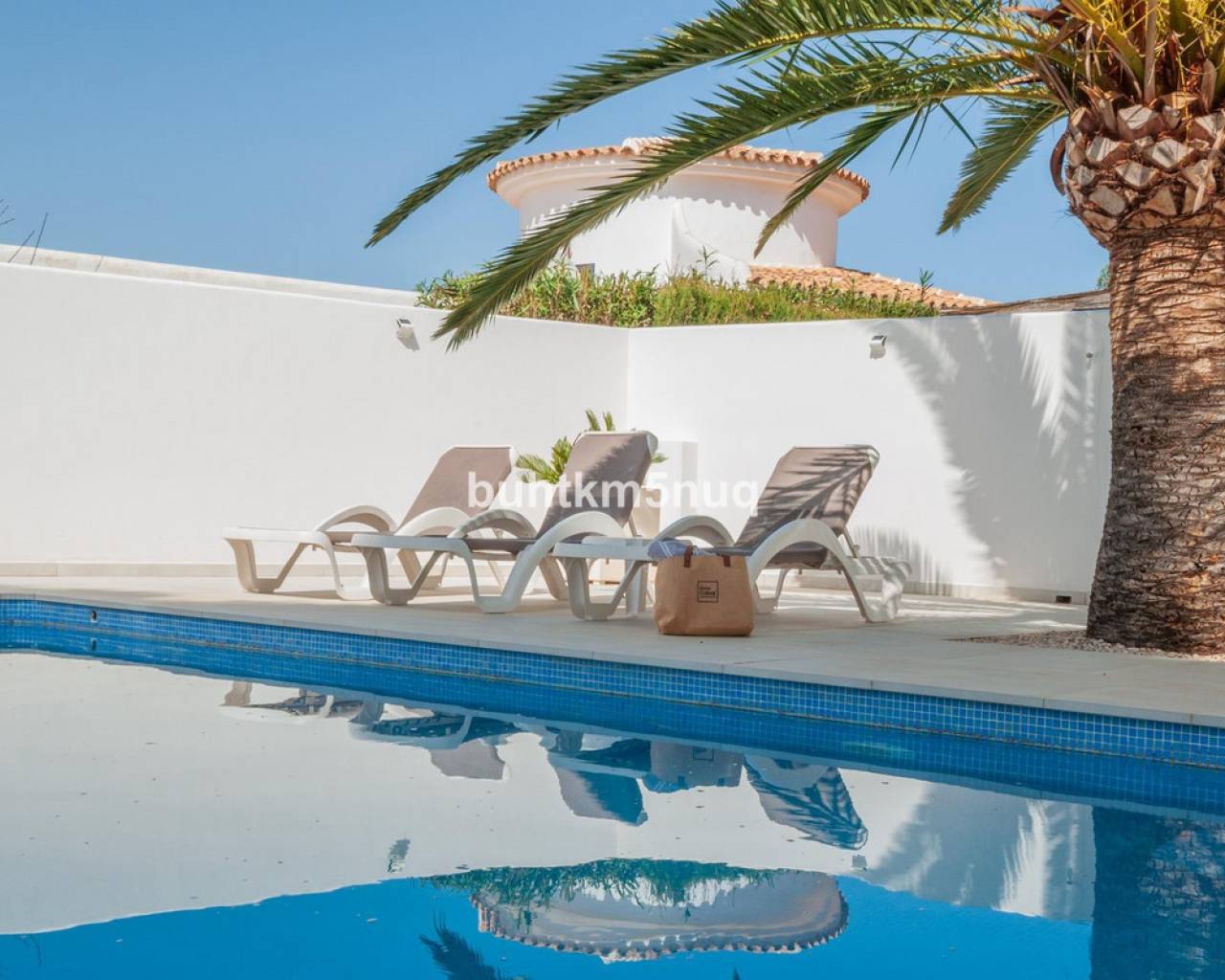Esta moderna villa renovada se encuentra en medio de la hermosa zona de Benissa-Moraira.~La villa ofrece tres amplios apartamentos, cada uno con dos dormitorios y una terraza privada. Estos espacios de vida modernos están completamente equipados con cocinas, acogedores salones con chimenea y elegantes baños.~~Todos los apartamentos están equipados con aire acondicionado y estacionamiento seguro con un cómodo estacionamiento cubierto. Disfrute del estilo de vida al aire libre con dos piscinas y una zona de barbacoa integrada, perfecta para entretener a los invitados.~~Rodeada de un jardín bellamente paisajístico, lleno de palmeras, limoneros y diversas plantas, esta encantadora propiedad ofrece un refugio sereno para posibles compradores.
