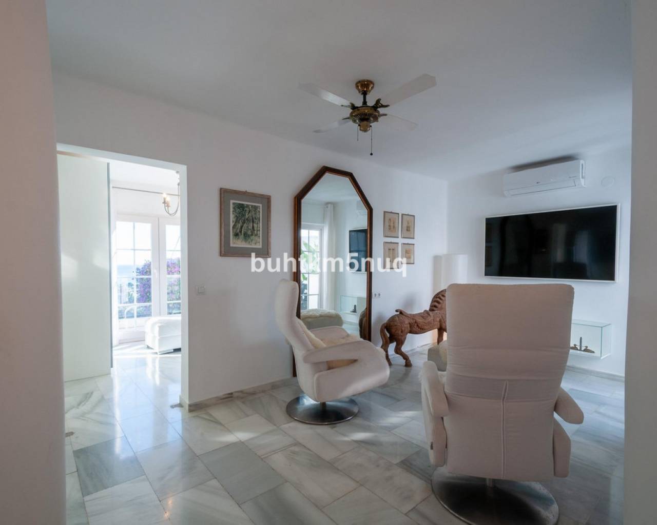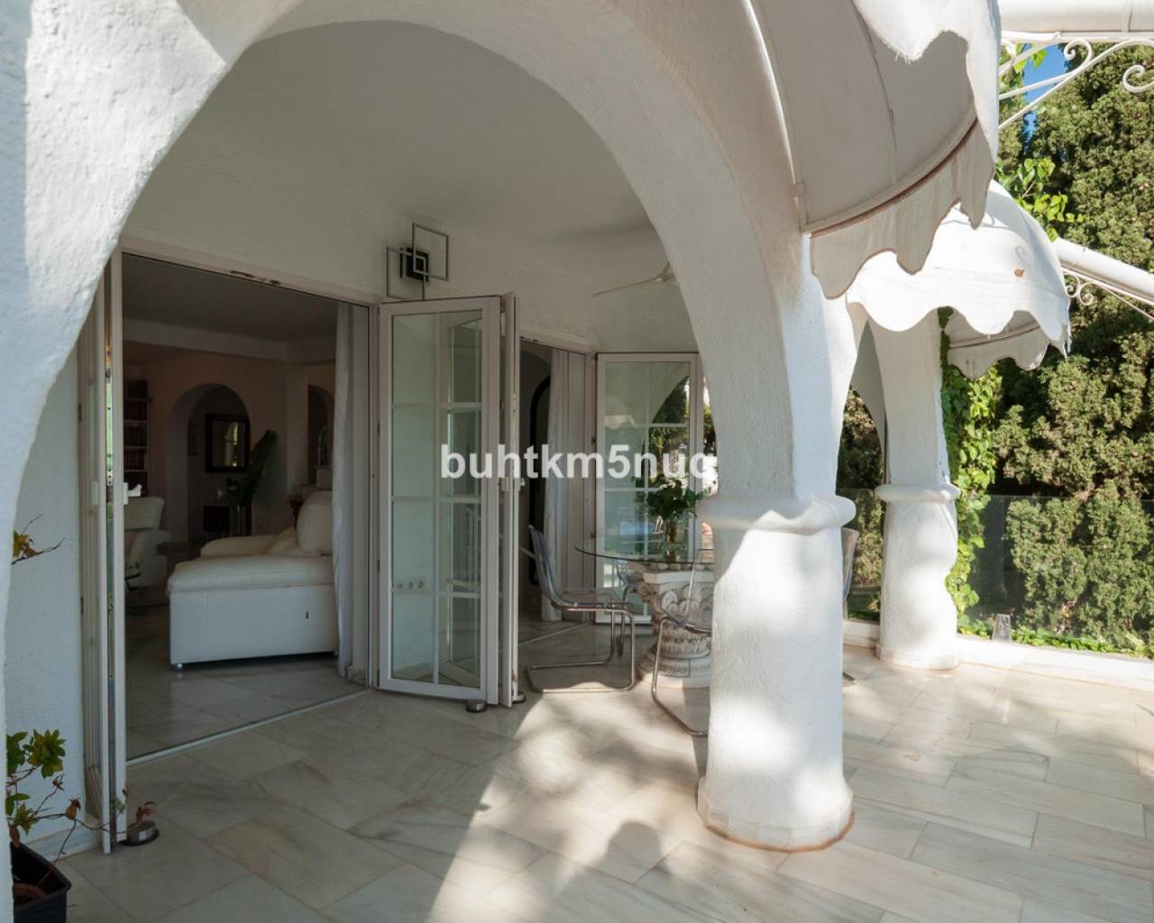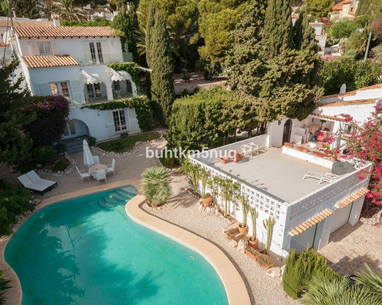 PROPIADAD EN EXCLUSIVA~Dominio único y encantador con dos viviendas completamente independientes, cada una con su propio acceso privado, aunque también es posible desplazarse fácilmente de una a otra a través del acogedor jardín. Una opción perfecta para vivienda doble, alojamiento de invitados o inversión, ofreciendo máxima privacidad y flexibilidad.~~La vivienda principal está lista para entrar a vivir y ofrece tres amplias plantas con un salón luminoso, cocina abierta, varias terrazas soleadas con impresionantes vistas al mar, un estudio independiente con baño y un jardín bellamente ajardinado de estilo francés. La piscina compartida, rodeada de árboles maduros, es accesible para ambas viviendas y constituye un encantador espacio de relajación. Extras: aire acondicionado, doble acristalamiento, amplios trasteros, pérgola y amplio espacio de aparcamiento.~~La segunda vivienda, con gran potencial de renovación, dispone de un amplio salón, dos dormitorios, un baño, aseo de invitados, cocina compacta y dos grandes terrazas bañadas por el sol con magníficas vistas al mar. En la planta inferior se encuentra un apartamento independiente, también para reformar, con un dormitorio, baño, cocina, salón, terraza cubierta y espacio adicional de almacenamiento.~~Ambas viviendas cuentan con su propio garaje cubierto, además de espacio adicional de aparcamiento en la entrada.~Una oportunidad excepcional en una ubicación exclusiva con vistas al mar, tranquilidad, amplitud y un potencial ilimitado.