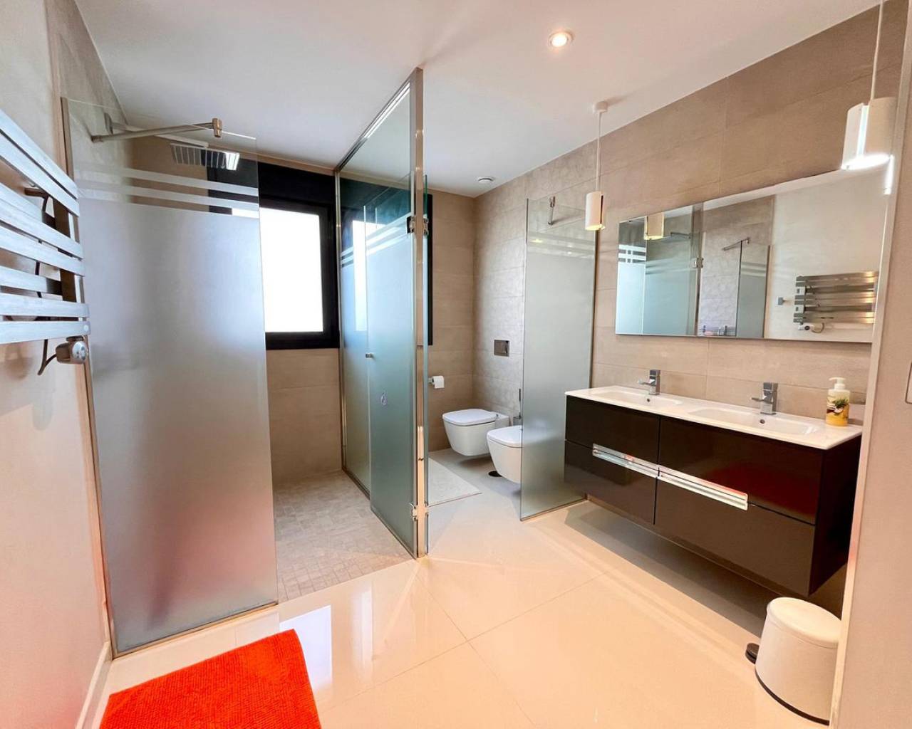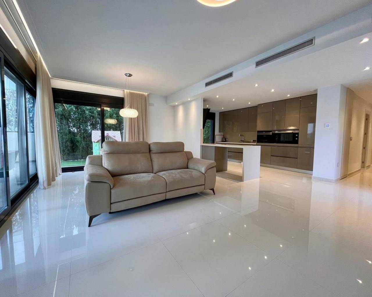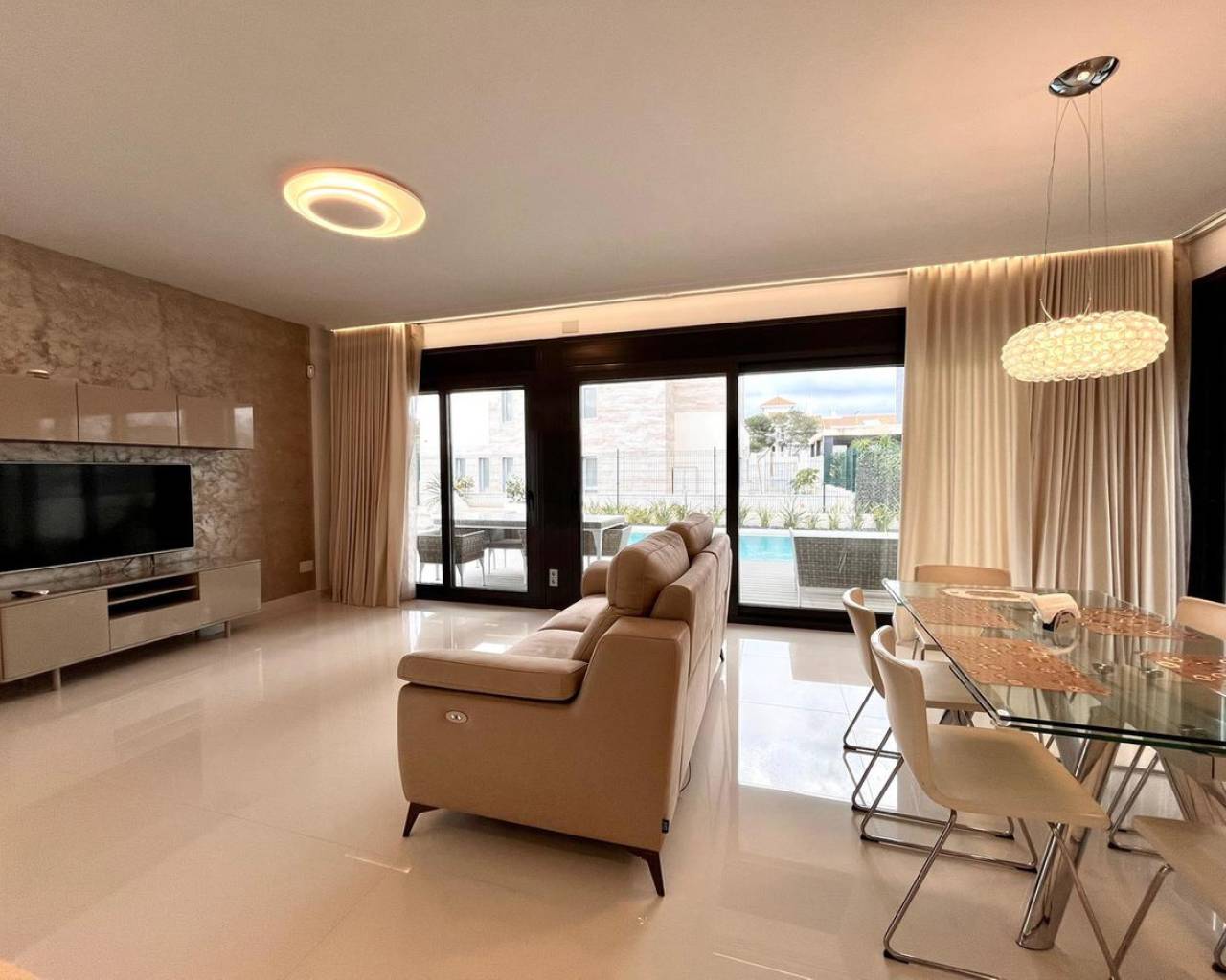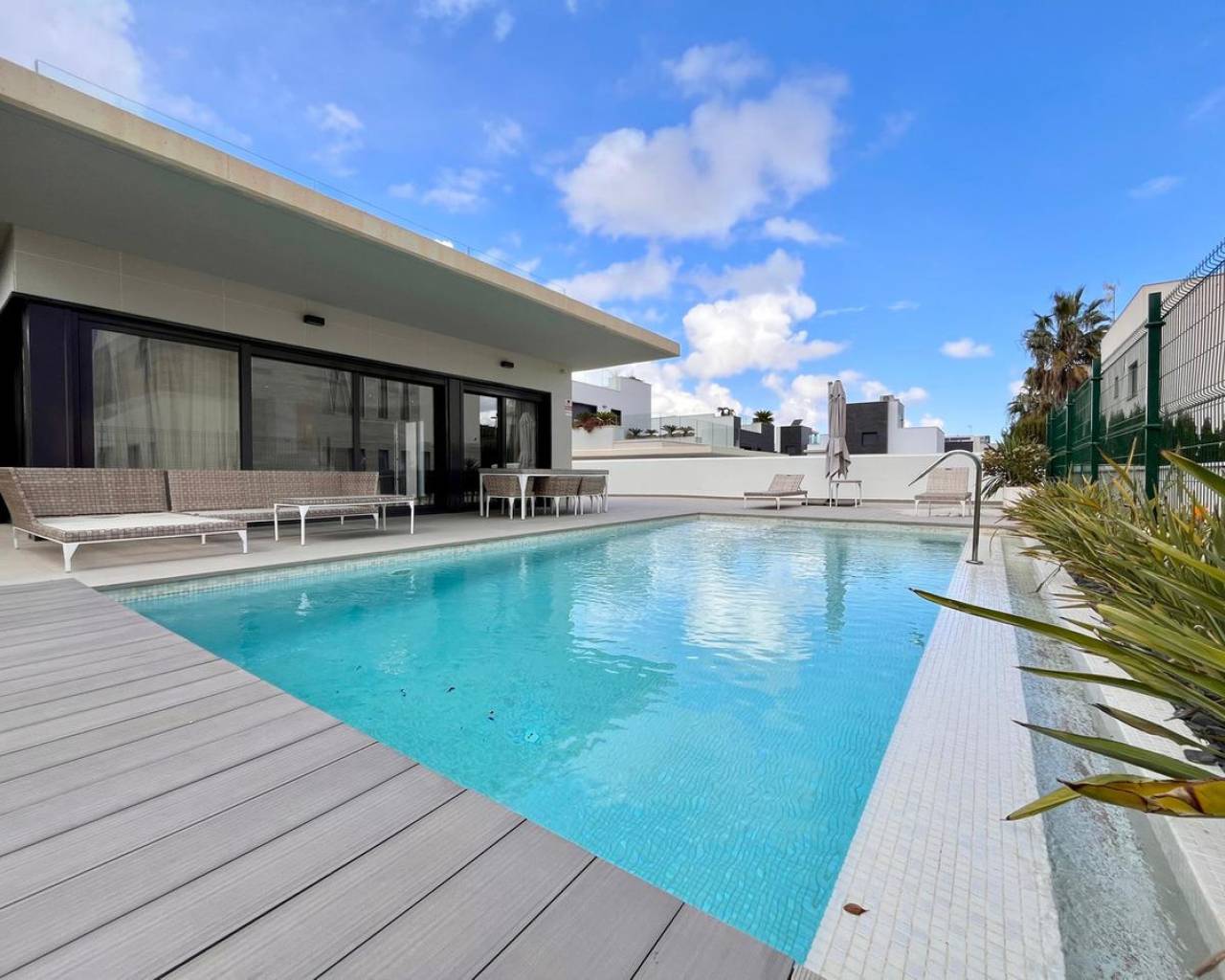 Descubre esta villa de lujo independiente en Dehesa de Campoamor, que cuenta con 4 amplios dormitorios y 3 elegantes baños. Diseñada para ofrecer el máximo confort y un estilo de vida moderno, esta impresionante casa dispone de persianas eléctricas, ventanas amplias y una cocina de concepto abierto completamente equipada. Todas las habitaciones están climatizadas para garantizar comodidad durante todo el año. Entre los puntos destacados se incluyen una piscina privada, dos grandes terrazas ideales para relajarse o recibir invitados, baños en suite y aparcamiento seguro para dos vehículos. Ubicada en una zona residencial tranquila y segura, esta villa se encuentra en una ubicación privilegiada a pocos minutos de Cabo Roig y del reconocido centro comercial Zenia Boulevard. En las cercanías encontrarás una gran variedad de bares y restaurantes, con opciones para todos los gustos. Un supermercado Consum y una farmacia están convenientemente situados en la entrada de la urbanización. Y lo mejor de todo: la playa está a solo 300 metros, lo que la convierte en el refugio costero perfecto. Con su diseño impecable, piscina privada y ubicación privilegiada, esta villa representa la esencia de la vida de lujo.