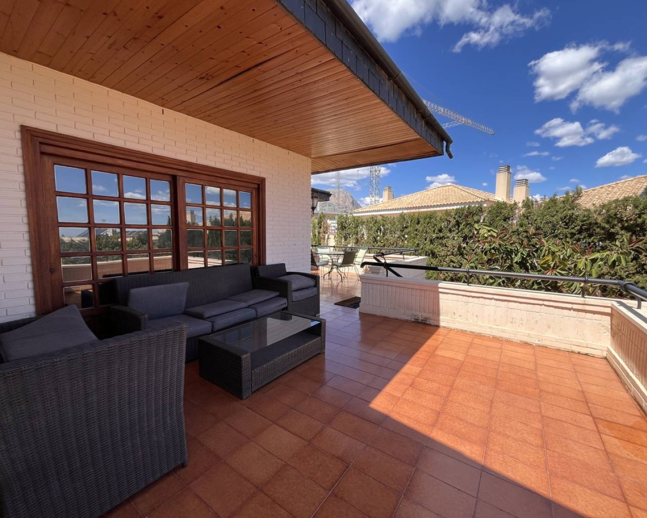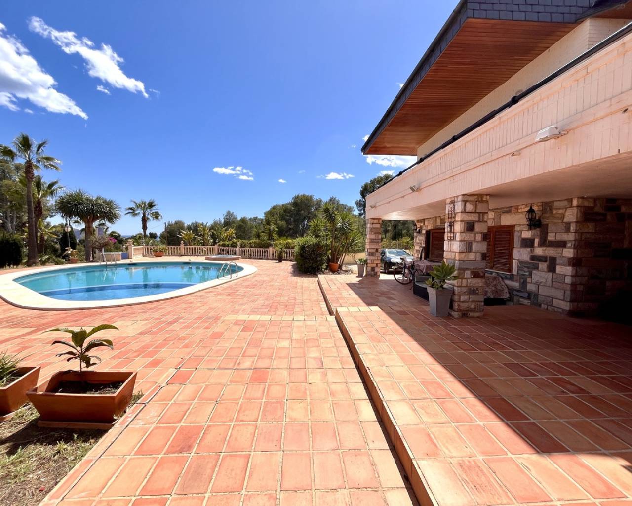 Esta preciosa villa se encuentra en una zona tranquila y privada de La Nucía, a solo cinco minutos en coche de Benidorm. Ofrece una combinación fantástica de amplitud, comodidad y un entorno espectacular. Ubicada en una generosa parcela de 3.500 m², la vivienda cuenta con 600 m² construidos, ofreciendo un amplio espacio tanto interior como exterior para disfrutar del estilo de vida mediterráneo. La villa dispone de cuatro amplios dormitorios dobles, cada uno con su propio baño en suite, además de un baño adicional y un aseo para invitados. El salón, de 100 m², está lleno de luz natural y se conecta con una cocina y comedor de estilo abierto, perfecto tanto para el día a día como para recibir invitados. Desde la terraza se pueden contemplar vistas panorámicas que se extienden desde las montañas hasta el mar. Se puede ver claramente Benidorm y Altea mientras se disfruta de la tranquilidad del entorno. El jardín, perfectamente cuidado, incluye una gran piscina privada, terrazas soleadas y mucho espacio abierto para relajarse o entretenerse. En la parte trasera de la propiedad hay espacio suficiente para construir una pista privada de pádel o tenis, lo que aporta aún más valor y posibilidades de ocio a la vivienda. Todo lo que necesitas está a poca distancia a pie: supermercados, el colegio británico Elian's, bancos, farmacia, tiendas locales y una amplia oferta de bares y restaurantes. Atracciones principales como Terra Mítica, Terra Natura y varios campos de golf se encuentran a solo unos minutos en coche. También están muy cerca localidades como Altea, Albir, Polop y Alfaz del Pi. Una villa tranquila y privada, con vistas impresionantes y el potencial de crear tu propio espacio deportivo y de ocio, en pleno corazón de la Costa Blanca.