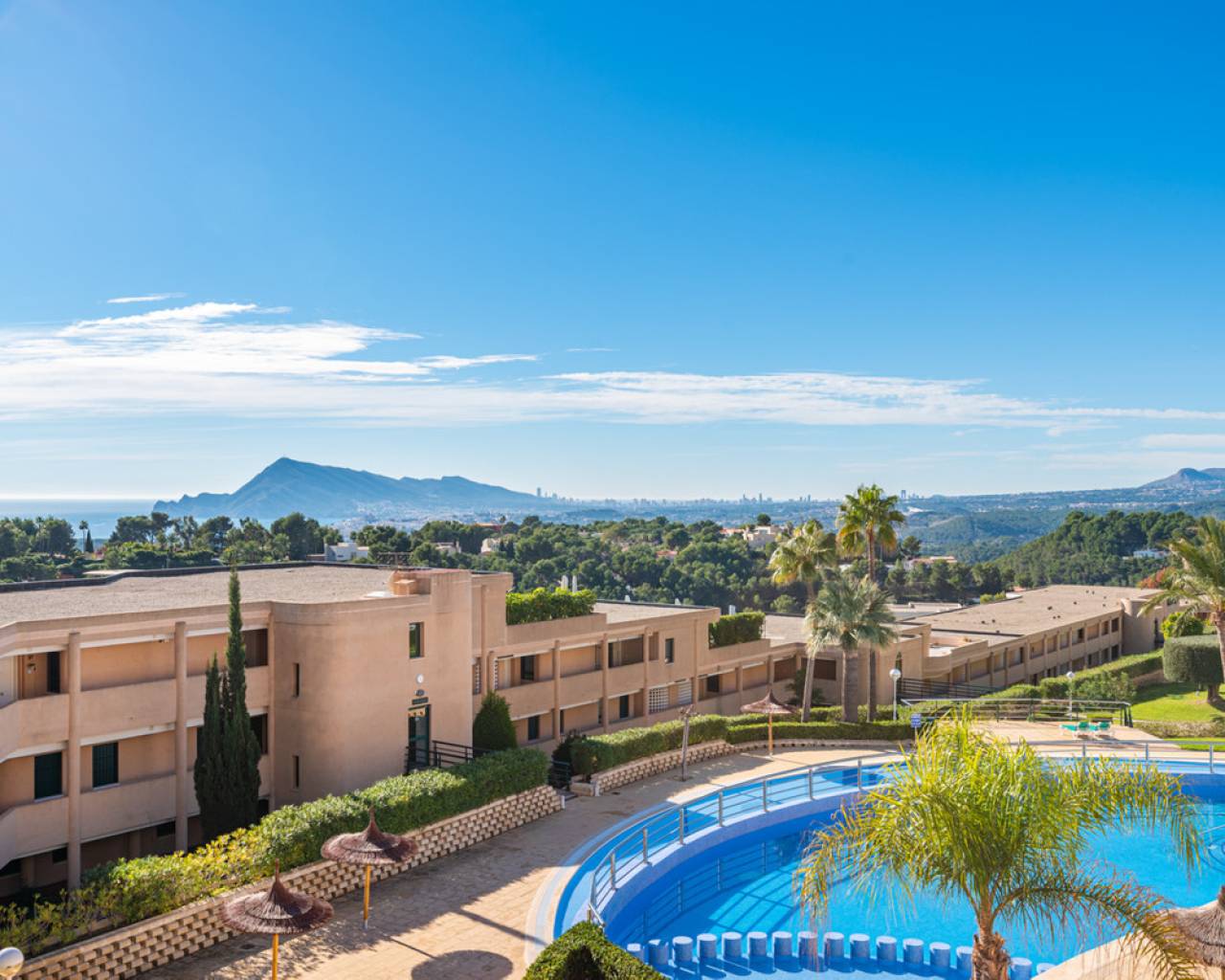 Este apartamento en la conocida urbanización Altea la Nova se encuentra a tan sólo 1 km del prestigioso Altea Club de Golf y a 2 km de Altea la Vella, donde dispone de todos los servicios, y a 2 km del Mar. La urbanización cuenta con amplias zonas verdes y espectaculares piscinas. Los 91m2 del apartamento se distribuyen en hall de entrada, 2 dormitorios, 2 cuartos de baño (uno en suite), cocina independiente con lavadero anexo y un luminoso salón comedor. El dormitorio principal y el salón comedor tienen acceso a la terraza soleada de 27m2 con increíbles vistas a las Sierras y al mar. Lugar perfecto para disfrutar todo el año del privilegiado clima de la Costa Blanca. La propiedad está equipada con aire acondicionado (frío/calor) y una plaza de garaje con trastero.