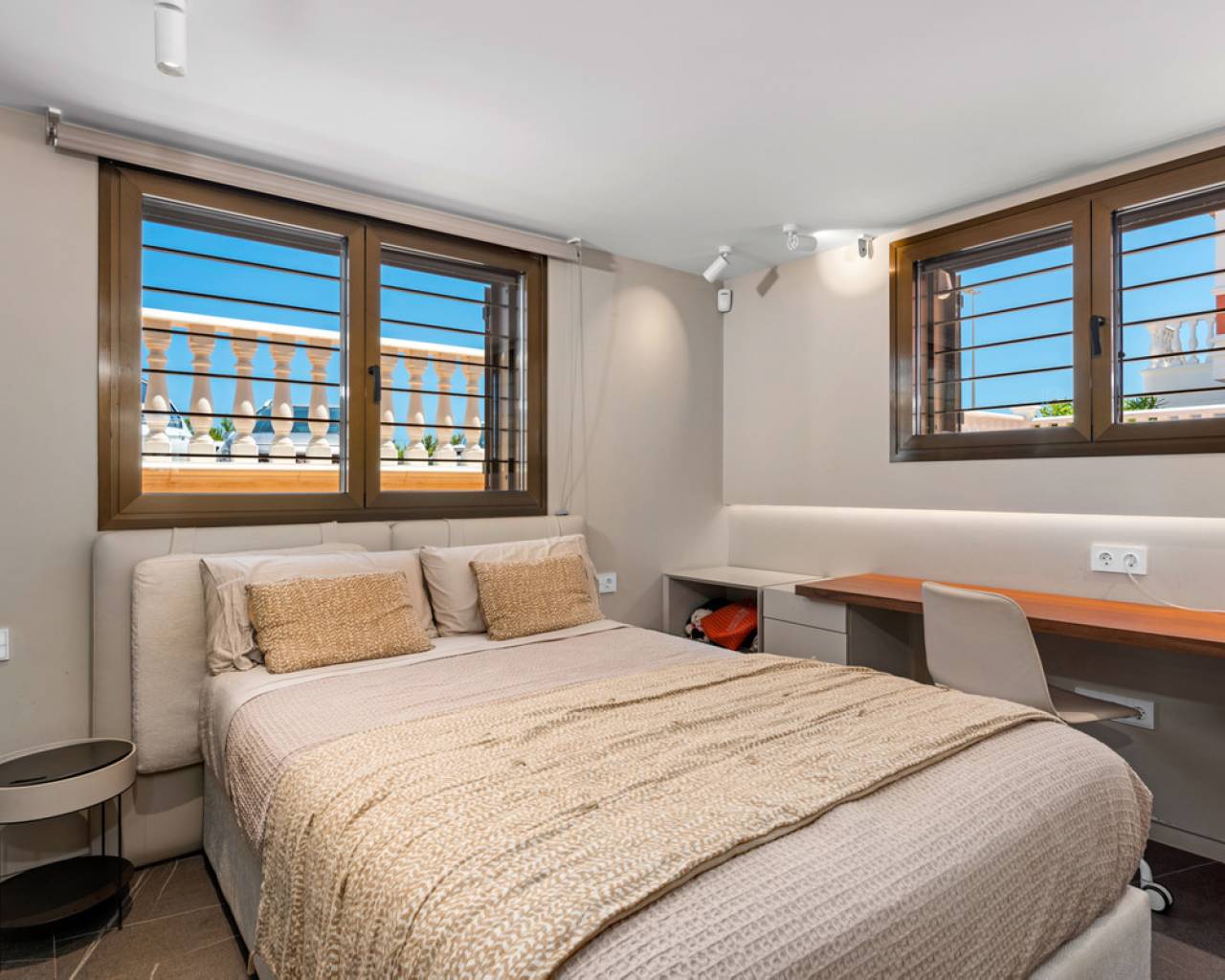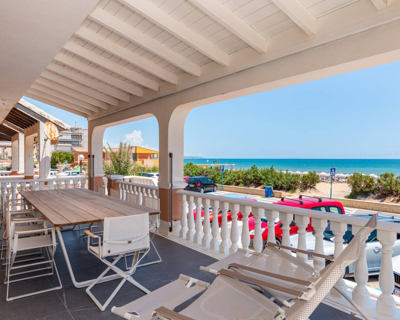 Increíble adosado de lujo frente al Mar Mediterráneo Esta propiedad, recientemente reformada en 2021, cuenta con unas vistas panorámicas a unas de las playas más bonitas de la Costa Blanca, la Playa de la Roqueta en Guardamar. Del Segura. Se trata de una playa abierta, que linda con la playa Centro por el norte y con la playa del Moncayo por el sur.La vivienda forma parte de un complejo residencial (Residencial Benamor) y goza de una perfecta orientación que permite aprovechar el clima mediterráneo a la perfección. Los acabados de la vivienda están escogidos con suma delicadeza, con un equipamiento de marcas de prestigio con que dota a la casa de una sensación de calidad y diseño.La propiedad se vende totalmente amueblada, incluidos los electrodomésticos. Todo el mobiliario y la decoración de la vivienda es de fabricantes y artistas de prestigio internacional. En la planta semisótano de la propiedad encontramos un amplio salón, gimnasio, 3 dormitorios, 2 baños y un lavadero con mucho espacio par almacenamiento. En la planta principal encontramos un salón comedor a dos alturas, que goza de unas amplias vistas al mar. Además, en esta planta encontramos una cocina americana de diseño italiano totalmente acabada y dotada de equipamiento de las mejores marcas. La planta primera de la vivienda cuenta con una habitación principal, con baño y balcón. También 2 dormitorios más y 1 baño. La vivienda cuenta también con una increíble terraza cubierta con vistas al mar y un patio trasero con orientación oeste y una superficie de 42m2.