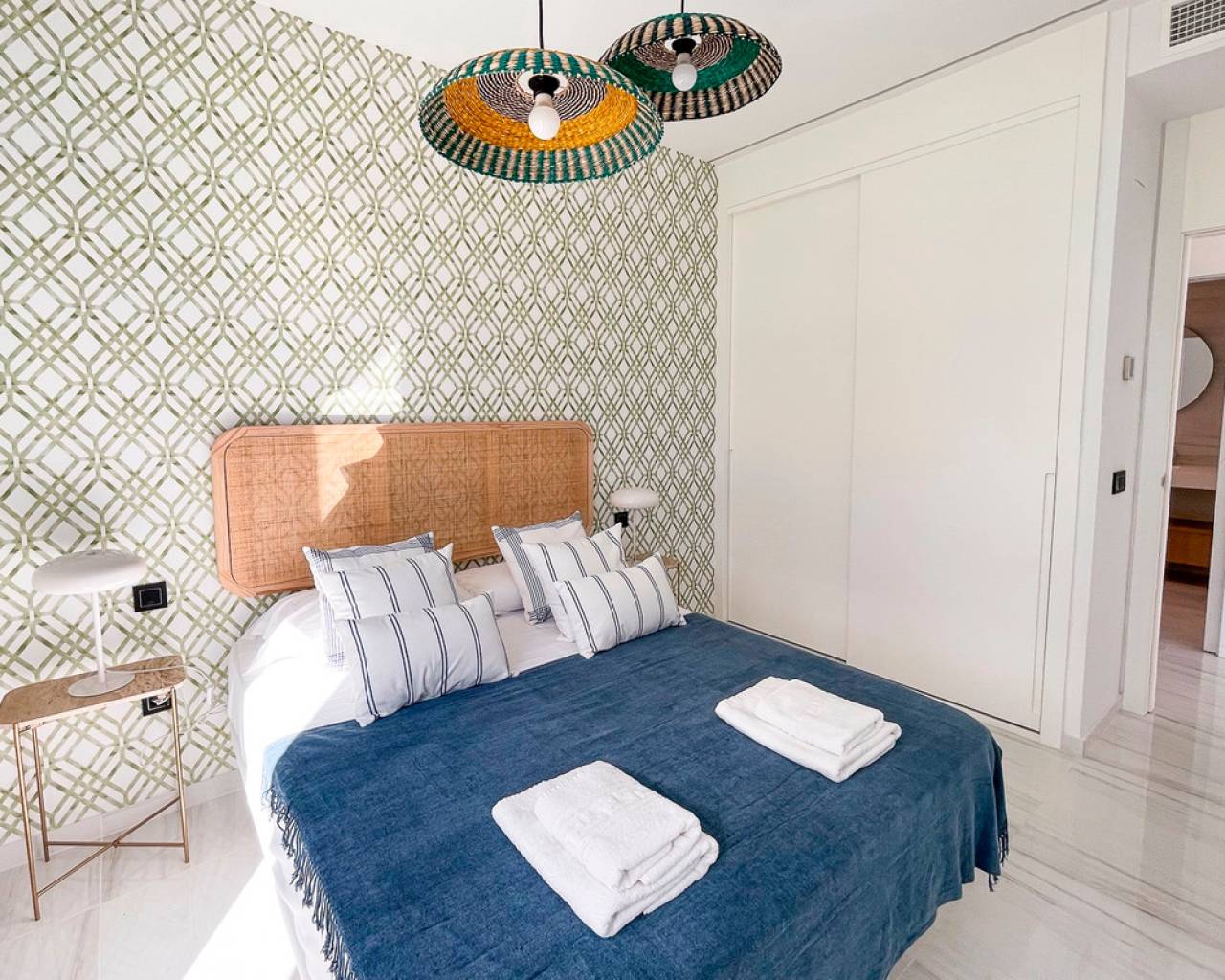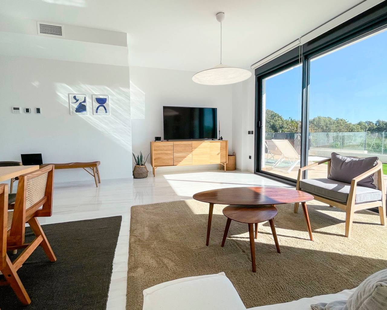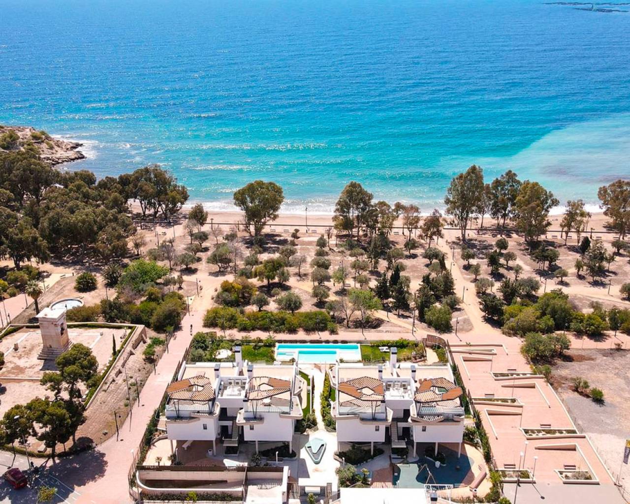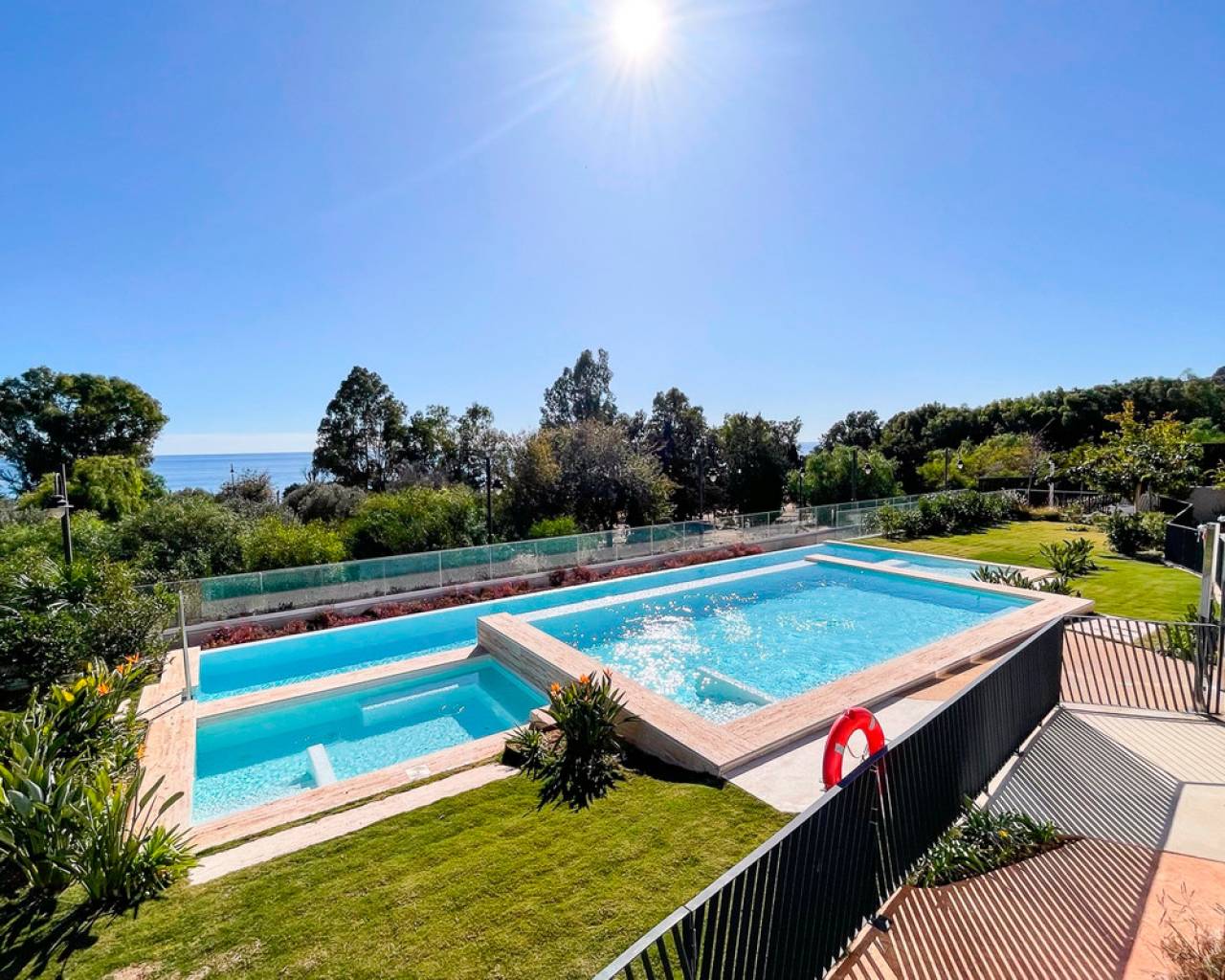 Este apartamento de 124m², construido en 2022, está ubicado en una comunidad cerrada en primera línea de playa, ofreciendo un estilo de vida tranquilo y confortable en la Costa Blanca. La propiedad cuenta con 3 amplios dormitorios y 3 baños completos, diseñados con materiales de alta calidad y un acabado moderno. Una terraza de 48m² ofrece vistas espectaculares al mar y a las zonas verdes del complejo, creando un espacio ideal para el descanso o comidas al aire libre. El apartamento está completamente amueblado y equipado para la comodidad, incluyendo aire acondicionado, ventiladores de techo y armarios empotrados. La distribución es funcional, asegurando mucha luz natural y un uso eficiente del espacio. La comunidad ofrece excelentes instalaciones, como una piscina comunitaria de diseño, jardines tropicales y zonas verdes. Además, la propiedad incluye una piscina privada y un jardín privado para mayor exclusividad. Para mayor comodidad, el apartamento cuenta con un garaje privado doble y un trastero. La seguridad está garantizada con un sistema de alarma y acceso controlado a la comunidad. Con una orientación este, esta vivienda ofrece impresionantes vistas del amanecer sobre el mar y un entorno sereno para disfrutar de la vida en la costa. Ubicado en Villajoyosa, un destino en crecimiento en la Costa Blanca, este apartamento es una excelente opción para quienes buscan un hogar elegante y privado junto al mar.