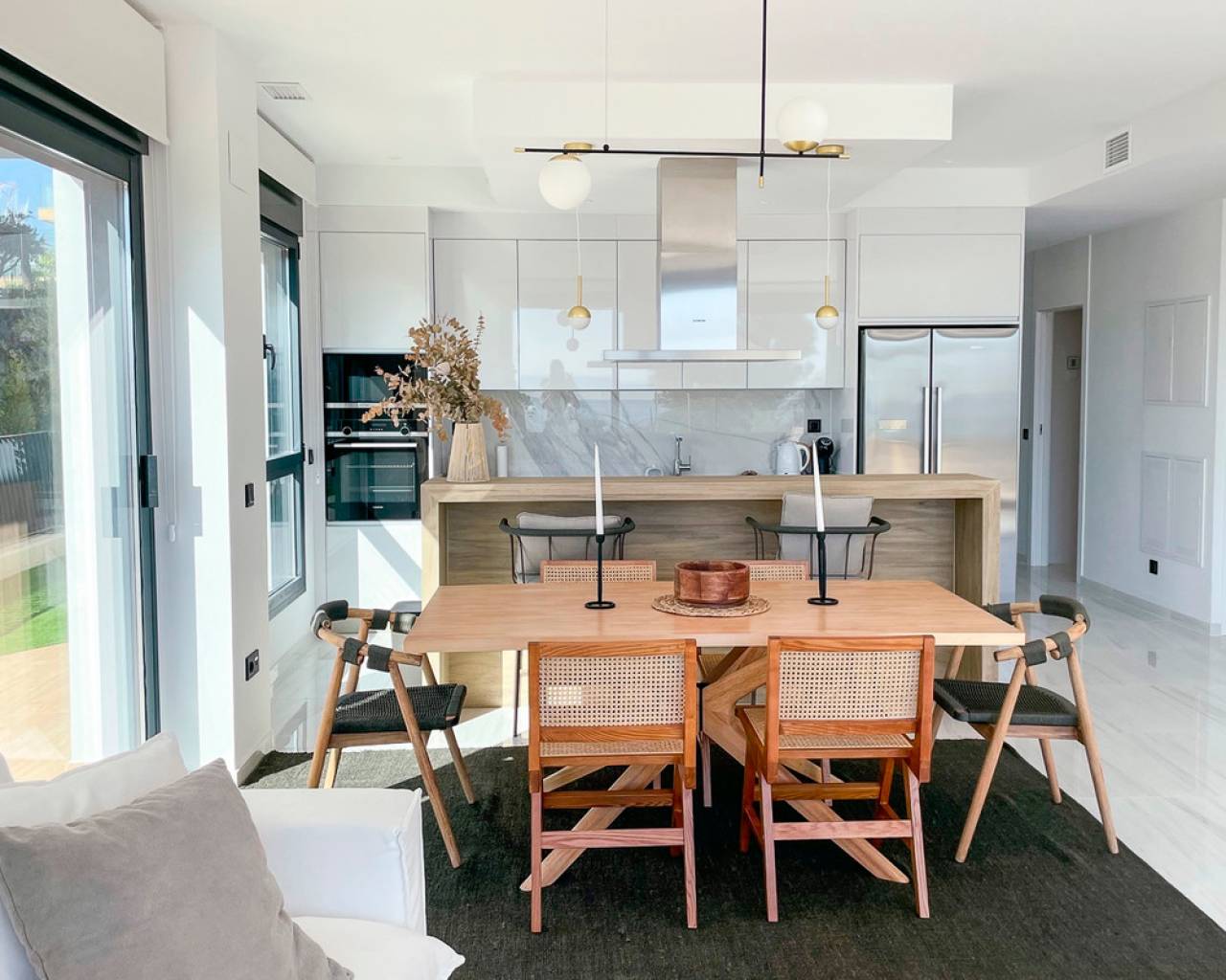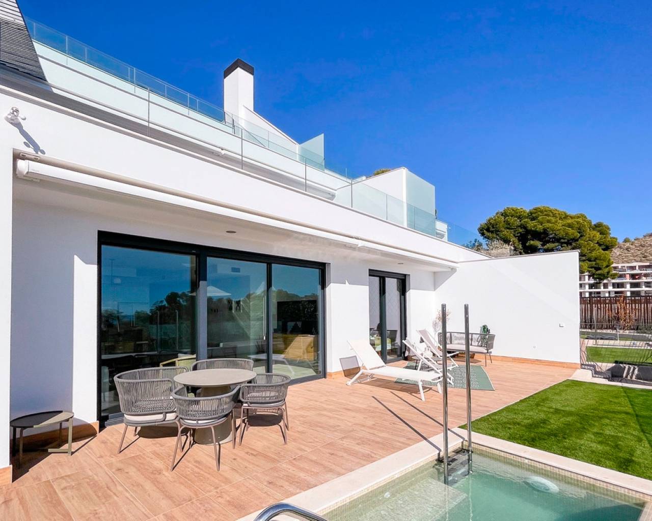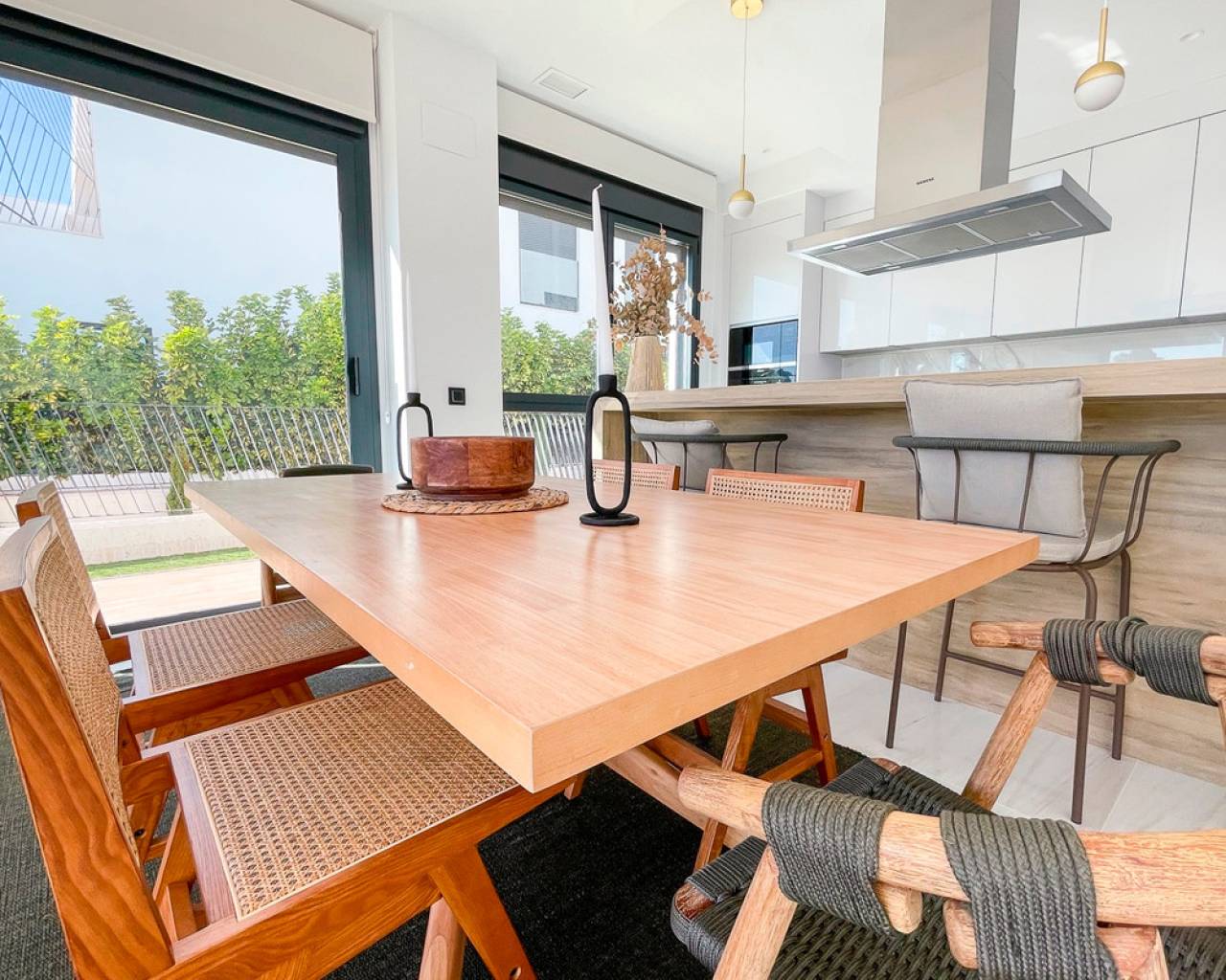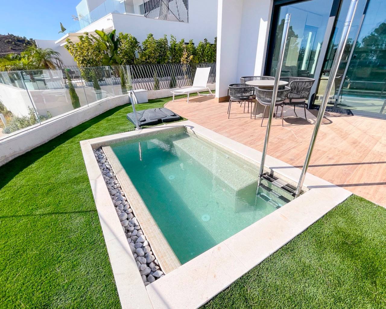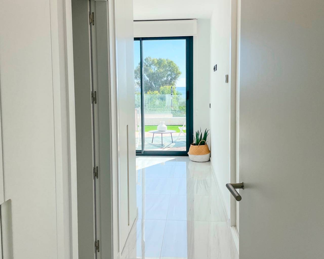 Este apartamento de 124m², construido en 2022, está ubicado en una comunidad cerrada en primera línea de playa, ofreciendo un estilo de vida tranquilo y confortable en la Costa Blanca. La propiedad cuenta con 3 amplios dormitorios y 3 baños completos, diseñados con materiales de alta calidad y un acabado moderno. Una terraza de 48m² ofrece vistas espectaculares al mar y a las zonas verdes del complejo, creando un espacio ideal para el descanso o comidas al aire libre. El apartamento está completamente amueblado y equipado para la comodidad, incluyendo aire acondicionado, ventiladores de techo y armarios empotrados. La distribución es funcional, asegurando mucha luz natural y un uso eficiente del espacio. La comunidad ofrece excelentes instalaciones, como una piscina comunitaria de diseño, jardines tropicales y zonas verdes. Además, la propiedad incluye una piscina privada y un jardín privado para mayor exclusividad. Para mayor comodidad, el apartamento cuenta con un garaje privado doble y un trastero. La seguridad está garantizada con un sistema de alarma y acceso controlado a la comunidad. Con una orientación este, esta vivienda ofrece impresionantes vistas del amanecer sobre el mar y un entorno sereno para disfrutar de la vida en la costa. Ubicado en Villajoyosa, un destino en crecimiento en la Costa Blanca, este apartamento es una excelente opción para quienes buscan un hogar elegante y privado junto al mar.