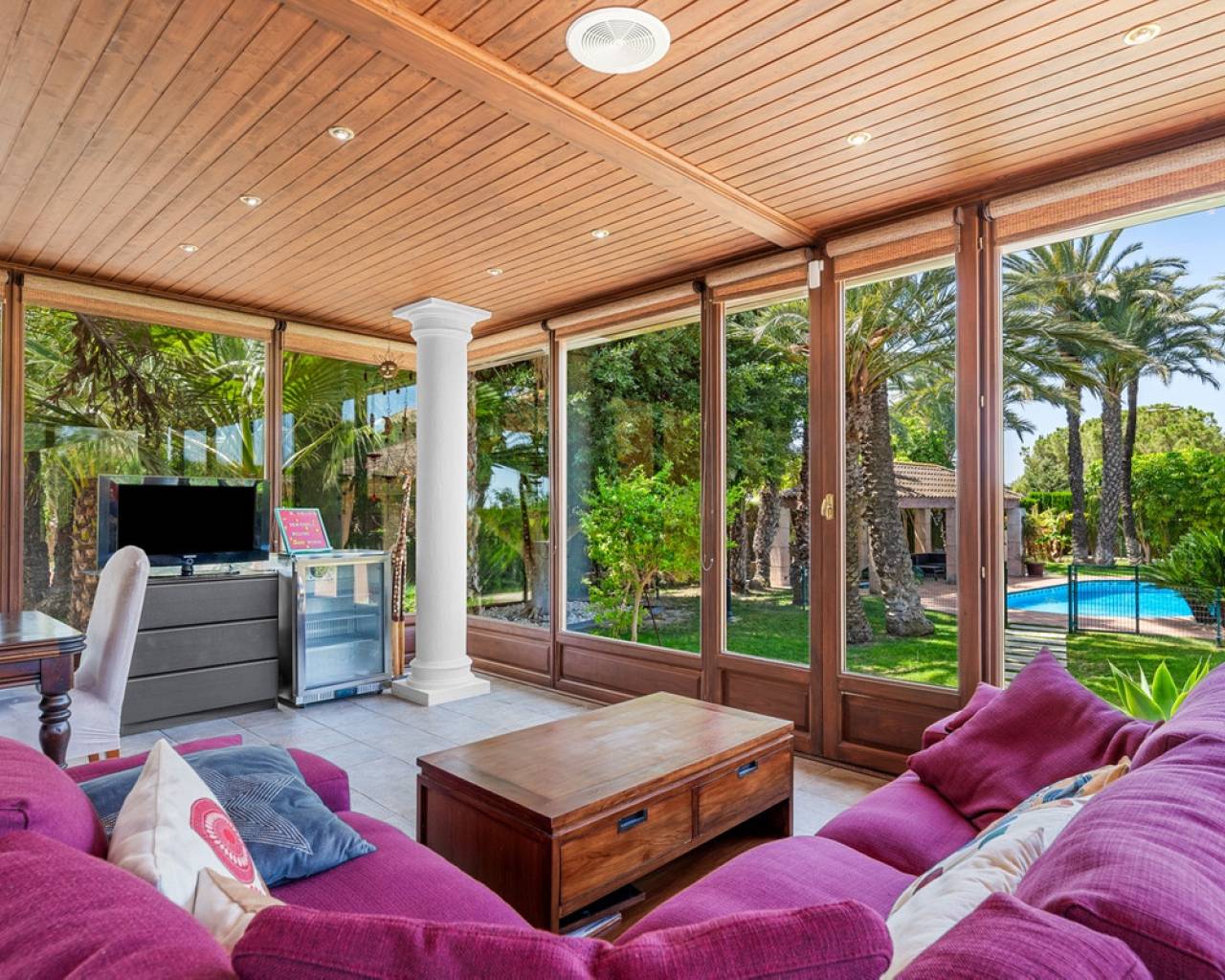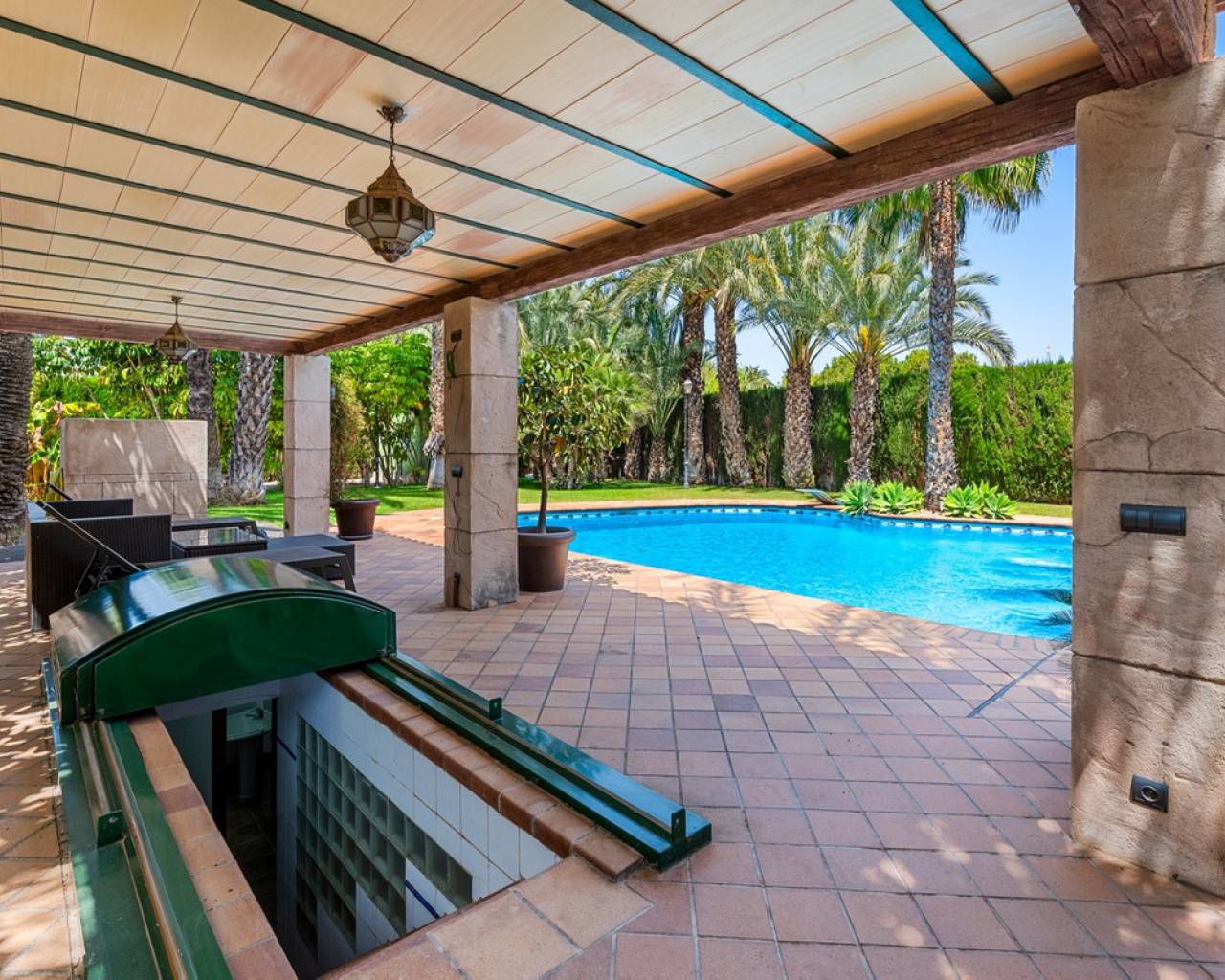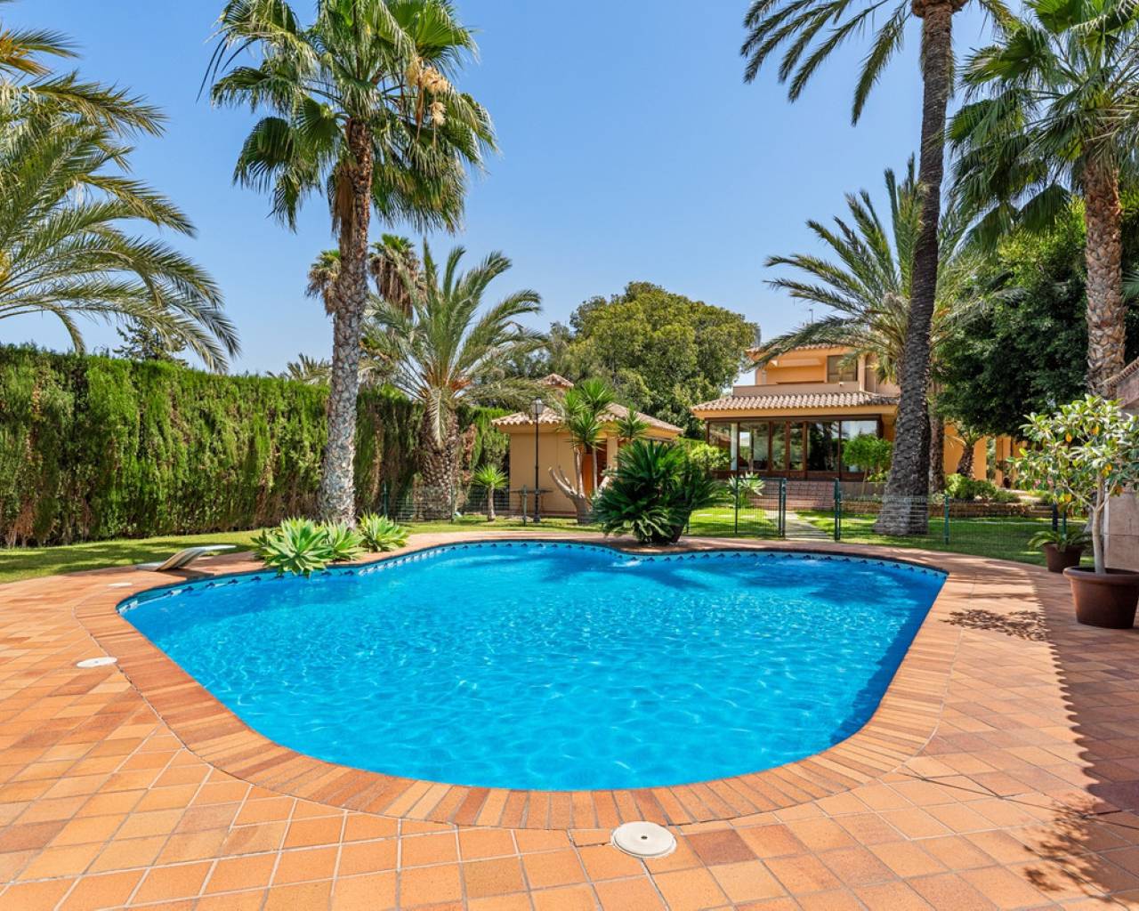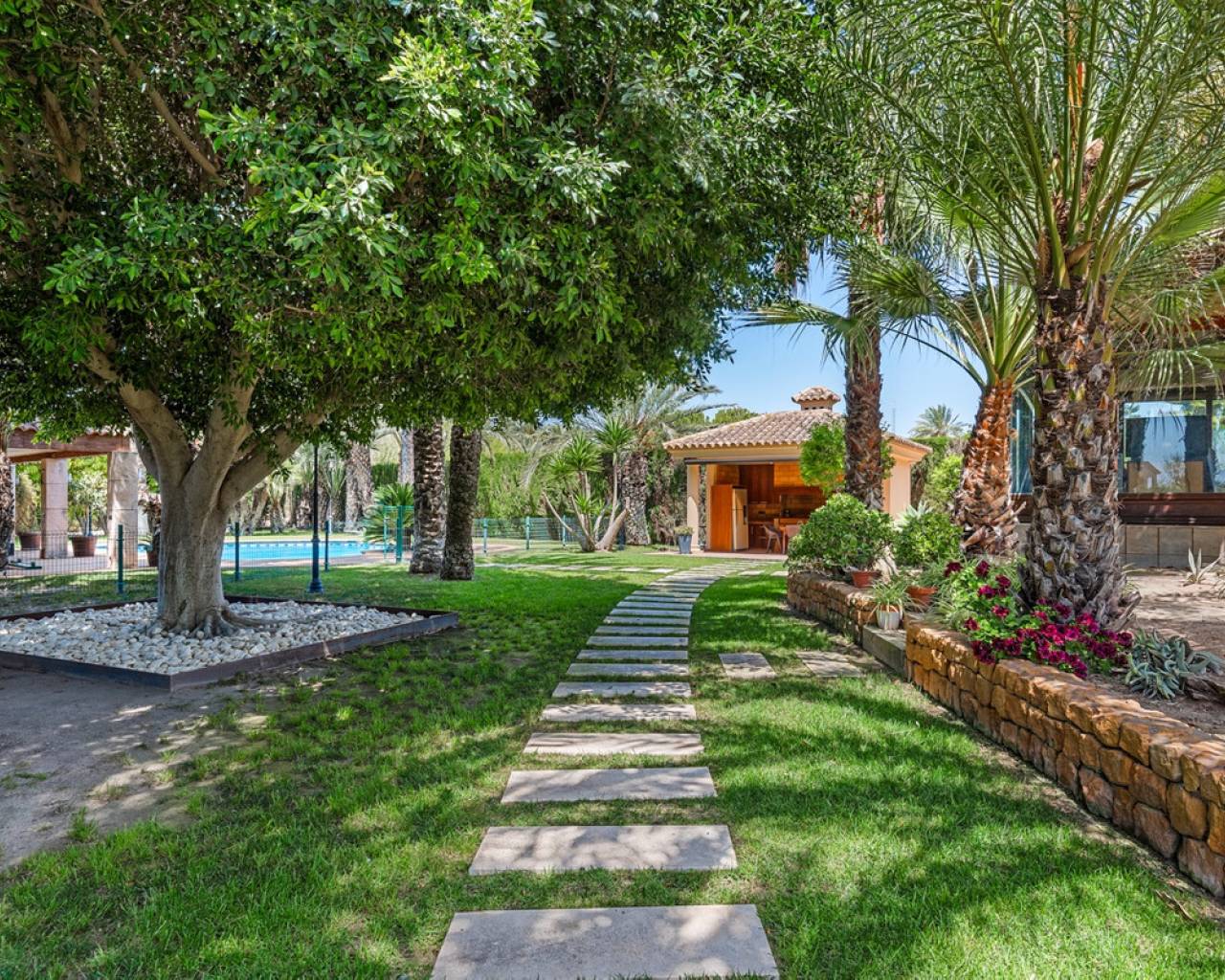 Bienvenido a esta preciosa propiedad ubicada en un popular barrio de Elche. La finca se asienta sobre una amplia parcela de 4.750 m². La mayor parte de la casa ha sido completamente reformada en 2019. La casa consta de dos plantas. En la planta principal encontrará un amplio recibidor, salón-comedor, cocina recién reformada, lavadero, un dormitorio, un baño y una sala de estar/terraza acristalada con maravillosas vistas al jardín y a la piscina. En la segunda planta encontrará cuatro dormitorios dobles y dos baños, y un total de tres balcones. Desde el dormitorio principal también se accede a un amplio vestidor. El sótano es muy espacioso y tiene mucho potencial. Actualmente se utiliza como gimnasio/sala infantil. En esta planta también se encuentra la sala de electricidad. La propiedad cuenta con amplias zonas exteriores bien cuidadas. Antes de entrar a la propiedad, encontrará un amplio porche con mucha sombra para los cálidos días de verano. El precioso jardín también alberga una cocina exterior totalmente equipada. Junto a la piscina hay un sótano muy práctico que consta de dos vestidores, trastero, un baño y una ducha. Este sótano está cubierto y se accede a él por escaleras. En la parcela también hay un garaje doble con puerta automática. Para más información o para programar una visita, ¡contáctenos!