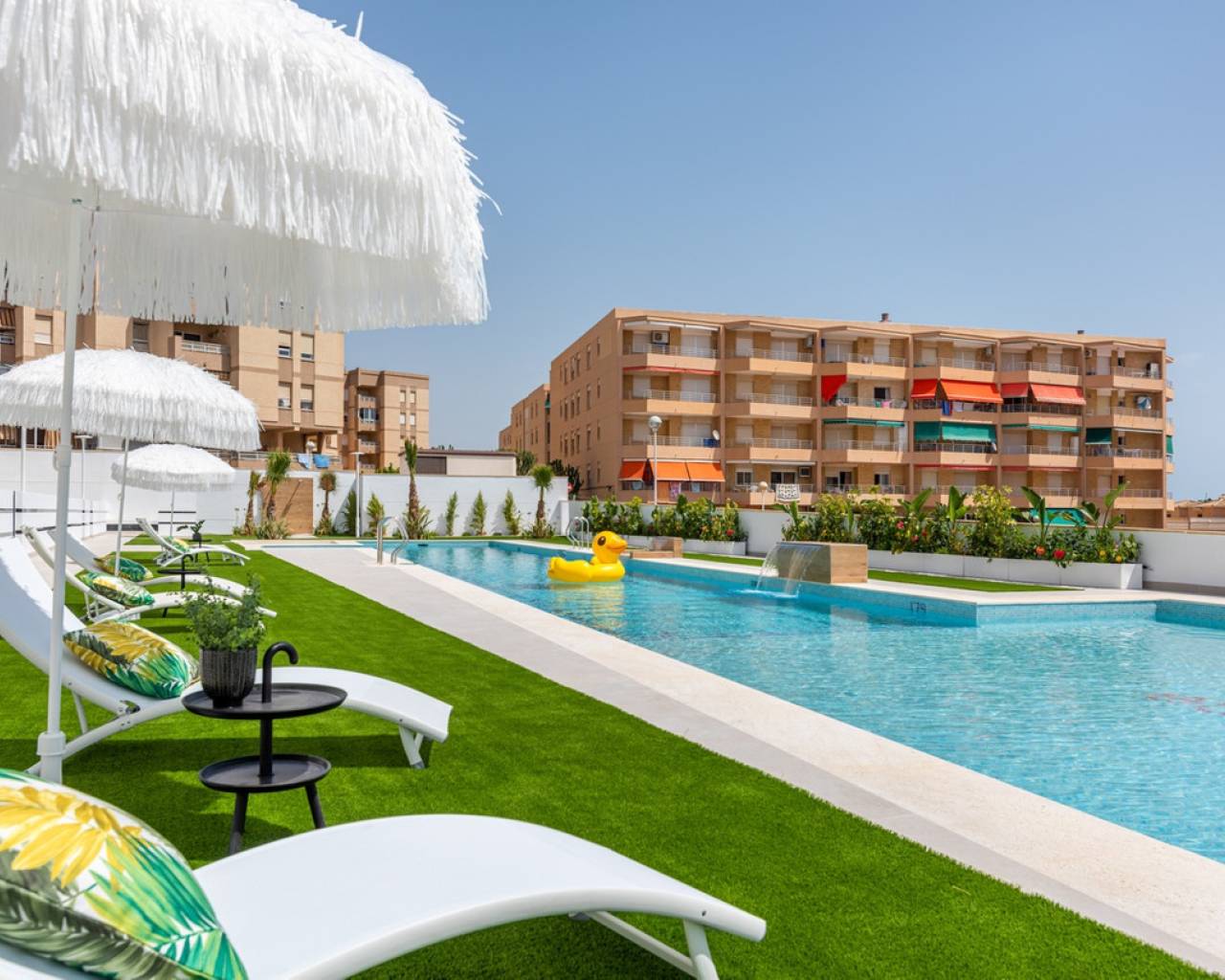 Vive el sueño mediterráneo en Guardamar del Segura Imagina despertar cada mañana con el sonido del mar y vistas panorámicas que invitan a relajarte. Este exclusivo apartamento de 2 dormitorios y 2 baños (uno en suite) te ofrece justo eso y mucho más. Situado a solo 100 metros de la playa, en una de las ciudades más codiciadas de la Costa Blanca - Guardamar del Segura, este hogar es el refugio perfecto para disfrutar del estilo de vida costero. La cocina abierta conecta armoniosamente con el salón-comedor, creando un espacio luminoso y acogedor. Desde el salón y el dormitorio principal, podrás disfrutar de vistas al mar que transformarán tu día a día en una experiencia única. El edificio cuenta con ascensor para tu comodidad. Además, podrás relajarte en la piscina comunitaria, disfrutar de momentos al aire libre en la zona de barbacoa y contar con un garaje con trastero en el sótano, ofreciendo seguridad y espacio adicional. A tan solo unos pasos de la playa y cerca de todos los servicios necesarios, este apartamento combina la tranquilidad del entorno natural con la comodidad de la vida urbana. No dejes pasar la oportunidad de vivir en este paraíso costero. ¡Contáctanos para más información y haz de este apartamento tu nuevo hogar!