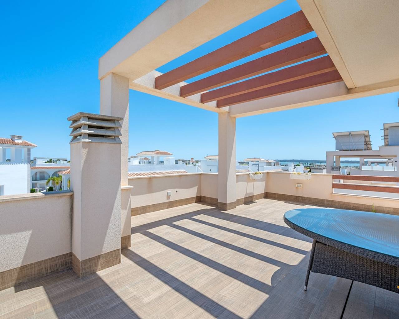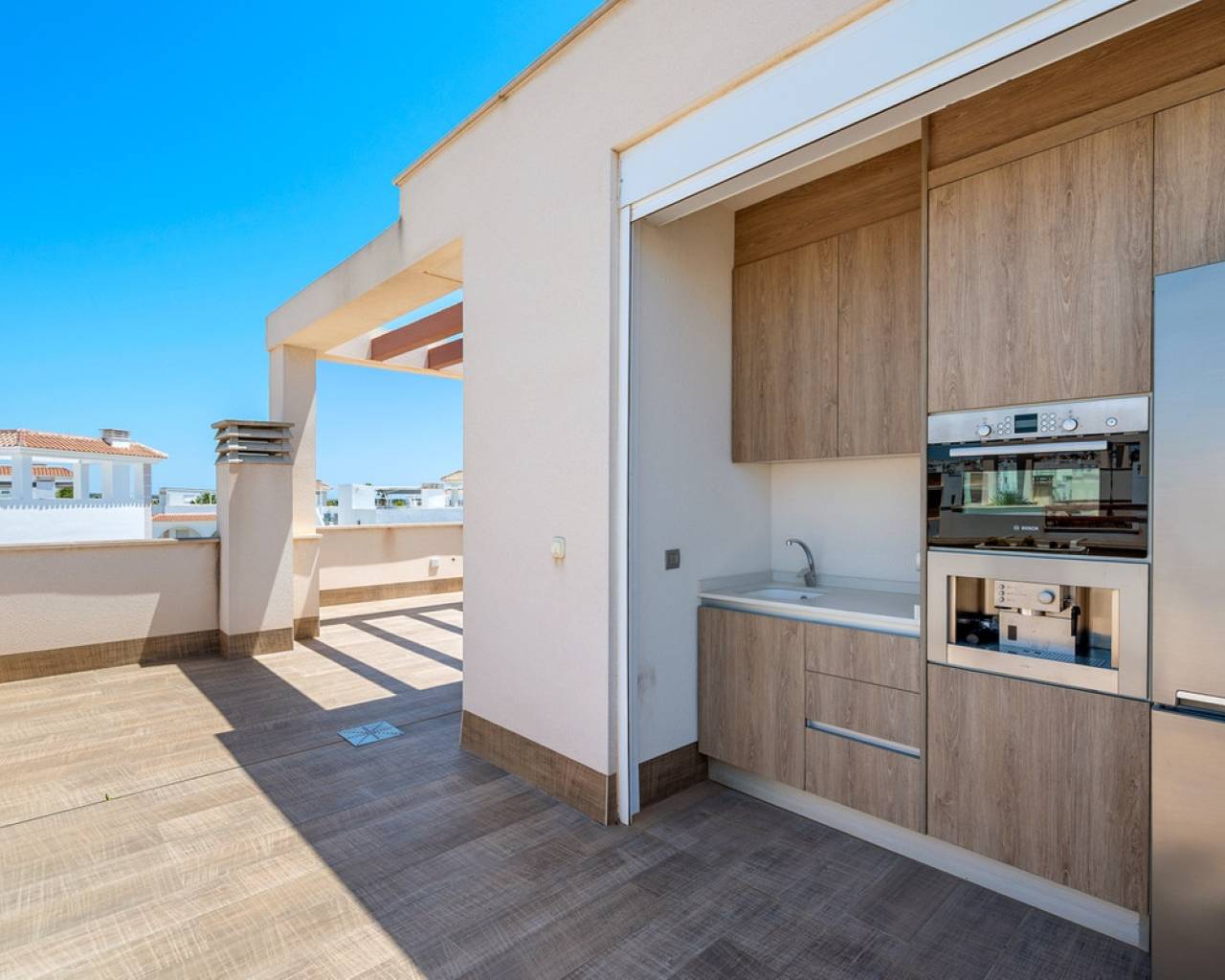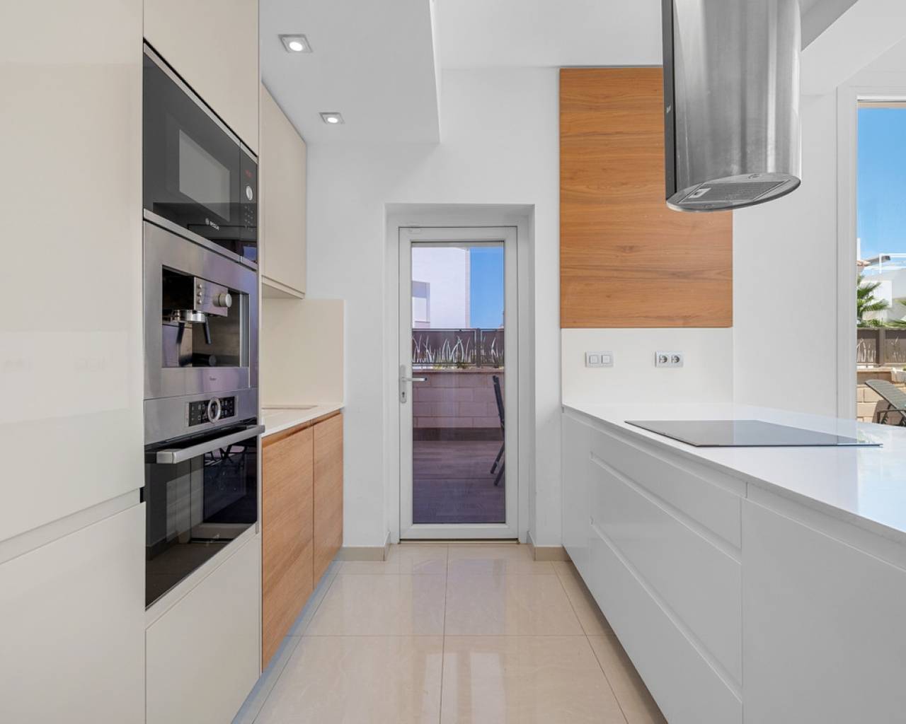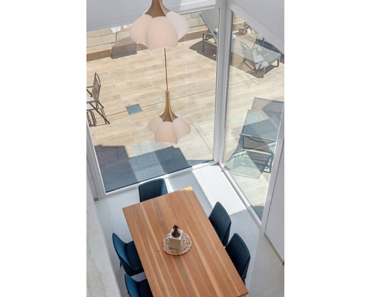 Ubicada en una zona residencial tranquila de Ciudad Quesada, esta propiedad construida en 2018 ofrece una distribución funcional y espacios interiores y exteriores bien aprovechados. Con una superficie construida de 101 m² sobre una parcela de 184 m², la vivienda cuenta con tres dormitorios, tres baños, sótano y solárium. En la planta principal se encuentra la zona de estar, con salón, comedor y cocina de concepto abierto con isla central. También en este nivel hay un dormitorio con armario empotrado, un baño completo, zona de lavandería y acceso directo al jardín y a la piscina. La primera planta alberga dos dormitorios, uno de ellos con baño en suite y salida a una terraza privada. El segundo dormitorio está junto a otro baño completo. Un distribuidor abierto conecta ambas estancias. El sótano está acondicionado como sala de recreación y ofrece un espacio adicional para distintos usos, actualmente utilizado como zona de ocio con billar. El solárium privado incluye una cocina exterior completamente instalada y operativa, con acceso desde el interior de la vivienda. Es un espacio pensado para disfrutar al aire libre durante todo el año. En el exterior, la propiedad dispone de una piscina privada de 3,30 x 6,50 metros, jardín con césped artificial y aparcamiento dentro de la parcela. Al tratarse de una unidad de esquina, la casa recibe buena luz natural y tiene mayor independencia respecto a las colindantes. La vivienda se entrega completamente amueblada, equipada con aire acondicionado, armarios empotrados, persianas automáticas, mosquiteras, sistema de seguridad y cocina equipada. Es apta tanto para residencia habitual como para uso vacacional, y se encuentra cerca de servicios y accesos principales.