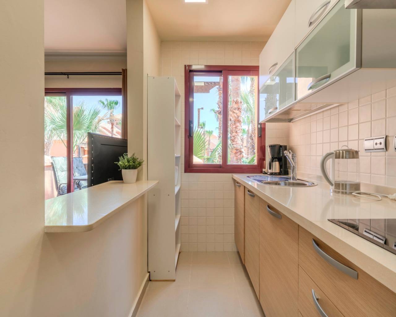 Este exclusivo dúplex ático se encuentra en la prestigiosa urbanización Nueva Ribera Beach Club, en primera línea de la mejor playa del Mar Menor. Con una superficie construida de 97,78 m² distribuidos en dos plantas, esta propiedad ofrece una combinación perfecta de comodidad, estilo y ubicación privilegiada. En la planta principal encontramos un amplio y luminoso salón-comedor con salida a un balcón con vistas despejadas a la piscina comunitaria, una cocina independiente totalmente equipada, un baño completo, un dormitorio secundario y otro dormitorio con acceso directo a otro balcón orientado hacia la zona común ajardinada con piscina. La planta superior cuenta con un dormitorio adicional, un baño completo, un práctico trastero y una espectacular terraza solárium de uso privado, ideal para relajarse al aire libre y disfrutar del clima mediterráneo durante todo el año. La vivienda incluye plaza de garaje y trastero en el precio. Destaca por sus excelentes calidades: puerta principal blindada, puertas interiores lacadas en blanco y armarios empotrados de primera calidad. La urbanización está completamente vallada y dispone de amplias zonas verdes, piscina comunitaria y un sistema de vigilancia con seguridad activa las 24 horas del día. Todo ello en un entorno tranquilo y seguro, a escasos metros del mar, donde podrás disfrutar del sol, la playa y un estilo de vida único en el Mar Menor.