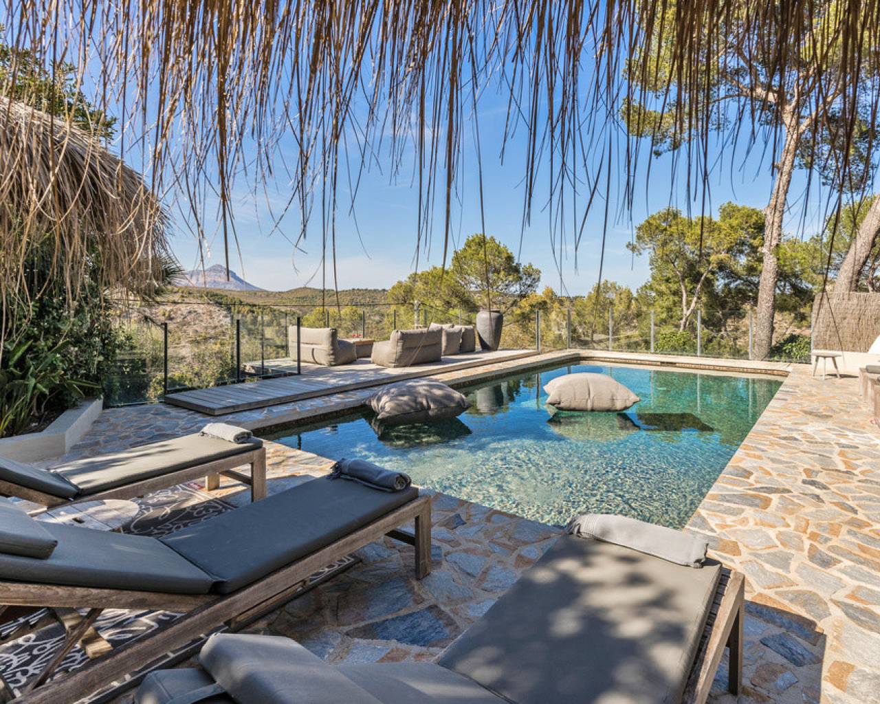 Preciosa casa de estilo tradicional con moderna reforma, dos apartamentos, terrazas cubiertas y abiertas, cocina de verano, piscina, zona de barbacoa y 5 dormitorios. Esta paradisíaca villa de lujo, reformada con encantador buen gusto, con una moderna piscina con terraza flotante, es una confortable y amplia vivienda donde compartir fantásticos momentos en vacaciones o donde desconectar durante todo el año como en unas vacaciones contínuas. Sus numerosos dormitorios son ideales para recibir visitas o para destinar algunos de ellos a despacho, sala de arte, etc Si el exterior enamora por su comedor y zona de barbacoa exterior con sus refrescantes sombrillas balinesas; el interior sorprende por su calidez y elegancia. La armoniosa mezcla de estilos y personalizados detalles que fluyen en la cocina abierta y el salón con zona de comedor, le dan un toque totalmente único a esta villa de estilo tradicional mediterraneo, con sus características columnas de balaustre y sus arcos en las terrazas exteriores que enmarcan las vistas panorámicas al mar y la montaña. A poca distancia en coche, algunas de las más bellas calas de la Costa Blanca y la conocida playa del Arenal, corazón de la hermosa localidad de Jávea, una de las más valoradas por su belleza, su gran ambiente y su cuidada estética. Numerosas actividades deportivas, náuticas y de ocio gastronómico, son sólo algunas de las maravillas que ofrece este fantástico lugar del Mediterráneo lleno de tranquilidad y soleados días.