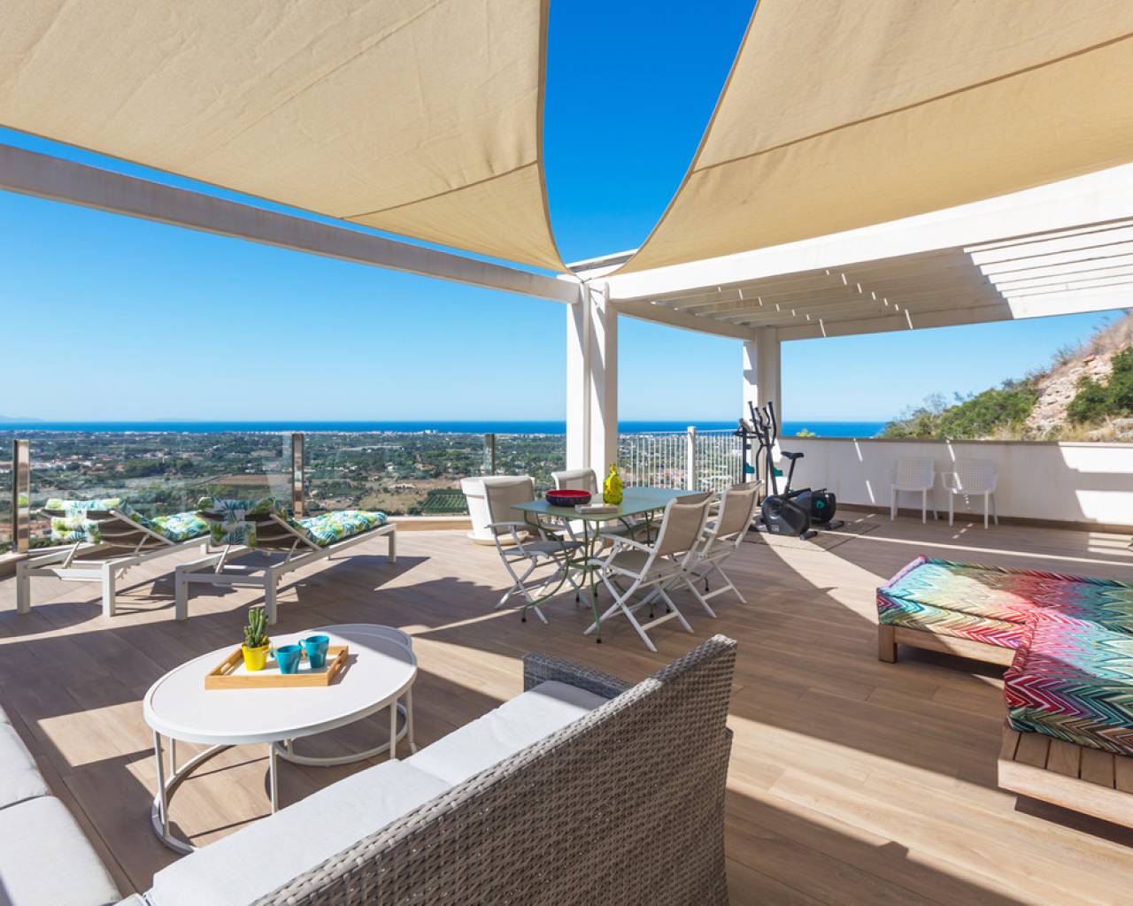 Fantástica villa de lujo de reciente construcción con vistas panorámicas al mar, 3 dormitorios, parking doble, cocina abierta, salón y comedor a nivel de piscina. Bellevue es una sofisticada villa de lujo con una elegante fachada y alegre luminosidad gracias a sus grandes ventanales. Está situada en uno de los lugares más bellos de la encantadora localidad de Dénia por sus fantásticas vistas panorámicas al mar y a la montaña, así como por su tranquilidad y entorno natural. Un amplio y luminoso salón con cocina abierta y comedor se encuentra al mismo nivel que la terraza y la piscina, conectados por amplios ventanales, lo que proporciona la funcionalidad y comodidad necesarias para disfrutar plenamente del día a día y de los momentos compartidos. Un espacio de oficina decorado con la misma piedra natural de montaña es un lugar mas que adecuado para teletrabajar con tranquilidad, y los tres dormitorios son ideales para recibir a familiares e invitados. Esta preciosa villa tiene toda clase de comodidades e instalaciones prácticas como trastero, paneles solares, etc. que junto con su preciosa terraza y piscina invitan a disfrutar cómodamente en casa en la intimidad o con invitados. Además, a pocos minutos en coche, un gran abanico de opciones de ocio para todos los gustos están disponibles: playas de arena interminables, puertos deportivos, polideportivo, golf, restaurantes e incluso viajes en barco y catamarán son sólo algunas de ellas.