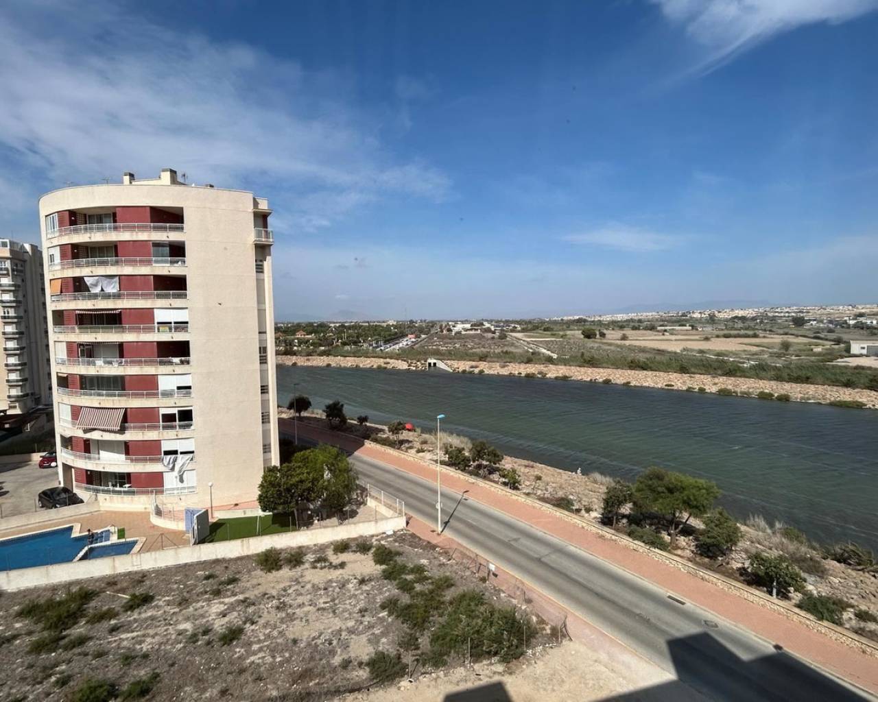 Apartamento con amplia terraza y buena ubicación. Plaza de garaje. Le damos la bienvenida a este luminoso y bien distribuido apartamento en la quinta planta (con ascensor) en Guardamar del Segura. El apartamento tiene aproximadamente 56 metros cuadrados y consta de dos dormitorios, un baño, salón, cocina y una amplia terraza con espacio para muebles de exterior. La sala de estar cuenta con espacio para una sala de estar y un comedor. La cocina está bien distribuida y cuenta con buenas opciones de almacenamiento. Dos dormitorios con agradable luminosidad y ubicación tranquila, el dormitorio principal está amueblado con dos camas individuales y el otro con una cama de matrimonio. Baño espacioso y completamente alicatado, equipado con inodoro, lavabo con inodoro y bañera. El apartamento dispone de plaza de garaje. Aquí vivirá cerca del mar Mediterráneo y de hermosas playas, además de la variada oferta comercial y gastronómica de la zona. Hay varios campos de golf en buen estado en el sur de la Costa Blanca. Se puede llegar fácilmente al aeropuerto de Alicante en coche o autobús. Bienvenido a contactarnos para obtener más información o reservar una visita, por supuesto, realizamos visitas digitales si no puede estar allí.