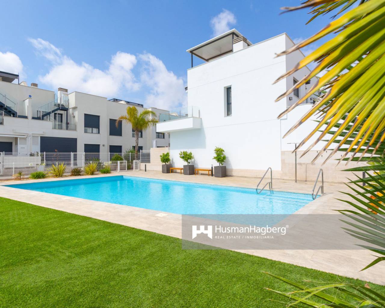 Apartamento en planta baja de nueva construcción con dos terrazas, jardín y piscina. Bienvenido a un hogar que combina diseño moderno con comodidad: este elegante apartamento en planta baja, completamente amueblado y terminado en 2023, ofrece todo lo que pueda desear para una vida bajo el sol. Aquí vivirá con la sensación de vivir en una villa, pero con las ventajas de un apartamento cómodo, y con amplias zonas exteriores tanto al este como al oeste, que le permitirán disfrutar del sol desde la mañana hasta la noche. La casa ofrece 97 m² de espacio habitable bien distribuido en una parcela de 186 m². El espacioso salón está conectado a una moderna cocina abierta, donde la elegante isla americana se convierte en el punto de encuentro natural de la casa, ideal para cenas sociales, desayunos para llevar o agradables veladas con amigos. Hay tres dormitorios, todos con armarios empotrados, uno de ellos el principal con baño en suite. En total, dos baños de alta calidad hacen que la casa sea práctica y cómoda. Los amplios ventanales dejan entrar una luz preciosa, y las persianas eléctricas proporcionan un control total tanto de la luz como de la privacidad. El sistema de aire acondicionado mantiene una temperatura interior agradable durante todo el año. Las zonas exteriores son especiales: una amplia terraza delantera y jardín, además de un patio trasero con espacio adicional, le ofrecen la libertad de disfrutar del sol, la sombra o una refrescante siesta cuando quiera. Hay espacio para muebles de salón, una barbacoa, jardinería y, por supuesto, una plaza de aparcamiento en su propia parcela. Incluye un trastero para almacenamiento adicional. Como residente, tendrá acceso a una hermosa área de piscina compartida con un exuberante entorno de jardín, perfecto para días tranquilos bajo el sol o un refrescante baño. Un alojamiento ideal para quienes buscan algo moderno, listo para entrar a vivir y fácil de mantener, con una sensación de lujo, espacio y libertad. ¡Bienvenido a reservar una visita, en el sitio o digitalmente!