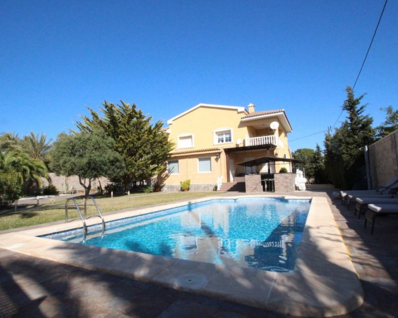 Villa de lujo en Cabo Roig con piscina privada, a 200 metros de la playa. Parcela de 1.400 m2 en la que se encuentra una piscina privada y un hermoso jardín, zona de comedor con pérgola y saltarín para niños. La casa es de dos plantas con la vivienda de 440 m2. Esta planeada para la máxima intimidad de sus habitantes - hay 5 dormitorios, y 5 baños. En planta baja se encuentra un salón principal muy grande, una cocina con la isla y con su zona de comedor, con salida a la terraza exterior, cuarto de lavado. También hay 3 dormitorios y 3 baños (2 de ellos en suit con su baño ). La planta de arriba esta compuesta de dos pequeños apartamentos independientes : uno con su cocina, un salón pequeño, dormitorio con 2 camas y baño en suít; y otro compuesto por el dormitorio principal con la salida a la terraza grande, un baño , un salón - vestidor. . La villa tiene aire acondicionado en toda la casa, 4 terrazas, Internet, TV a través de Internet, videovigilancia, sistema de alarma, aparcamiento para 4-6 coches, piscina de 10 x 4,5m2.