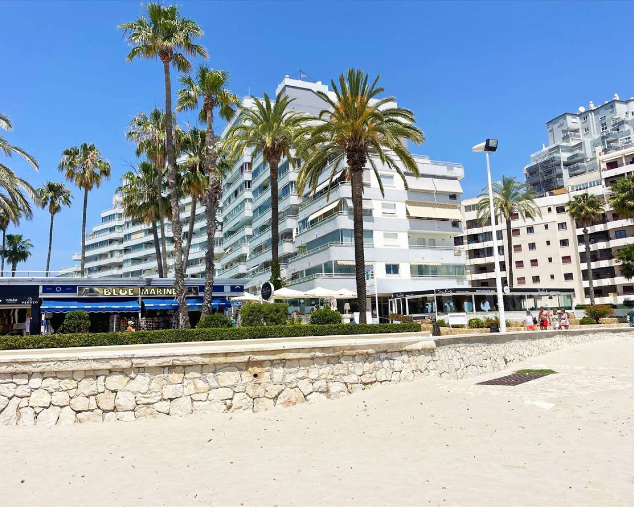 Se vende apartamento de 1 dormitorio en primera linea de playa en Calpe, Costa Blanca, con piscina comunitaria y estupendas vistas al mar, a solo 20 m de la playa. Este apartamento de 47 m2, con ascensor, esta situado en la septima planta del edificio, orientado al Suroeste, a solo 20 m de la playa, a 10 m de restaurantes y a 250 m de los supermercados Consum, Mercadona y Aldi. Distancia al aeropuerto de Alicante: 75 km El complejo posee estupendas piscinas comunitarias, cancha de tenis y bonitas zonas ajardinadas. El apartamento se compone de un salon comedor, una cocina americana, una terraza acristalada con estupendas vistas al mar, al monte Oltá y a Las Salinas, 1 dormitorio y un cuarto de baño familiar completo. Ventajas: Orientación sur (sol todo el dia) Vistas al mar 1ª linea de playa Playa a 20 m Restaurantes a 10 m Supermercados a 250 m. Llámenos para una visita o más información. Trabajamos para que encuentre la casa de sus sueños. Le enseñaremos esta propiedad si le interesa, o buscaremos para usted hasta encontrar lo que busca. ¡Después, nos encargaremos de todo el papeleo necesario hasta la entrega de las llaves!
