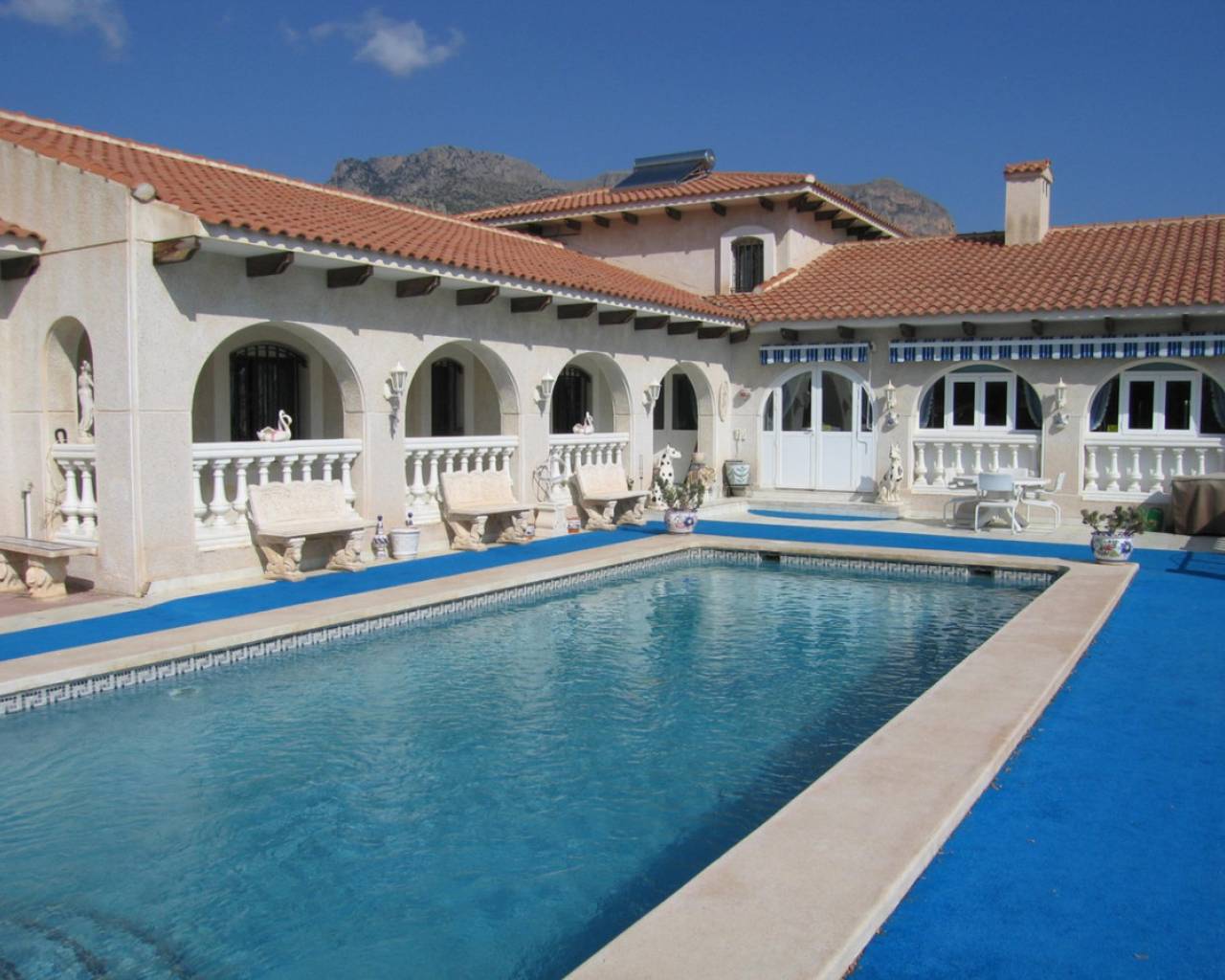 Enclavada en las montañas dentro de un parque nacional protegido y área de extraordinaria Belleza Natural, Finca Jadraque ofrece una rara mezcla de privacidad, espacio y un paisaje espectacular. Situada a sólo 8 km de Benidorm y en la carretera de Guadalest, la propiedad goza de una privilegiada posición elevada con impresionantes vistas panorámicas sobre las ciudades de Benidorm, Altea, Albir y Calpe. Construida en 1992, esta finca catastrada se extiende sobre unos impresionantes 11.800 m² y es ideal para la vida ecuestre o rural. Antiguamente utilizada para caballos, la finca incluye una cuadra totalmente equipada con 4 espaciosos establos, guadarnés, almacén de heno, instalaciones de servicios públicos, bebederos automáticos y conexiones eléctricas. La finca también incluye un gran menaje, actualmente adecuado para el estacionamiento, pero fácilmente restaurado para uso ecuestre. El pozo privado de la propiedad, de más de 200 pies de profundidad, proporciona una fuente independiente y fiable de agua. Las cajas de riego están estratégicamente situadas por todo el terreno para regar eficazmente las exuberantes plantas mediterráneas. A pesar de su tamaño y sus instalaciones, el mantenimiento de la finca sigue siendo extraordinariamente económico, con unos gastos anuales totales de funcionamiento e impuestos de menos de 2.000 euros. Tanto si busca un retiro tranquilo, un refugio ecuestre o una oportunidad de inversión única, Finca Jadraque es una finca única situada en uno de los lugares más pintorescos de la Costa Blanca. La villa principal es a la vez opulenta y espaciosa, con cuatro dormitorios dobles de generosas dimensiones, dos lujosos cuartos de baño y amplias zonas de estar y comedor. Cada habitación ha sido meticulosamente decorada con suntuosas molduras y yeserías intrincadas, todo hecho a un gran costo para garantizar un ambiente de refinada elegancia. El dormitorio principal ocupa toda la planta superior y tiene un balcón privado con impresionantes vistas panorámicas de los alrededores. Incluye un impresionante cuarto de baño en suite, acabado en mármol, con bañera de forma libre y ducha de lluvia a ras de suelo: el epítome del lujo. Los otros dormitorios son igualmente impresionantes, cada uno diseñado y amueblado con gusto para ofrecer comodidad y estilo. En toda la villa, los techos altos, los ventanales y los detalles arquitectónicos se combinan para crear una sensación atemporal de grandeza y sofisticación. Algunas fotos son imágenes generadas para mostrar como quedaría la propiedad si se modernizara para que pueda visualizar el gran potencial de esta propiedad.
