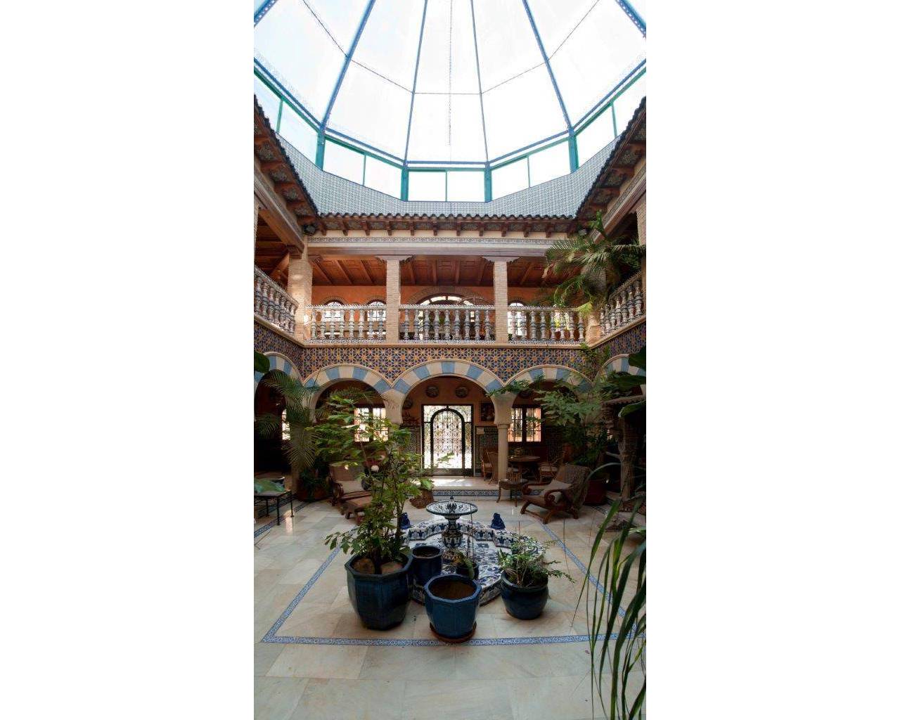 La villa es una casa de estilo andaluz y tiene una superficie total construida de aprox. 860m2 incluyendo: - planta baja - Primer piso - Solarium - Semisótano (garaje y bodega) - Porche con cocina y barbacoa. - Piscina interior Tamaño de la parcela: aprox. 2017 m2 con acceso directo a amplias zonas verdes. La villa se distribuye en dos plantas con solárium y semisótano. Planta baja: Aréa de lavanderíaCocinaSalaGran patio interior1 dormitorioBañoPiscina (con acceso desde casa y jardín) Primer piso: 4 habitaciones con baño Segunda planta: Solárium