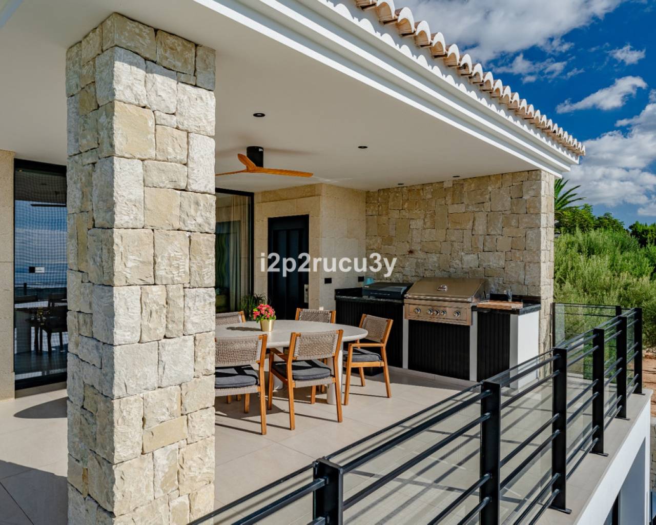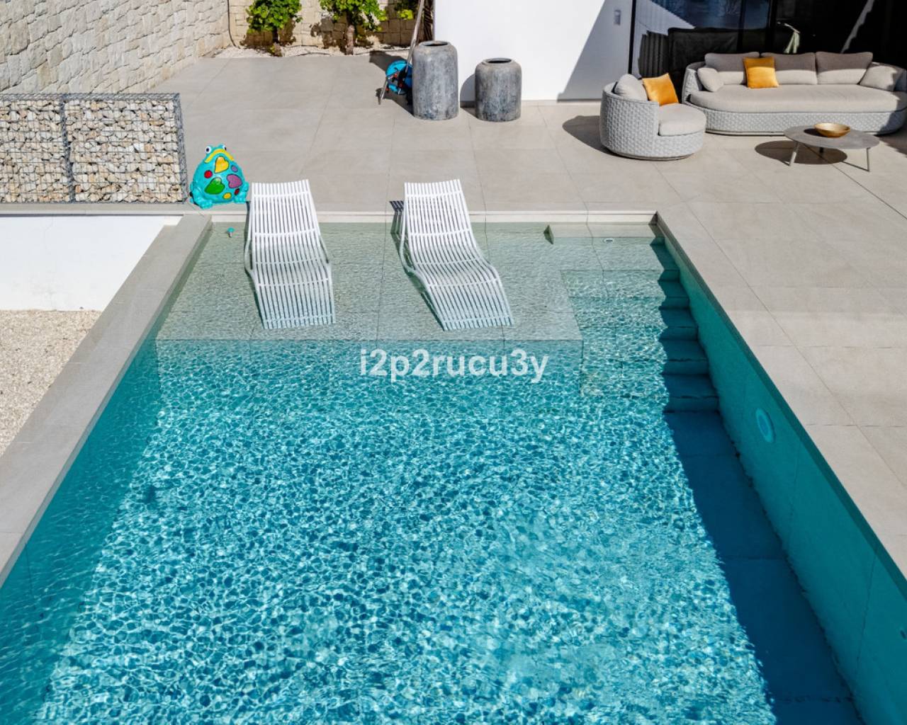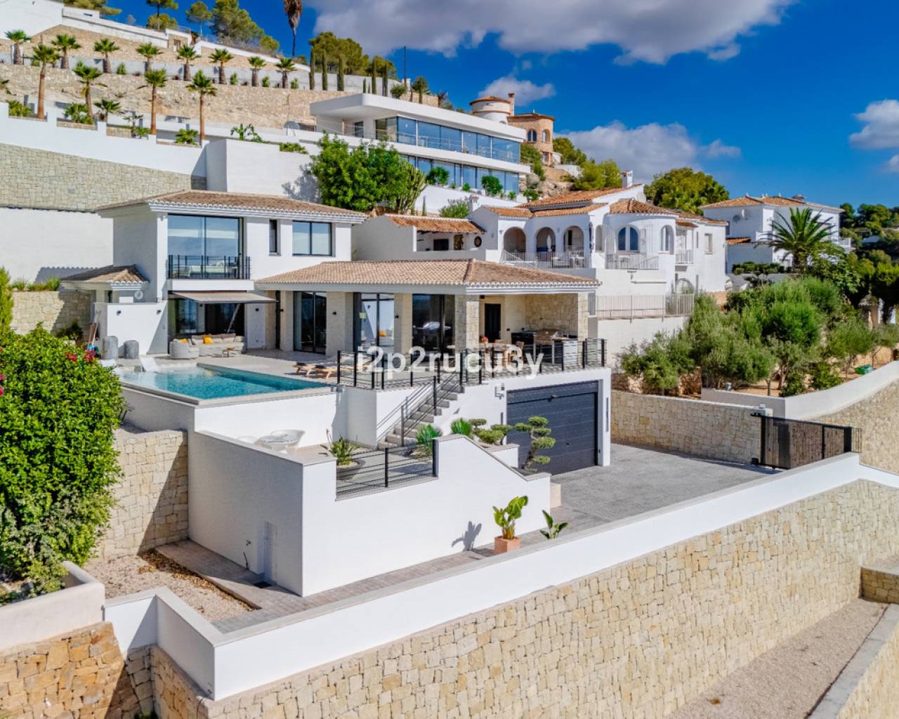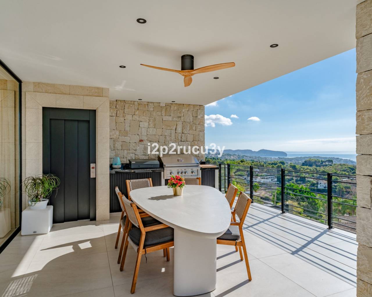En la prestigiosa y tranquila zona residencial de Raco de Galeno se encuentra esta nueva villa de lujo de estilo mediterráneo. La propiedad combina una arquitectura atemporal con el confort moderno y ofrece una experiencia de vida verdaderamente única. Gracias a las impresionantes vistas que se extienden desde Moraira hasta Calpe, el paisaje natural se aprovecha al máximo, logrando un equilibrio perfecto entre elegancia y funcionalidad. Distribución y espacios La villa cuenta con una superficie habitable de aproximadamente 317 m² en una parcela de 960 m². Distribuida en dos plantas, la distribución es eficiente y bien planificada. Dispone de tres amplios dormitorios, incluida una elegante suite principal con baño privado y acceso directo a una terraza privada. Los otros dos dormitorios comparten dos baños modernos, lo que hace que la vivienda sea ideal para familias o visitas. Existe también la posibilidad de crear un cuarto dormitorio y un baño adicional. Un aseo de cortesía añade mayor comodidad. Salón y cocina La zona de estar se compone de luminosos y abiertos salones y comedores que, gracias a los grandes ventanales, se conectan directamente con las amplias terrazas. La orientación sureste garantiza muchas horas de sol y un ambiente luminoso y agradable. La cocina de diseño está totalmente equipada con electrodomésticos de alta gama, una elegante isla y gran espacio de trabajo – ideal para los amantes de la cocina y para recibir a amigos y familiares. Otras características Un gran atractivo de esta villa es el ascensor privado que conecta el garaje doble con la planta principal, ofreciendo un fácil acceso a todas las estancias. El garaje tiene capacidad para dos coches y además hay aparcamiento adicional dentro de la propiedad. Vida al aire libre El exterior de la villa es un auténtico paraíso para el descanso y el entretenimiento. La piscina infinita está rodeada de jardines cuidadosamente diseñados y varias terrazas. Una cocina de verano cubierta con barbacoa permite disfrutar de la vida mediterránea al aire libre en cualquier época del año. Ya sea para una cena íntima o una reunión más amplia, las vistas panorámicas siempre ofrecen un escenario espectacular. Tecnología moderna y confort En cuanto a confort y tecnología, esta vivienda cumple con todas las exigencias modernas: suelo radiante, aire acondicionado y un avanzado sistema domótico garantizan una experiencia agradable durante todo el año. Certificación energética A. Esta villa en Raco de Galeno es la elección perfecta para quienes buscan una vivienda de lujo de nueva construcción en la Costa Blanca, con privacidad, comodidades modernas y vistas impresionantes.