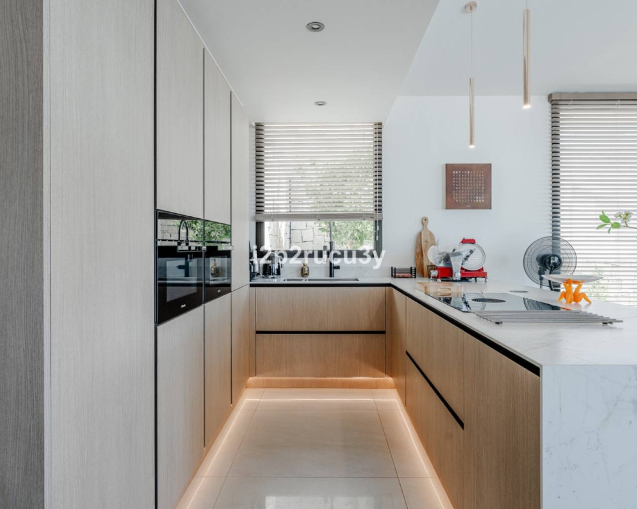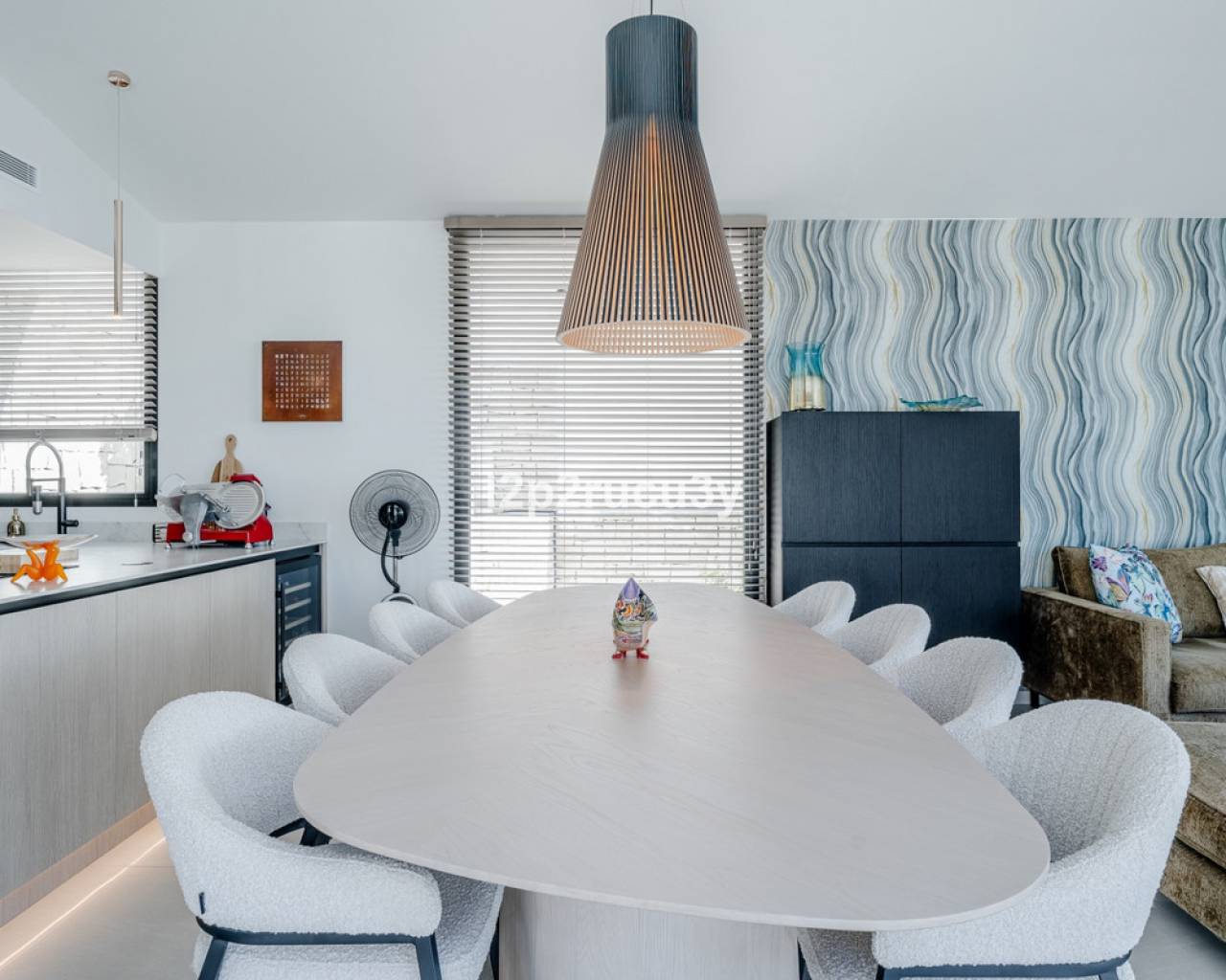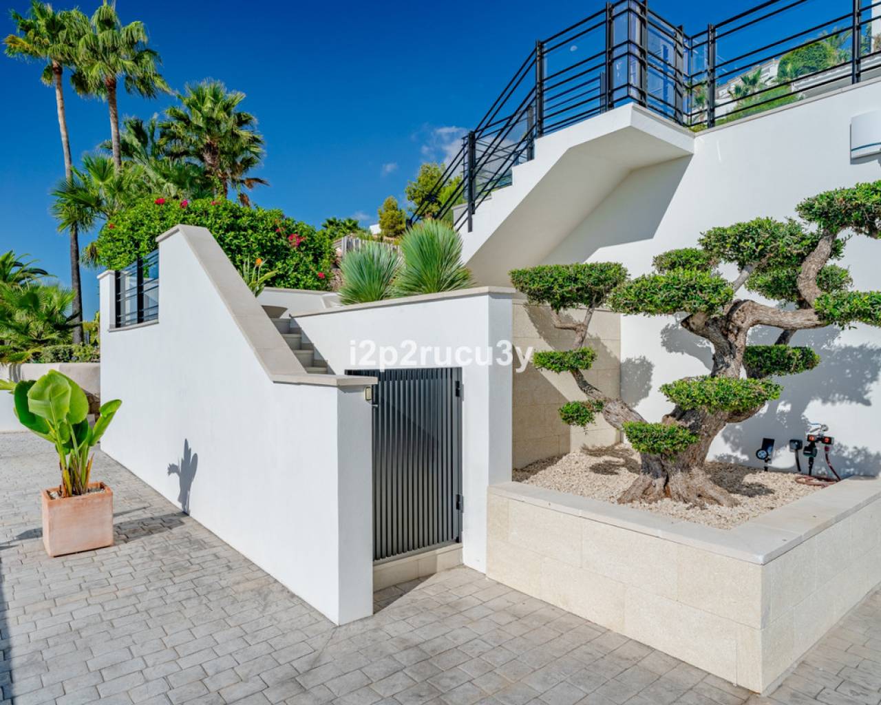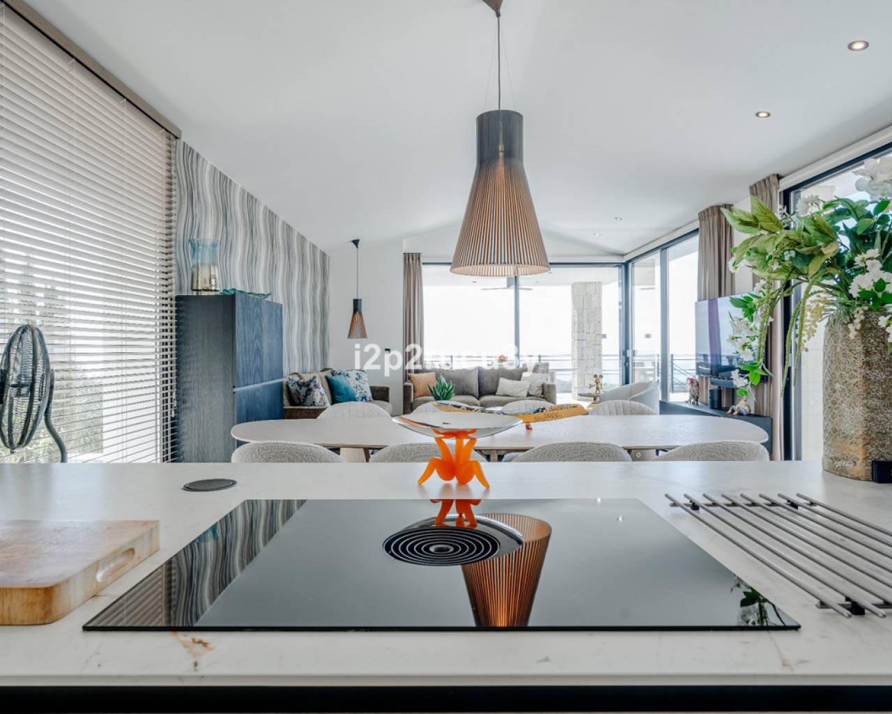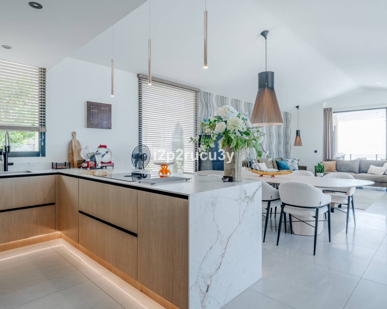 En la prestigiosa y tranquila zona residencial de Raco de Galeno se encuentra esta nueva villa de lujo de estilo mediterráneo. La propiedad combina una arquitectura atemporal con el confort moderno y ofrece una experiencia de vida verdaderamente única. Gracias a las impresionantes vistas que se extienden desde Moraira hasta Calpe, el paisaje natural se aprovecha al máximo, logrando un equilibrio perfecto entre elegancia y funcionalidad. Distribución y espacios La villa cuenta con una superficie habitable de aproximadamente 317 m² en una parcela de 960 m². Distribuida en dos plantas, la distribución es eficiente y bien planificada. Dispone de tres amplios dormitorios, incluida una elegante suite principal con baño privado y acceso directo a una terraza privada. Los otros dos dormitorios comparten dos baños modernos, lo que hace que la vivienda sea ideal para familias o visitas. Existe también la posibilidad de crear un cuarto dormitorio y un baño adicional. Un aseo de cortesía añade mayor comodidad. Salón y cocina La zona de estar se compone de luminosos y abiertos salones y comedores que, gracias a los grandes ventanales, se conectan directamente con las amplias terrazas. La orientación sureste garantiza muchas horas de sol y un ambiente luminoso y agradable. La cocina de diseño está totalmente equipada con electrodomésticos de alta gama, una elegante isla y gran espacio de trabajo – ideal para los amantes de la cocina y para recibir a amigos y familiares. Otras características Un gran atractivo de esta villa es el ascensor privado que conecta el garaje doble con la planta principal, ofreciendo un fácil acceso a todas las estancias. El garaje tiene capacidad para dos coches y además hay aparcamiento adicional dentro de la propiedad. Vida al aire libre El exterior de la villa es un auténtico paraíso para el descanso y el entretenimiento. La piscina infinita está rodeada de jardines cuidadosamente diseñados y varias terrazas. Una cocina de verano cubierta con barbacoa permite disfrutar de la vida mediterránea al aire libre en cualquier época del año. Ya sea para una cena íntima o una reunión más amplia, las vistas panorámicas siempre ofrecen un escenario espectacular. Tecnología moderna y confort En cuanto a confort y tecnología, esta vivienda cumple con todas las exigencias modernas: suelo radiante, aire acondicionado y un avanzado sistema domótico garantizan una experiencia agradable durante todo el año. Certificación energética A. Esta villa en Raco de Galeno es la elección perfecta para quienes buscan una vivienda de lujo de nueva construcción en la Costa Blanca, con privacidad, comodidades modernas y vistas impresionantes.