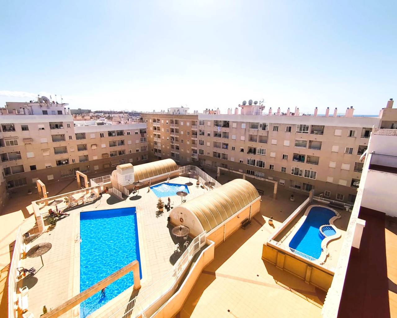 Se vende luminoso piso en segunda planta con ascensor, ubicado en una zona privilegiada de Torrevieja, muy cerca de la Avenida de las Cortes Valencianas y del conocido Parque de las Naciones. La vivienda cuenta con 65 m² construidos distribuidos en dos dormitorios con armarios empotrados, uno matrimonial con ventana exterior Climalit y otro individual con ventana al interior, un baño completo con ducha, una cocina americana totalmente equipada integrada en el salón-comedor y un balcón abierto ideal para disfrutar de la luz natural. La propiedad dispone de aire acondicionado inverter, calefacción por radiadores eléctricos centralizados y se encuentra en muy buen estado de conservación. Incluye además una cómoda plaza de garaje subterránea con trastero. El edificio está equipado con cámaras de seguridad en ascensor y pasillos, servicio de conserjería y doble acceso desde dos calles, lo que aporta comodidad y tranquilidad. La urbanización ofrece excelentes zonas comunes con una piscina comunitaria principal y otra más pequeña para niños, además de una amplia azotea comunitaria con zona de relax equipada con ducha, ideal para tomar el sol y disfrutar de las espectaculares vistas a la Laguna Rosa de Torrevieja y de las vistas parciales al mar. Torrevieja es una de las localidades costeras más demandadas de la Costa Blanca, reconocida por sus playas de arena fina, su paseo marítimo, su variada oferta gastronómica y su clima mediterráneo, con más de 300 días de sol al año. Su proximidad a las famosas lagunas saladas y a múltiples servicios de ocio y transporte la convierten en un lugar ideal tanto para residir de manera habitual como para disfrutar de estancias vacacionales o realizar una inversión con alta rentabilidad. Esta vivienda representa una oportunidad única para quienes buscan calidad de vida, seguridad y una ubicación estratégica en una de las zonas más atractivas del Mediterráneo.