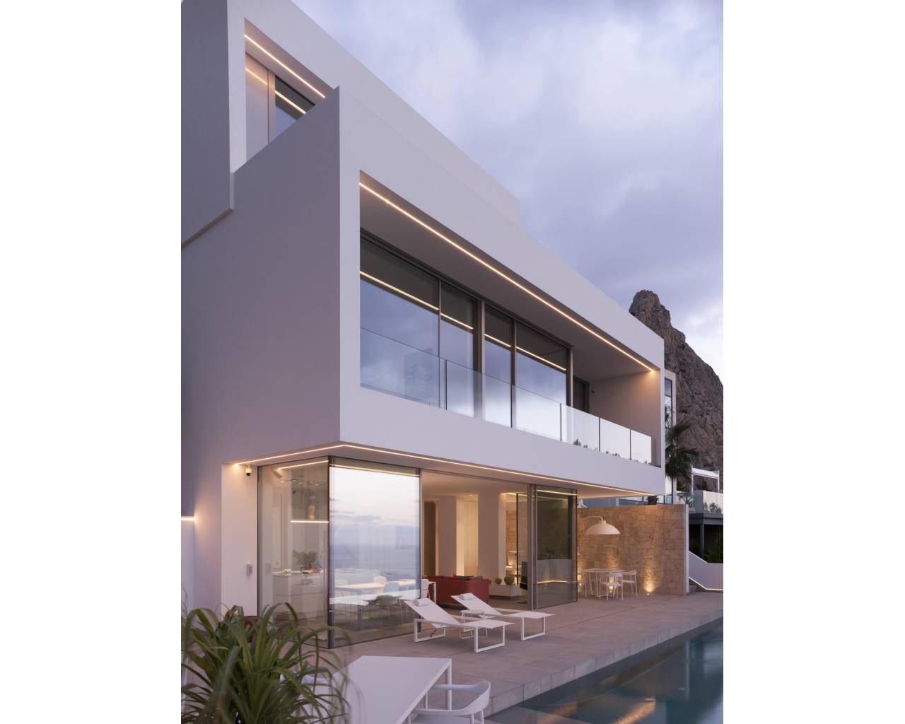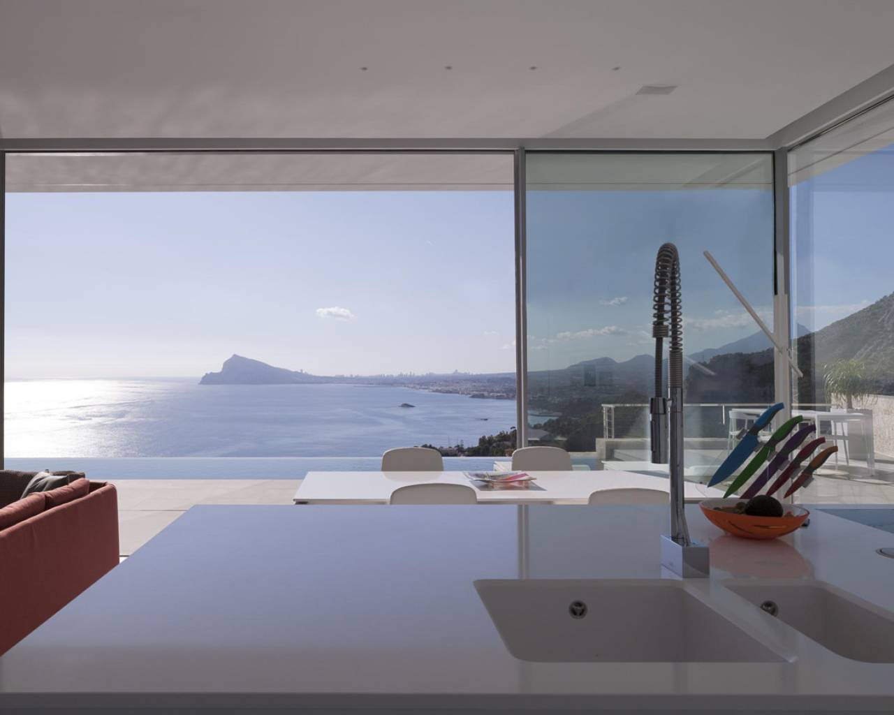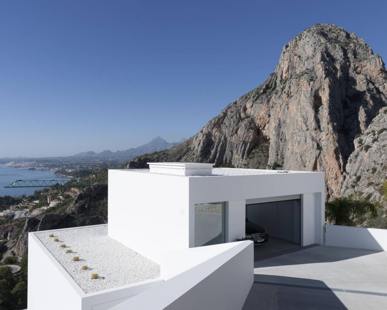 Moderna villa de lujo situada con una superficie construida de 221 m2, situada en un espectacular y tranquilo lugar de 1621 m2. El punto más alto de Mascarat, con las mejores vistas de la bahía, el mar Mediterráneo y el puerto de Campomanes. Se accede a la casa a través del garaje con bonitas vistas donde también se encuentra el ascensor conectado a todos los niveles de la casa. El garaje está equipado con grandes armarios de almacenamiento. A través de las escaleras o el ascensor hasta el segundo piso con 3 amplios dormitorios, dos con baño en-suite con techos altos y armarios empotrados y hermosas ventanas grandes que permiten mucha luz solar. Lavadero independiente está disponible. Una planta más abajo se llega a la sala de estar, una cocina abierta de lujo de estilo americano con isla, una gran sala de estar abierta y una habitación adicional que actualmente se utiliza como un espacio de oficina. Desde el salón se accede a la terraza donde se encuentra la piscina infinita de agua salada climatizada de 12x3,5 m con cubierta. Debajo de la piscina encontrarás un amplio sótano multiusos que podrás amueblar a tu gusto. La casa está equipada con la última tecnología y calidades de alta gama. Todavía se puede construir hasta 200m2. El chalet se encuentra en la primera planta de la casa. La villa se encuentra a 1,2 km de la playa, a 6 km del pueblo de Altea la Vella, a 71 km del aeropuerto de Alicante y con fácil acceso por carretera tanto por la autopista A7 como por la carretera nacional N-332.