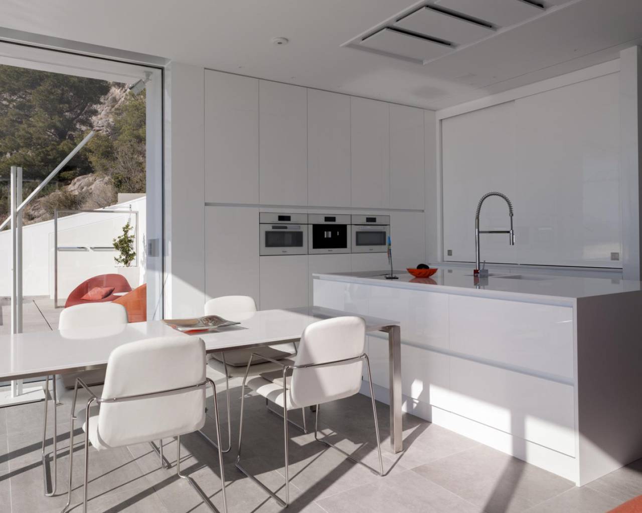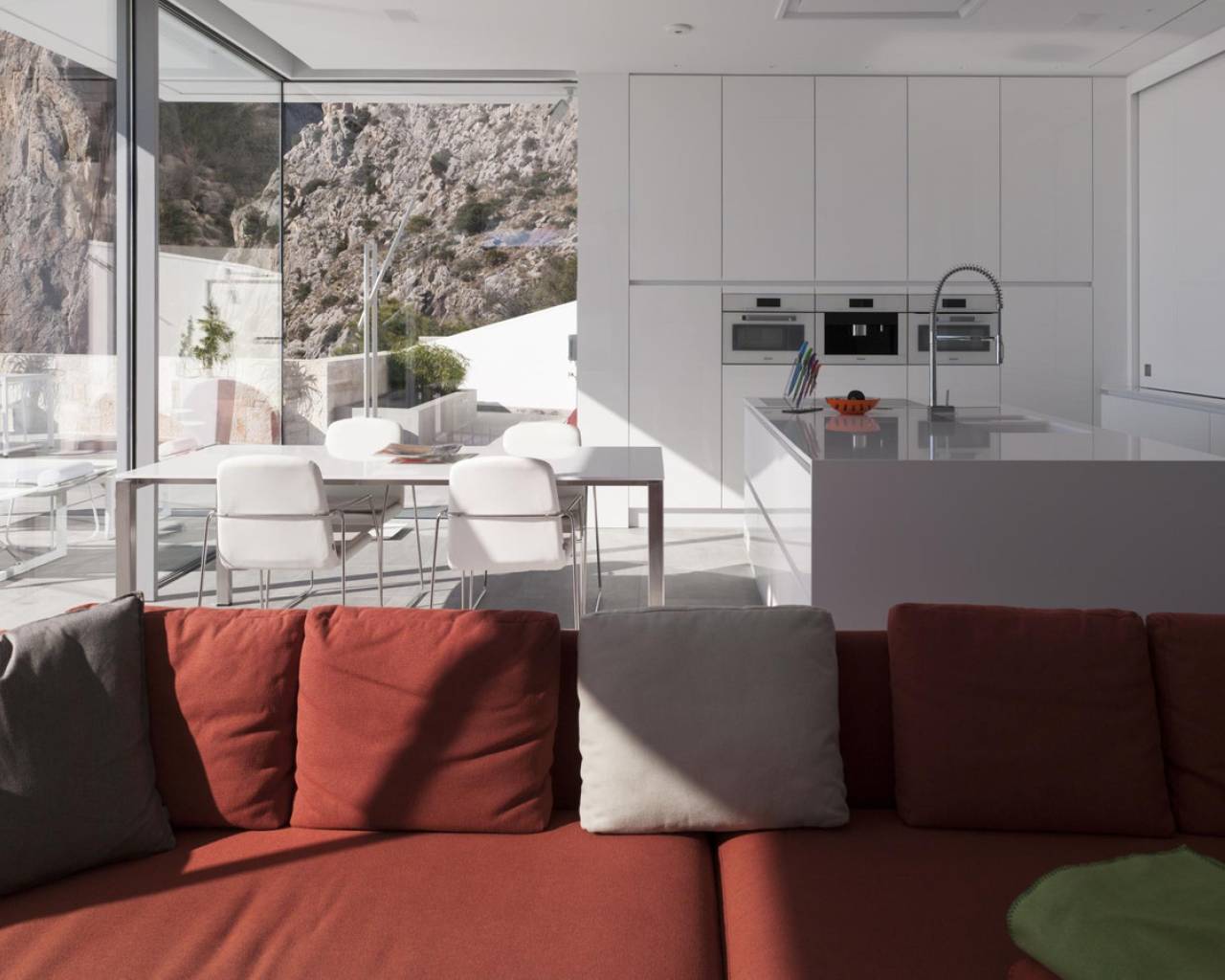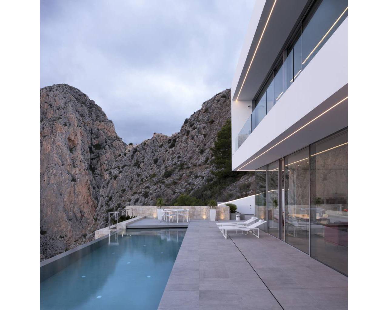 Moderna villa de lujo situada con una superficie construida de 221 m2, situada en un espectacular y tranquilo lugar de 1621 m2. El punto más alto de Mascarat, con las mejores vistas de la bahía, el mar Mediterráneo y el puerto de Campomanes. Se accede a la casa a través del garaje con bonitas vistas donde también se encuentra el ascensor conectado a todos los niveles de la casa. El garaje está equipado con grandes armarios de almacenamiento. A través de las escaleras o el ascensor hasta el segundo piso con 3 amplios dormitorios, dos con baño en-suite con techos altos y armarios empotrados y hermosas ventanas grandes que permiten mucha luz solar. Lavadero independiente está disponible. Una planta más abajo se llega a la sala de estar, una cocina abierta de lujo de estilo americano con isla, una gran sala de estar abierta y una habitación adicional que actualmente se utiliza como un espacio de oficina. Desde el salón se accede a la terraza donde se encuentra la piscina infinita de agua salada climatizada de 12x3,5 m con cubierta. Debajo de la piscina encontrarás un amplio sótano multiusos que podrás amueblar a tu gusto. La casa está equipada con la última tecnología y calidades de alta gama. Todavía se puede construir hasta 200m2. El chalet se encuentra en la primera planta de la casa. La villa se encuentra a 1,2 km de la playa, a 6 km del pueblo de Altea la Vella, a 71 km del aeropuerto de Alicante y con fácil acceso por carretera tanto por la autopista A7 como por la carretera nacional N-332.