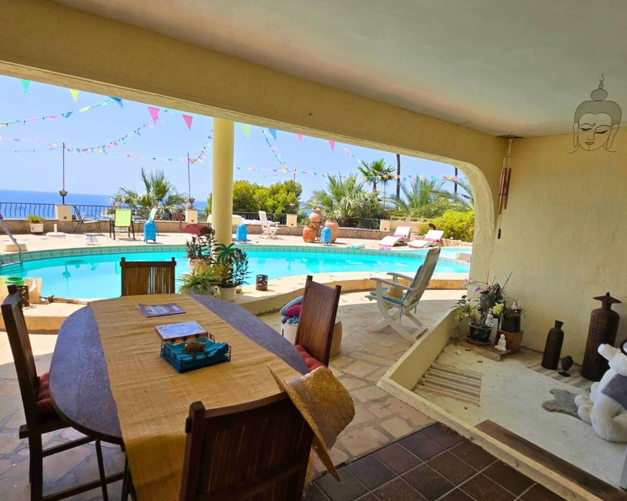 Ubicada en una generosa parcela de 1.800 m² y con una superficie construida total de 760 m², esta excepcional villa de estilo mediterráneo en La Galera de las Palmeras, Altea, destaca por su espacio, potencial y unas inolvidables vistas al mar. Con orientación sur y 450 m² de superficie habitable, la propiedad combina zonas listas para entrar a vivir con zonas a la espera de terminarse, lo que la convierte en una oportunidad única para quienes buscan personalizar la casa de sus sueños en una de las zonas más codiciadas de la Costa Blanca. Al entrar en la villa, le da la bienvenida una amplia zona de aparcamiento con espacio para varios coches. Desde aquí, un luminoso pasillo conduce directamente al espacioso salón con cocina americana, chimenea y acceso a una amplia terraza con vistas a la bahía de Altea y al mar Mediterráneo. Conectada a este espacio se encuentra una cómoda sala de televisión, perfecta para relajarse o entretenerse. En el ala izquierda de esta planta, también hay una zona sin terminar con potencial para crear dos dormitorios adicionales y un baño, lo que le da la libertad de adaptar esta fantástica villa a sus necesidades. La villa se distribuye en cinco plantas, cada una con una singularidad única. En la planta superior se encuentra un dormitorio con baño propio, una espectacular terraza con vistas panorámicas e incluso una pequeña terraza en la azotea para disfrutar de una vista privilegiada de la costa. Desde el salón principal, la planta baja alberga el dormitorio principal, con baño en suite, vestidor y acceso directo a la piscina. En esta misma planta también se encuentra la llamada habitación del marinero, un encantador salón con vistas directas y acceso a la terraza de la piscina. Desde aquí, una escalera baja a un apartamento de invitados con cocina americana, baño y dormitorio privado. Este espacio requiere reforma, pero tiene un gran potencial como suite de invitados totalmente independiente. El exterior de la propiedad es igualmente impresionante. Una gran piscina está enmarcada por un jardín mediterráneo bellamente cuidado, adornado con palmeras y dos fuentes en funcionamiento. En la planta baja de la casa también hay un garaje adicional, que ofrece más opciones de almacenamiento o aparcamiento. Además, la propiedad ofrece suficiente espacio para crear más zonas de estar o de ocio, con la posibilidad de construir un segundo apartamento de invitados. Esta villa está equipada con calefacción por suelo radiante y presenta detalles de construcción tradicionales mediterráneos, ofreciendo un encanto atemporal junto con las comodidades modernas. Con la excepcional posibilidad de añadir hasta tres dormitorios y tres baños más, la distribución se adapta por completo a las necesidades de sus futuros propietarios. Parte de la propiedad ya se encuentra en excelentes condiciones y actualmente en uso, mientras que otras zonas ofrecen un espacio en blanco para reformas y toques personales. La combinación de comodidad lista para entrar a vivir, ubicación privilegiada y potencial sin explotar la convierte en una oportunidad de inversión verdaderamente excepcional. La propiedad está idealmente ubicada a solo 5 minutos de la playa, a 7 minutos de la autopista y a 5 minutos del centro de Altea la Vella, ofreciendo privacidad y comodidad. Es una casa que realmente necesita ser vista en persona para comprender su potencial y el extraordinario estilo de vida que puede ofrecer.