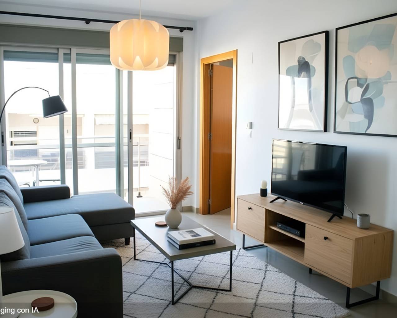 El interior presenta una distribución muy funcional, con 2 dormitorios con armarios empotrados, 1 baño completo y un salón con cocina semiindependiente, que permite disfrutar de un espacio organizado y cómodo. El apartamento se entrega totalmente amueblado y cuenta además con un trastero privado, un extra especialmente práctico para almacenaje adicional o equipamiento de temporada.