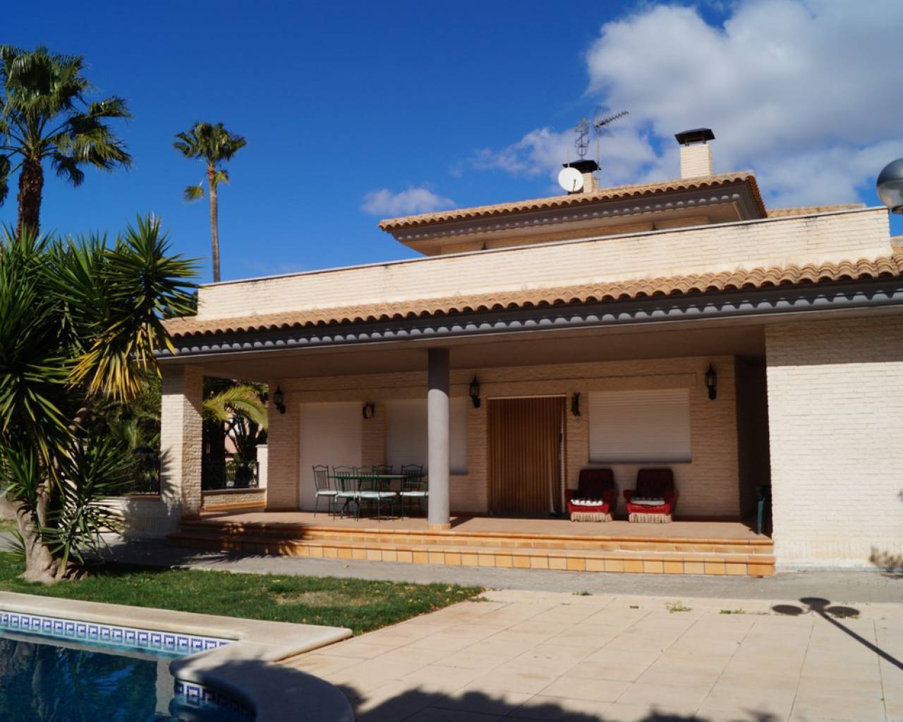 Disponemos de esta espectacular villa en venta en una de las mejores zonas de Elda. Una zona que cautivará al nuevo propietario, ya que es una ubicación privilegiada, y una zona de gran valor en terreno. Esta villa consta de una primera planta, con dos dormitorios, uno de ellos en suite con baño en suite. Cuenta con un amplio salón con salida al jardín y zona de terraza abierta, y una gran cocina también con salida al exterior; zona de lavadero y despensa además de un baño para esta misma planta. Cabe destacar la amplitud de la vivienda, y los metros en cada estancia. Todos los dormitorios de esta propiedad cuentan con armarios empotrados, o vestidor. Esta propiedad está hecha a conciencia, con materiales de primera calidad, tanto en suelos, parquet de madera, mármol en entrada y escalera, gres, ventanas de doble climatización. Sistema automático de luz y persianas. Sistema de vigilancia para apertura de puerta de entrada, y alarma. Además cuenta con zona exterior con aseo, barbacoa, zona de utensilios y caldera de gasoil. En la planta superior se encuentran dos amplios dormitorios más que dan a una gran terraza solárium para el disfrute de sus propietarios. También hay otro baño en esta planta. Cabe destacar la planta sótano, ya que sería como un anexo más a esta propiedad. Tiene un precioso salón con una enorme zona de chimenea y zona de cocina. En esta zona sin ningún problema se podría hacer un dormitorio y tener una vivienda en esta propiedad anexa. Tiene grandes ventanales, lo que da mucha luminosidad. En la cocina, también hay una despensa. Esta planta sótano también cuenta con otro baño, y acceso a la zona de garaje. La zona del garaje es impresionante, pues cuenta con un amplio espacio, para poder aprovecharlo de la mejor manera para el nuevo propietario. Tener una zona de despacho, una zona de juegos, nuevas habitaciones, etc... La zona ajardinada cuenta con una gran piscina, y zona de relax, además de parte del jardín con bonitas palmeras y plantas. Esta zona ajardinada, por sus dimensiones, permite construir una nueva vivienda en esta parcela, al tratarse de suelo urbano, con un valor a día de hoy de 250€ metro cuadrado. Imagínese el valor de la compra. Sin duda, es una propiedad para gente que valora una casa con tradición, y bien realizada. La casa ideal de tus sueños. Estaremos encantados de visitarla contigo. No dudes en contactarnos para confirmar tu visita. Quedarás encantado. NOTA: PARTE DEL TERRENO AÚN SE PUEDE CONSTRUIR SI ES NECESARIO: