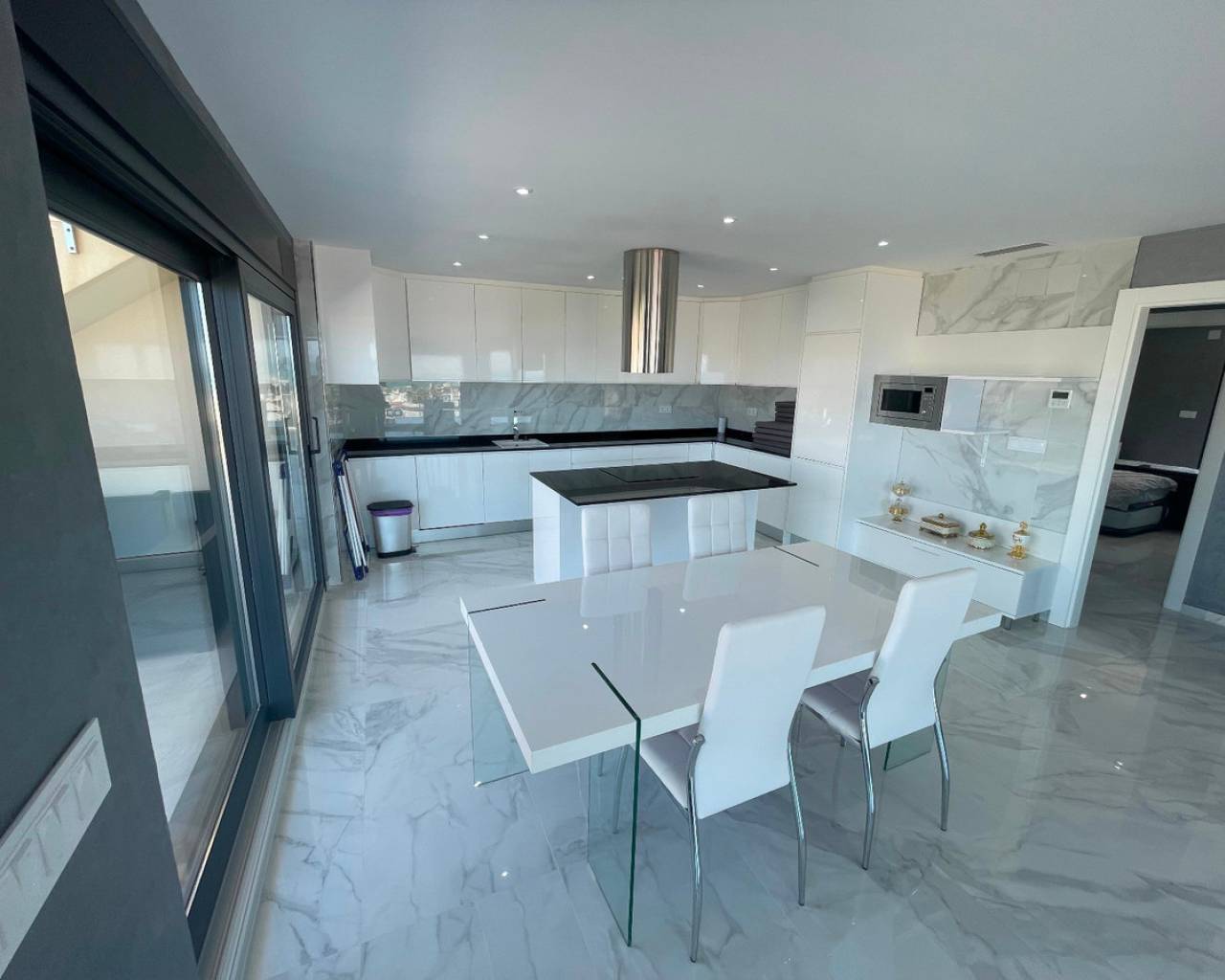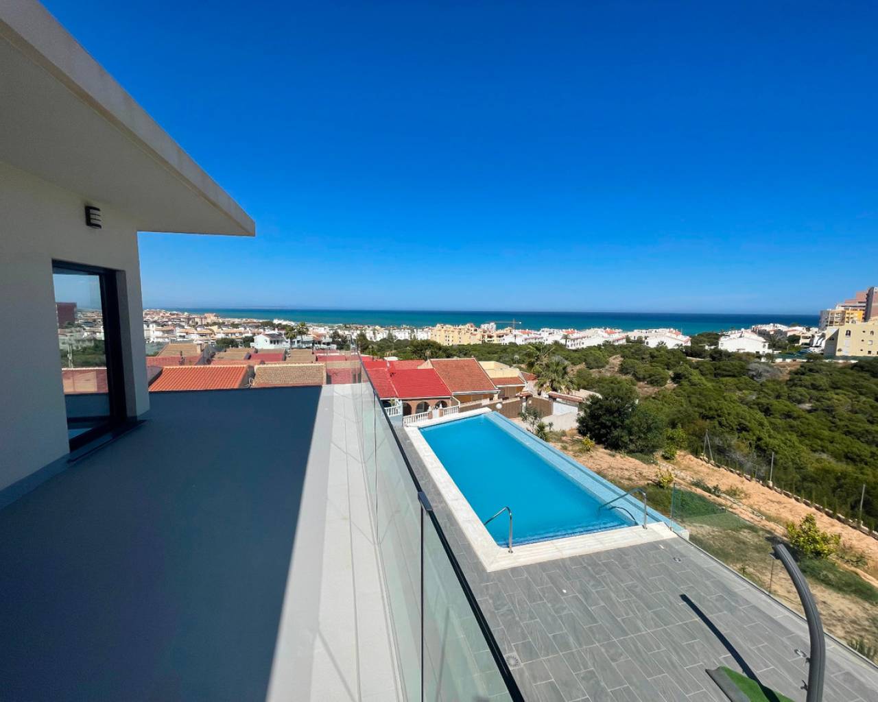 Una casa adosada con piscina privada, todo casi nuevo, de reciente construcción, vistas impresionantes, cerca de la playa de La Mata en Torrevieja, acceso independiente a la primera planta de la casa. La casa cuenta con dos unidades independientes. 2 cocinas completamente equipadas, se vende amueblada, dispone de un amplio garaje.