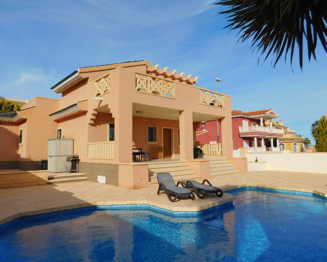 Ubicada en el corazón de Ciudad Quesada se encuentra esta maravillosa villa independiente, que consta de 4 dormitorios y 2 baños construida en 2007 con orientación sur. A poca distancia de todos los servicios, incluidas varias canchas de tenis y senderos para bicicletas en la zona, y también hay un nuevo parque de patinaje / cancha de baloncesto recientemente construido y un área de mini fútbol. Esta villa cuenta con calefacción por suelo radiante, incluidas mosquiteras y CCTV. La propiedad tiene un dormitorio en la planta superior que está rodeado de 2 grandes terrazas y una oficina, mientras que los 3 dormitorios restantes y el trastero están en la planta baja. Se accede a través de la gran sala de estar en forma de L y la cocina de estilo francés. En el exterior hay estacionamiento fuera de la carretera, piscina privada y mucho espacio para entretener a familiares y amigos. Completamente amueblado. Suma 430€ al año. A menos de 5 minutos a pie de los bares y restaurantes más cercanos, todos ellos junto a paradas de autobús y servicios de taxi. Esta propiedad también se encuentra a 5 minutos en coche de un parque natural (El Recorral) con zonas de barbacoa, ideal para pasar un agradable día disfrutando del clima español. Ciudad Quesada, en la provincia de Alicante, España, ofrece un relajado estilo de vida mediterráneo. A solo unos minutos de las impresionantes playas de Guardamar del Segura y Torrevieja, rodeada de belleza natural, es perfecta para los amantes de las actividades al aire libre. Esta vibrante comunidad cuenta con diversas comodidades, un cálido ambiente internacional y un clima soleado, lo que la convierte en una opción popular para jubilados, expatriados y familias por igual.